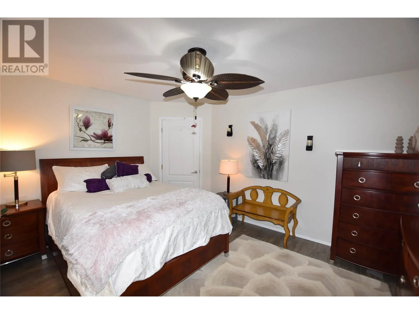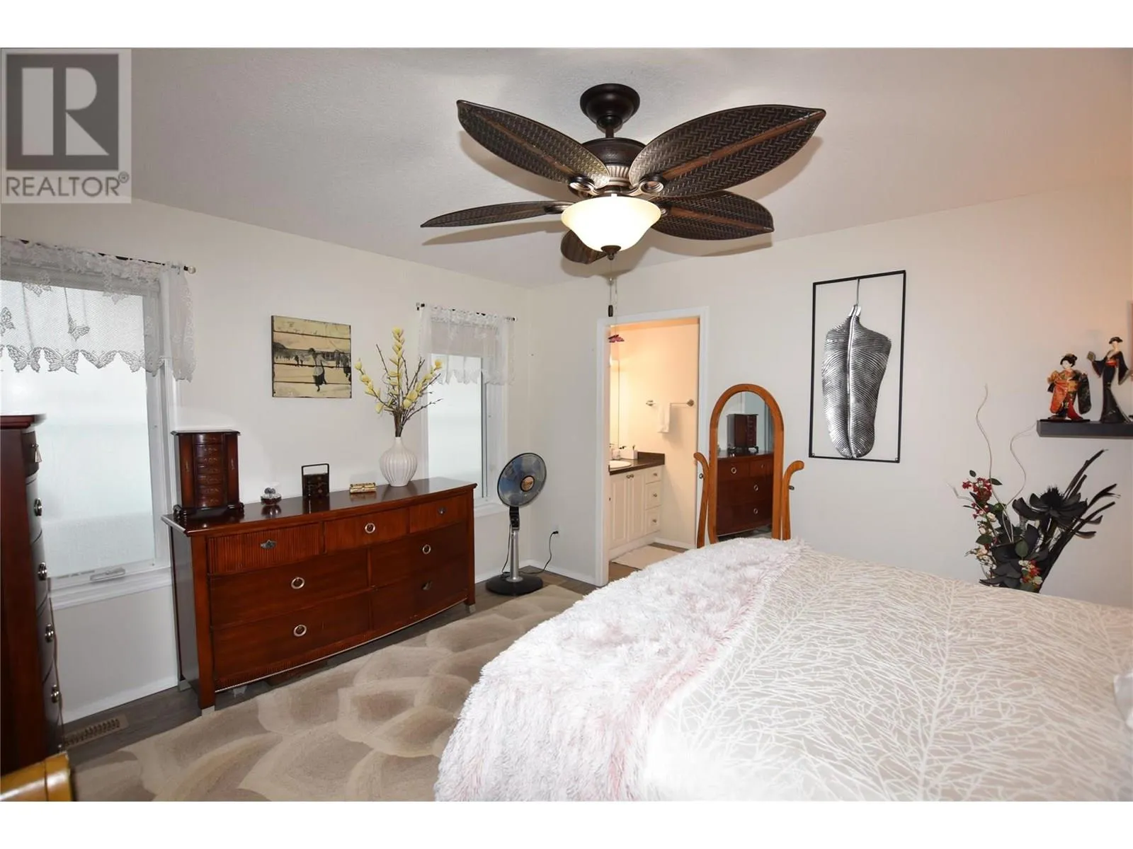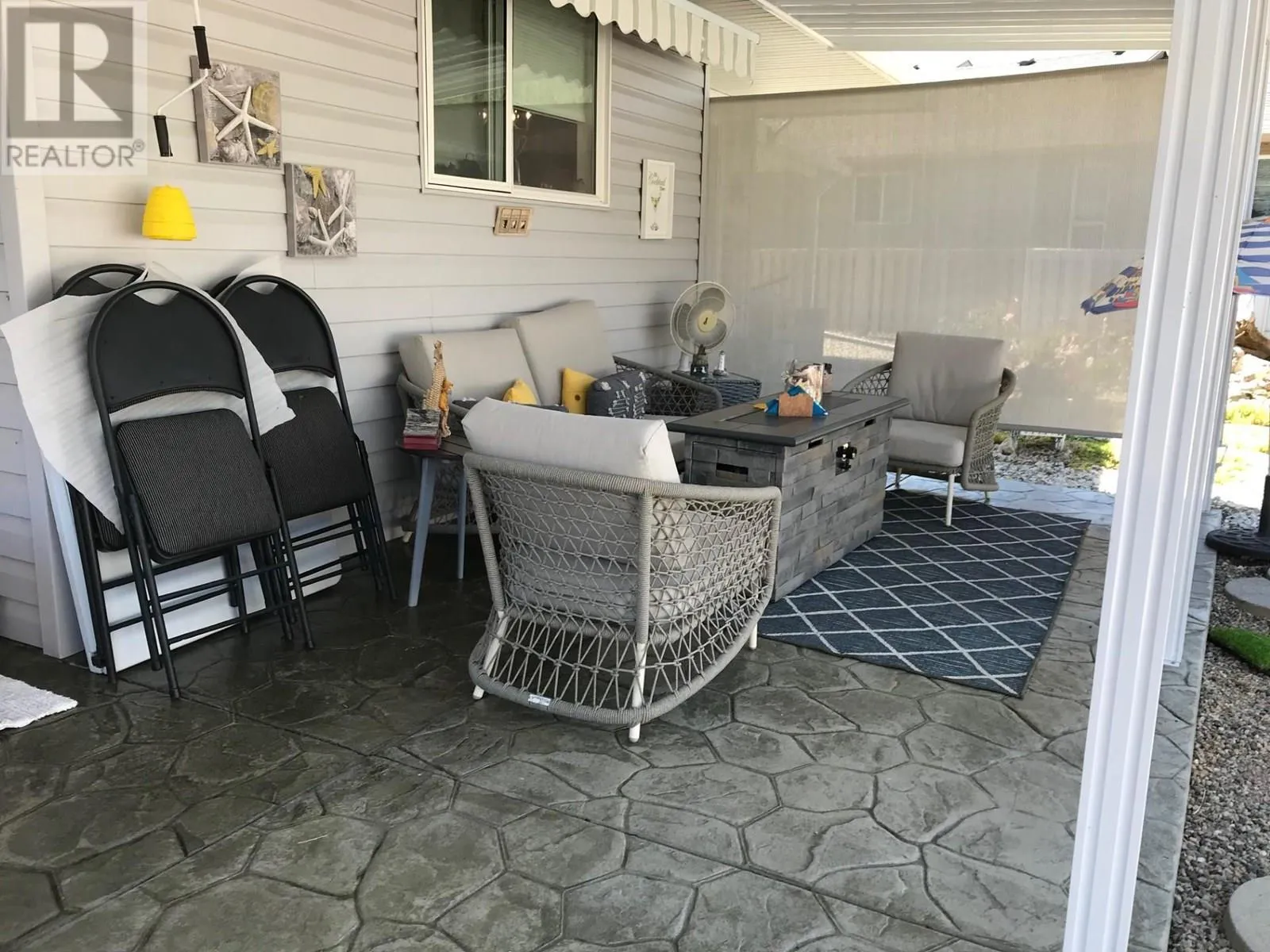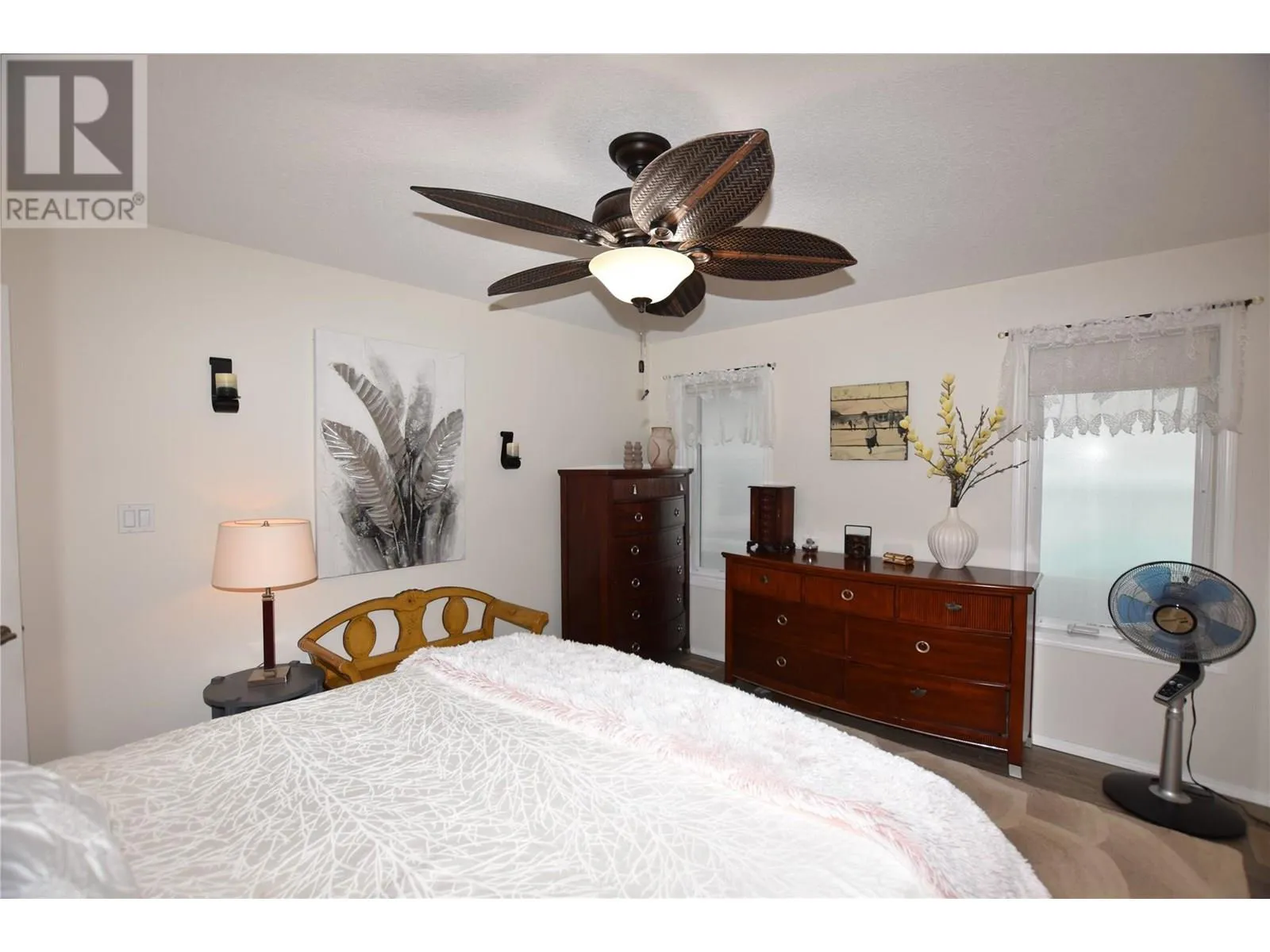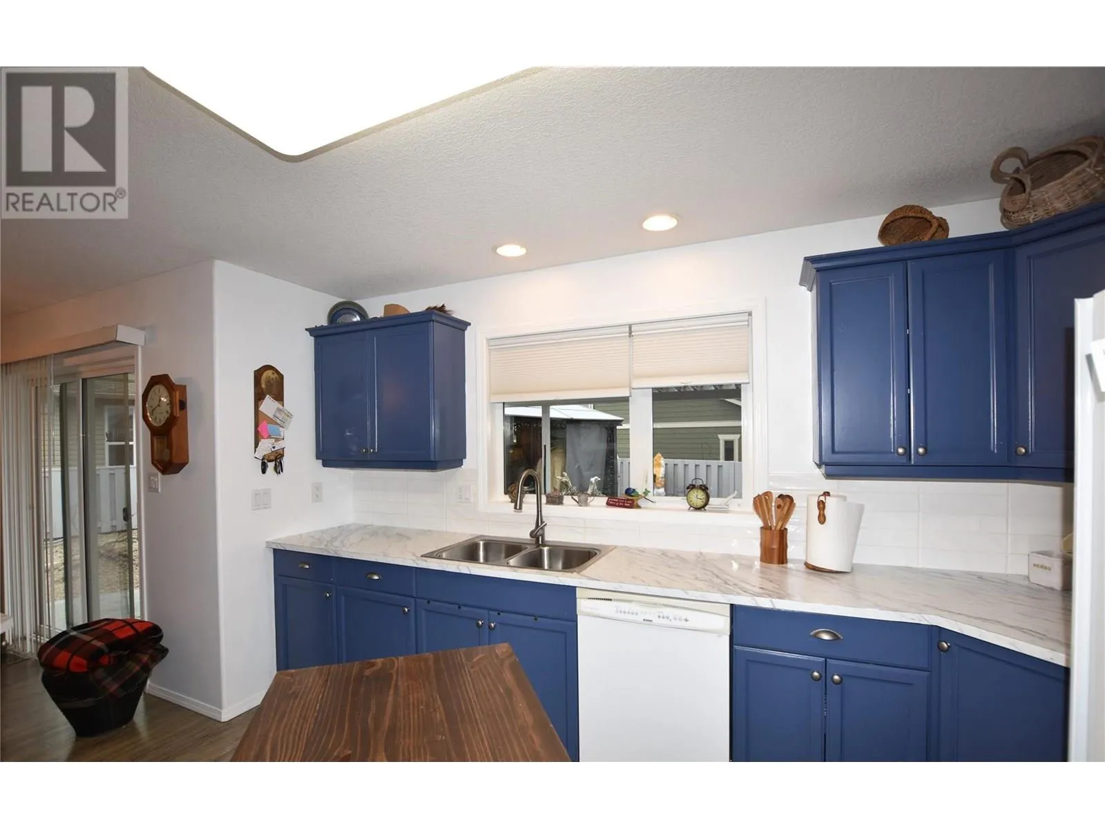 Welcome to 606 Nighthawk Avenue in Parker Cove! This beautifully maintained 2-bedroom, 2.5-bathroom rancher is nestled on a spacious lot just minutes from the beach. It's an ideal choice for those seeking an affordable retirement spot in the stunning Okanagan. Custom-built for comfort, this modern level-entry home features a kitchen full of cupboards and ample counter space, a living room with a cozy gas fireplace and vaulted ceilings, and a large master bedroom with a walk-in closet and a 4-piece en-suite. Enjoy added conveniences like central air, built-in vacuum, and a 4-foot crawl space for extra storage. Some upgrades include vinyl plank flooring, fresh paint, new backsplash, and countertops. The fabulous, landscaped backyard is mostly fenced and includes a patio with an awning and a gazebo for summer dining. The driveway can accommodate your boat or RV and features a sani dump. When standing in front of the home you can see Lake Okanagan that is how close it is and on a dark evening one can even see sparkling hills resorts twinkling lights. The registered lease extends until 2043, with an annual payment of $4488.74 ($388.83/month). (id:27476)