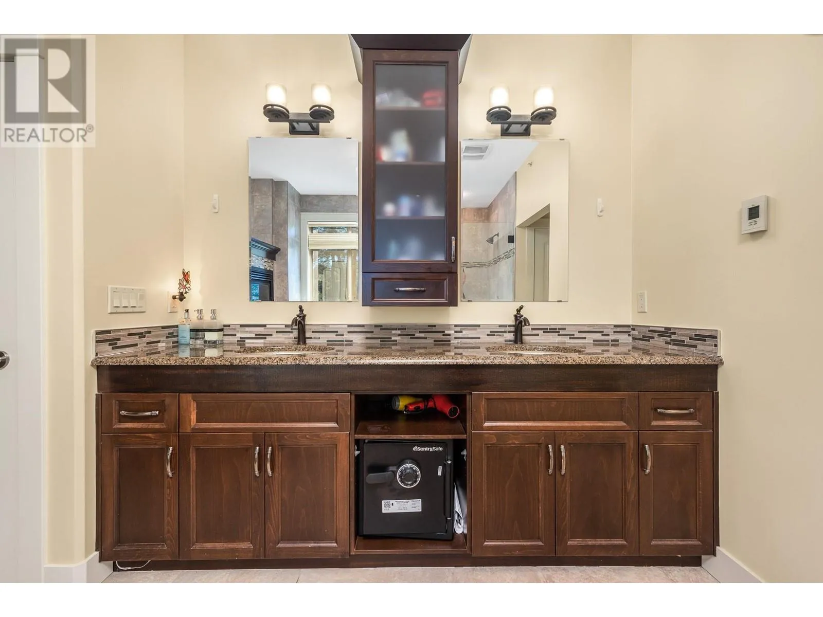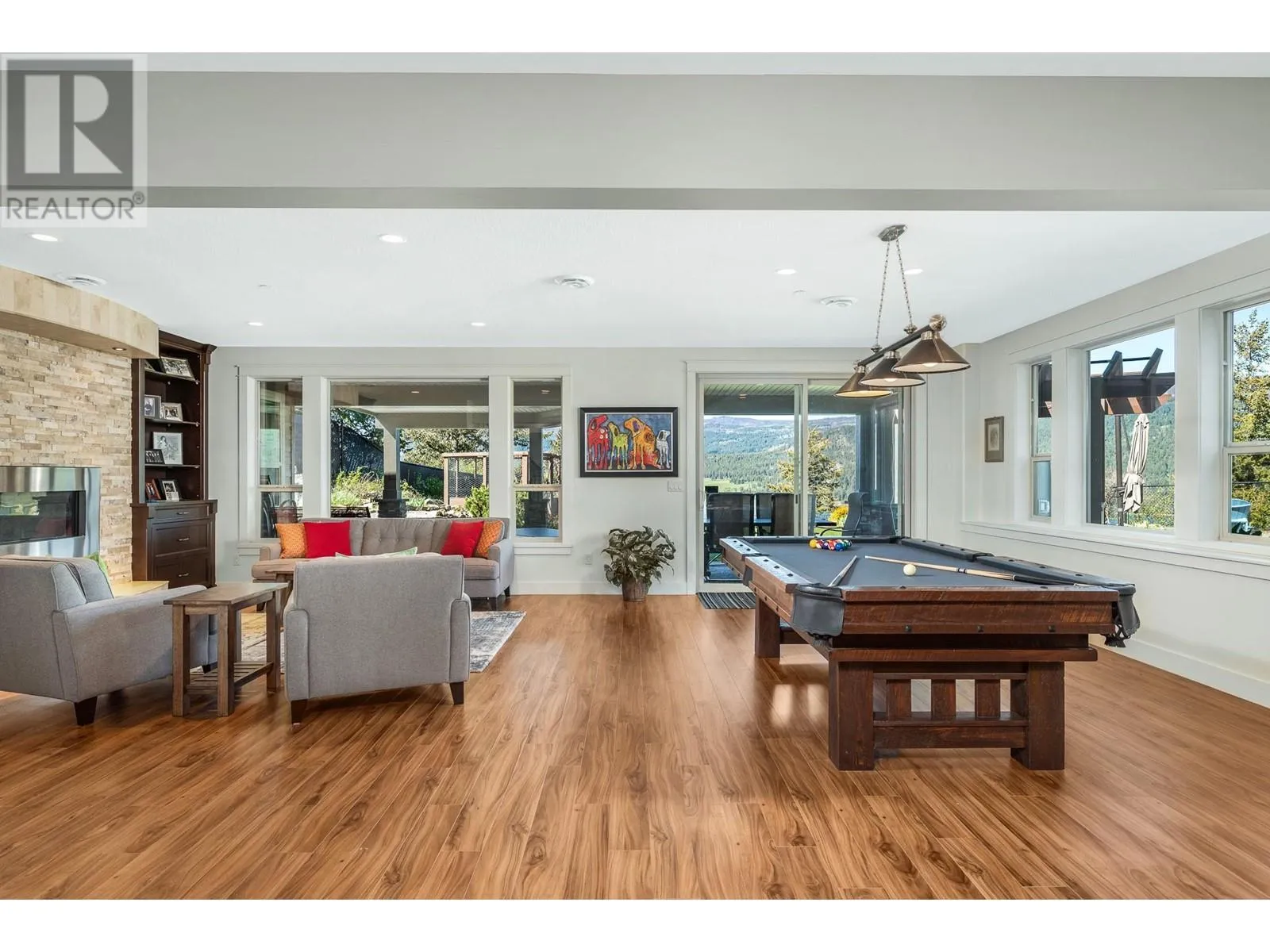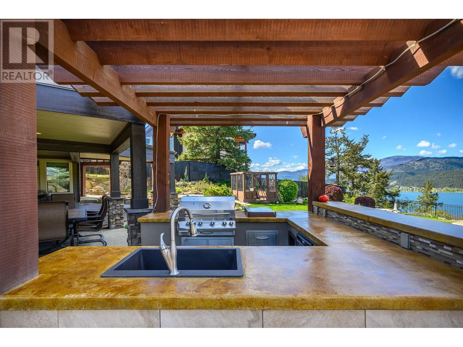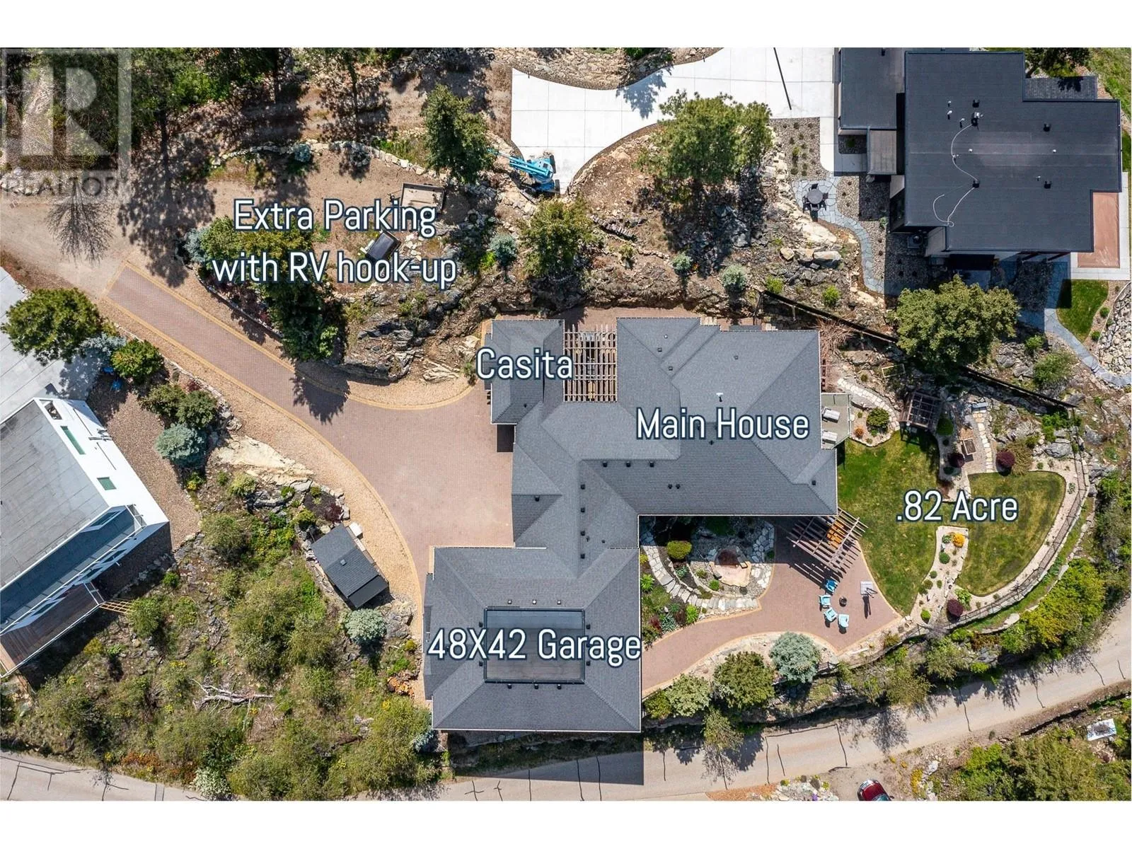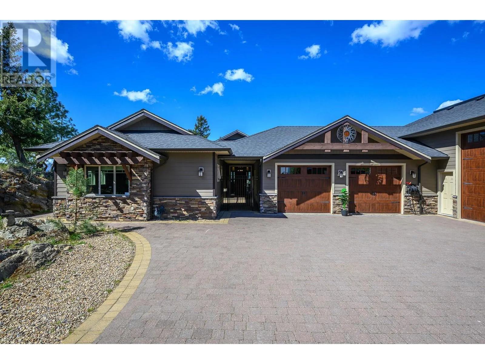 *Seller Motivated* Vacant. Quick Possession. This residence & property is truly in a league of its own. Step into a realm of unparalleled elegance & exclusivity with this exceptional lake view estate on .82 acres of serene privacy with grand garage package & guest house. Offering over 5000 sq. ft. of opulent living space, this residence is a testament to refined living. The main level boasts a spacious open kitchen with granite counters, seamlessly flowing into expansive dining & living areas adorned with vast windows framing breathtaking views of the lake. Step onto your covered deck, complete with a built-in kitchen. Descend into the basement to discover a media room & bar area, leading to the ultimate backyard oasis. Here, entertainment knows no bounds with a luxurious hot tub & outdoor kitchen, perfect for hosting unforgettable gatherings. The garage package is simply unmatched with a colossal 2100 sq. ft. space featuring a 20-foot door & doubles as a regulation pickle-ball court. The driveway provides a 2nd access to the upper level with unlimited parking space & RV hook-up. Safety & functionality are paramount with 400 amp service & fire suppression system. Residents gain exclusive access to a privately shared beach & boat launch area just minutes away. Located in the highly sought-after Adventure Bay area all within reach of the Okanagan's four-season lifestyle amenities. Own a piece of paradise. Contact the Listing Agent or your Agent today to schedule a viewing. (id:27476)