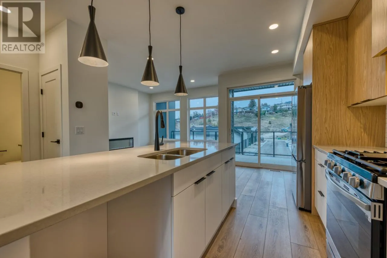 OKANAGAN LIVING IS NOW MORE ATTAINABLE at Sailview by Carrington Communities! These beautiful townhomes are ideally located less than a 10-minute walk from Paddlewheel Park and Okanagan Lake, close proximity to schools, parks, shopping, restaurants, groceries, golf courses, the Vernon Yacht Club, and Silver Star Ski Resortâeverything you need for a vibrant lifestyle! From the moment you step through the covered front entry or park in your double car attached garage, you'll feel the luxury of this thoughtfully designed home. The main floor welcomes you with an open-concept layout, featuring a sizeable kitchen with a 6pc appliance package, a spacious dining area, a den, and a great room with large windows that open up to a generous balconyâperfect for enjoying the views and fresh air. The carefully planned second floor has 2 secondary bedrooms, laundry (machines included) and the primary with 4 pc ensuite and WIC (id:27476)