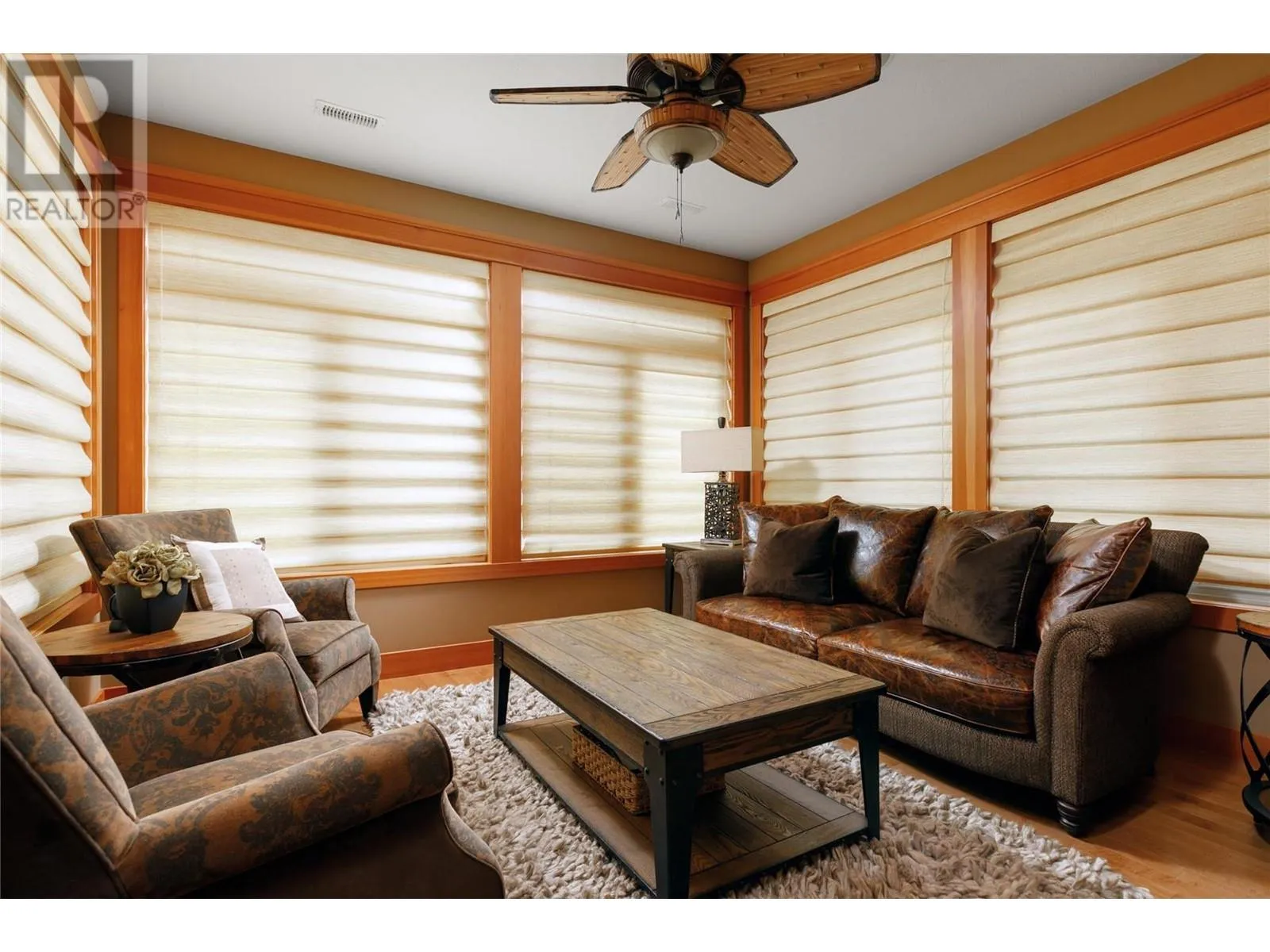 The first âmansionâ ever built in Predator Ridge is available for purchase! Wake up each day to enjoy your morning from the hot tub on your patio as the sun rises over the Monashee Mountains and gleams on the emerald-green golf course just beyond your back door. Private, double-sized lot in a quiet location at the end of a cul-de-sac, this cleverly designed, massive yet cozy 7500sf home offers relaxed living with 5 bedrooms and 7 bathrooms, 2 kitchens, 2 laundry areas, large sunroom, theatre room, wine room, fitness room and sauna plus a caregiver-suite on the main floor. Relax and enjoy multiple connected living areas as a family retreat or use as an exciting business meeting resort offering 3 separate suites and an oversized 4 car garage. The most wonderful place to entertain with proximity to the clubhouse, restaurants, world class biking and hiking trails, pool and fitness centre. A Phase 1 Golf Membership is included but transfer fees will apply. Predator Ridge is exempt from BC Speculation and Vacancy Tax!! (id:27476)