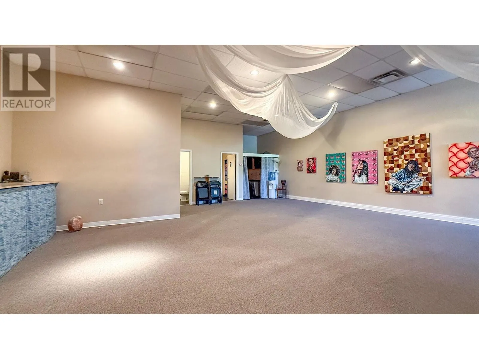 Commercial space available for lease in busy Downtown Vernon. Unit is approx. 1,302 SF and features a large open area (perfect for a fitness studio or retail business), reception area, treatment room or office, two in-suite washrooms and storage areas. Unit is located in the southwest corner of the building, with access from the complex parking lot and rear laneway. Up to 2 parking stalls are available with the unit at $50/month per stall. Area has plenty of available street parking. Potential for fascia signage on the side of the building above the unit. Zoned CMUC, the space supports a wide range of commercial uses. Central location, only steps away from Dollarama, Fresh Co and Shoppers Drug Mart. (id:27476)