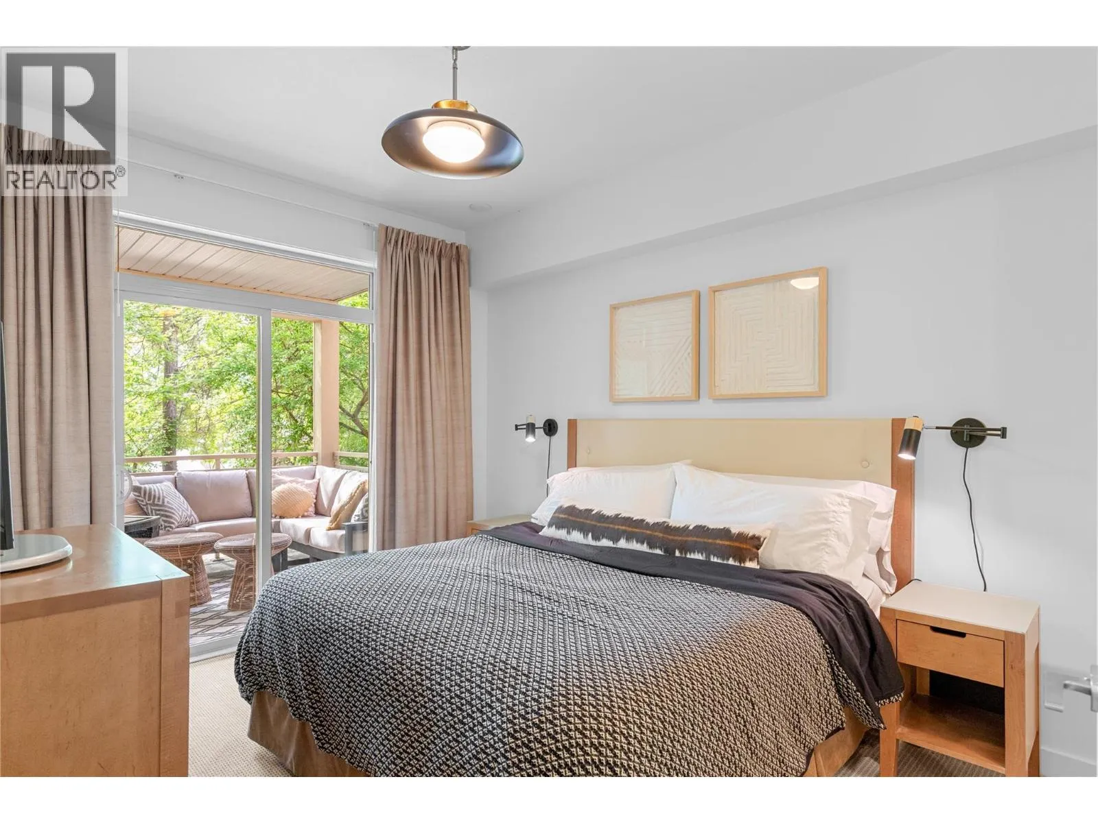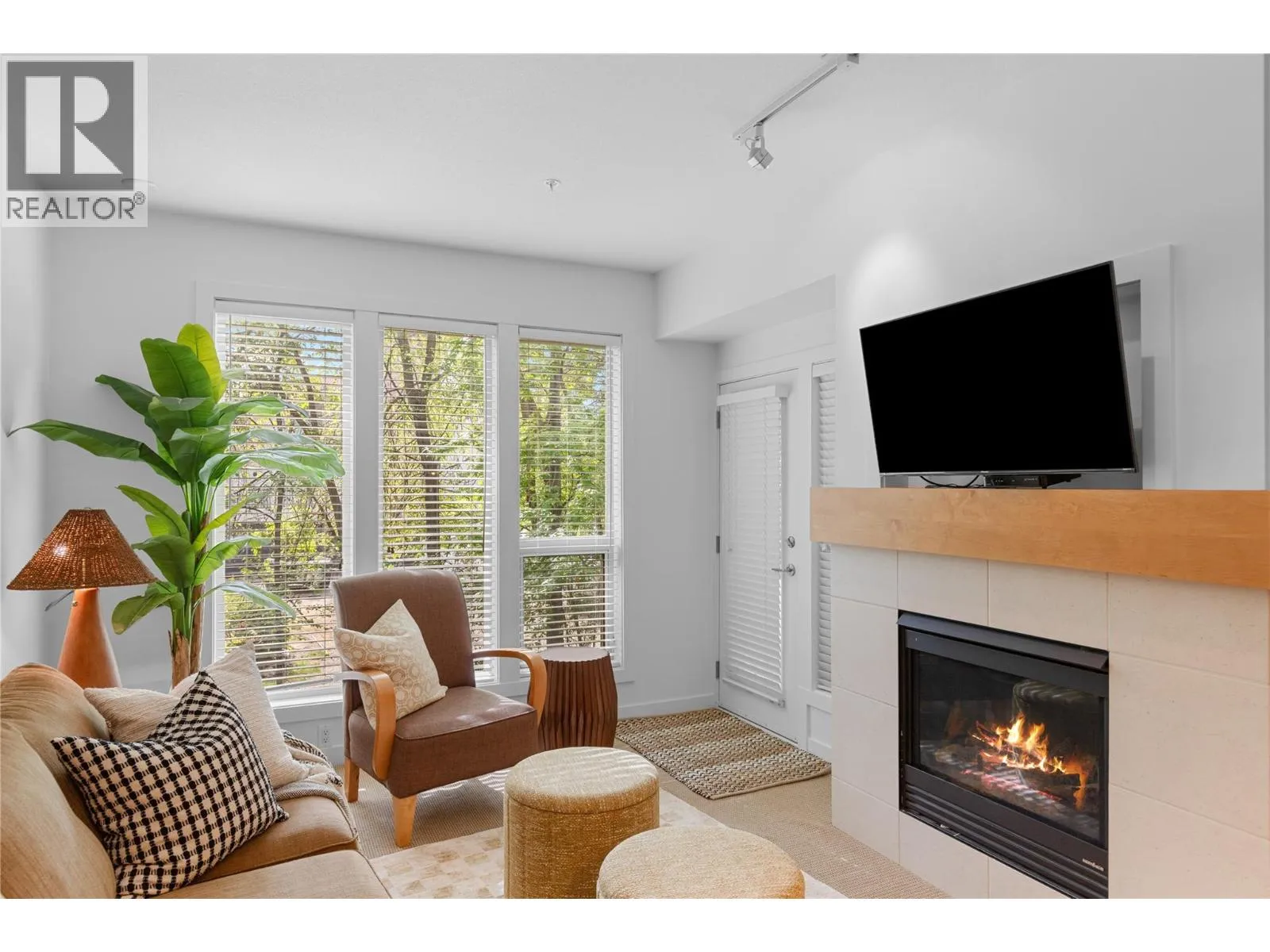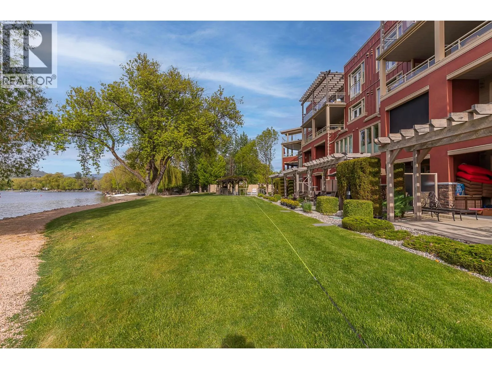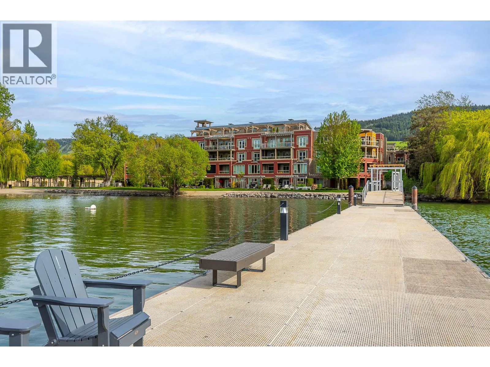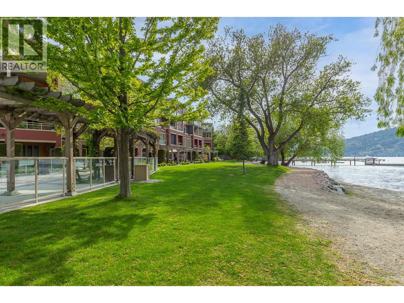 Discover the ultimate Okanagan lakeside lifestyle with this beautifully appointed 2 bedroom, 2 bathroom ground floor condo at the prestigious Strand Lakeside Resort. Immaculately maintained, this luxury residence offers seamless turnkey living. Fully furnished with interior designer appointed updates and furnishing. Upgrades include fresh paint, new light fixtures, and bathroom fixtures. With an elegant open concept layout featuring rich wood cabinetry, granite countertops, stainless steel appliances, and a dedicated wine fridge. The cozy gas fireplace adds warmth and charm, with a private deck perfect for relaxation, and BBQ's. On the ravine side of the building, nice and quiet! shows 10/10. This unit allows full time living, a vacation escape, or use as a high performing investment property! The Strand offers resort style amenities including an outdoor pool, hot tub, secure underground parking, and an impressive 370 feet of private lakeshore, and beautifully landscaped grounds. Situated just minutes from world class golf courses, top tier schools, pickleball courts, and the renowned SilverStar Mountain Resort, every lifestyle desire is within easy reach. Flexible rental options, from full time occupancy to short term weekly stays enhance this condo's value as both a personal haven and a lucrative investment. Donât miss this rare opportunity to embrace the lakefront experience at a fraction of the lakeshore price. (id:27476)