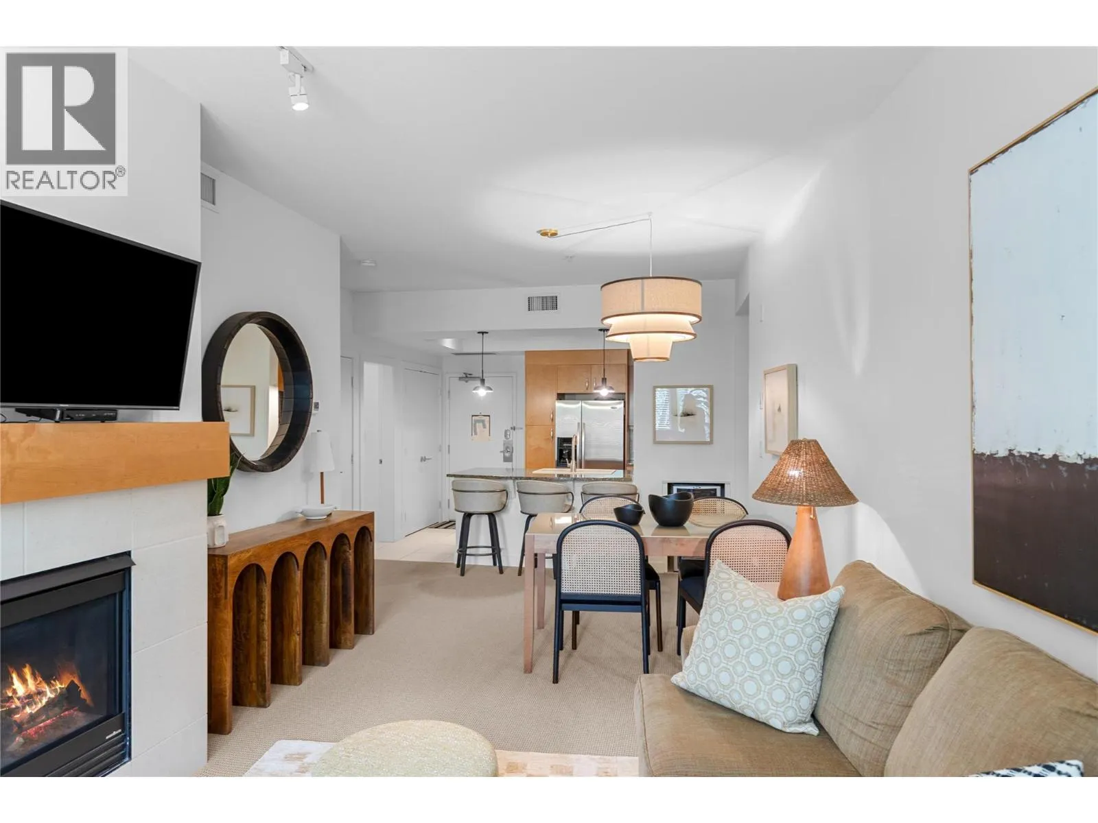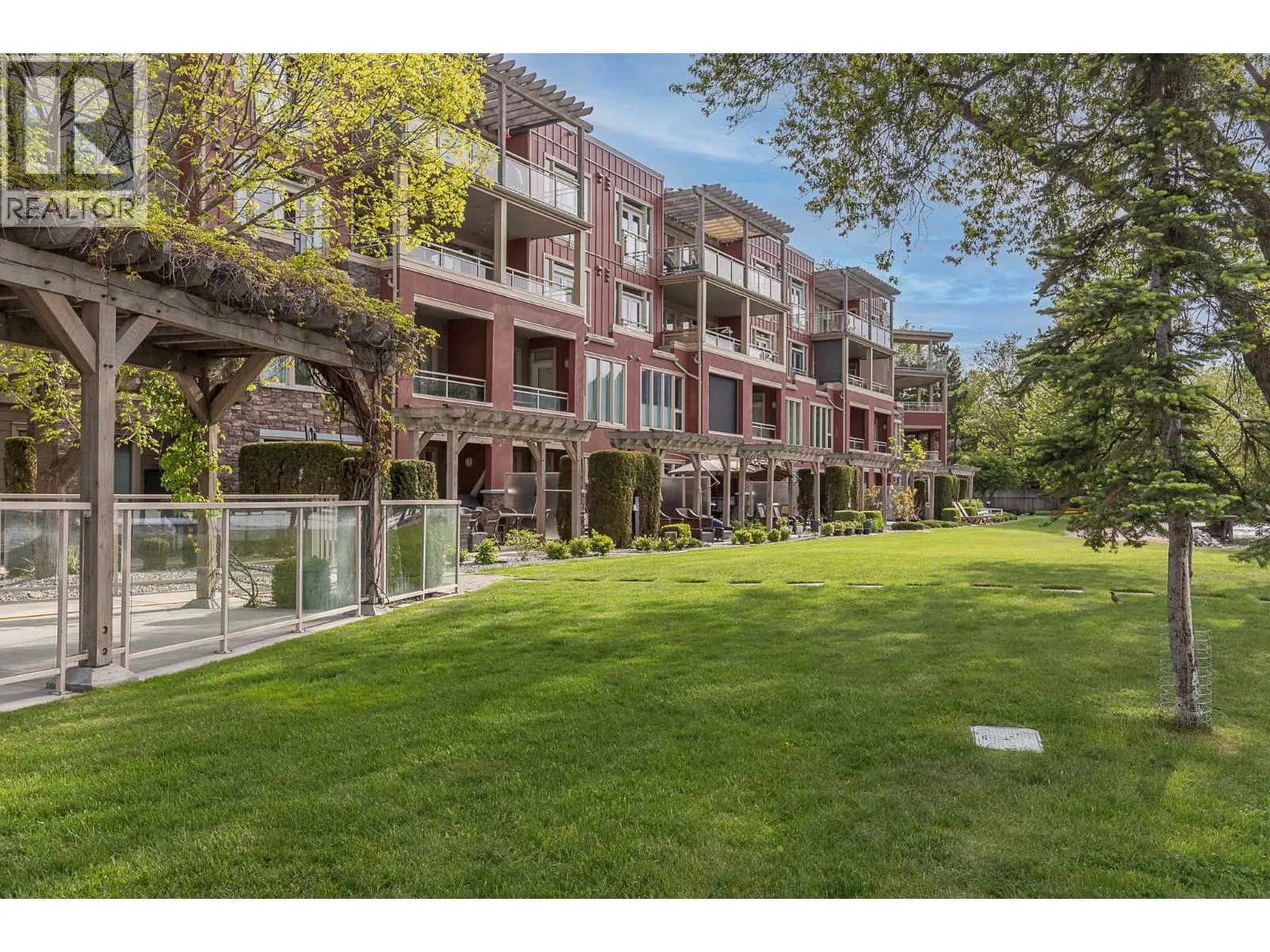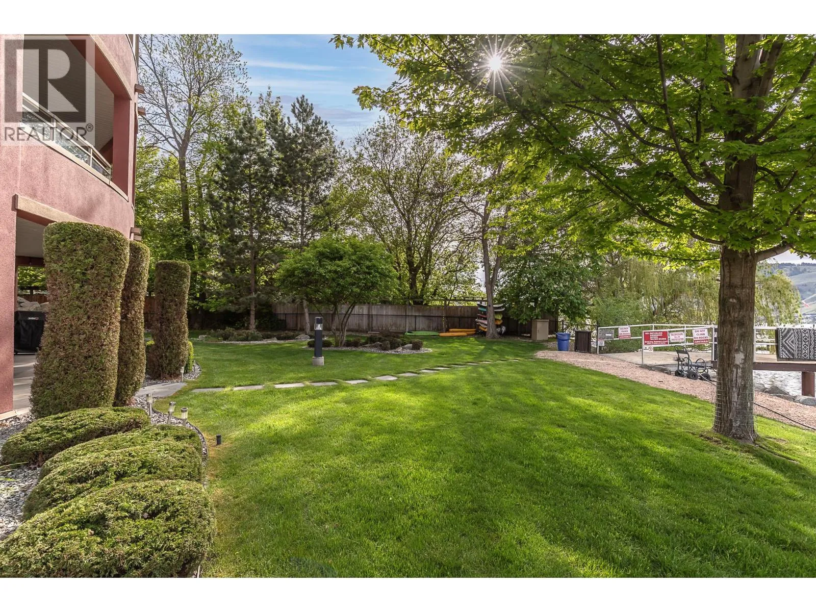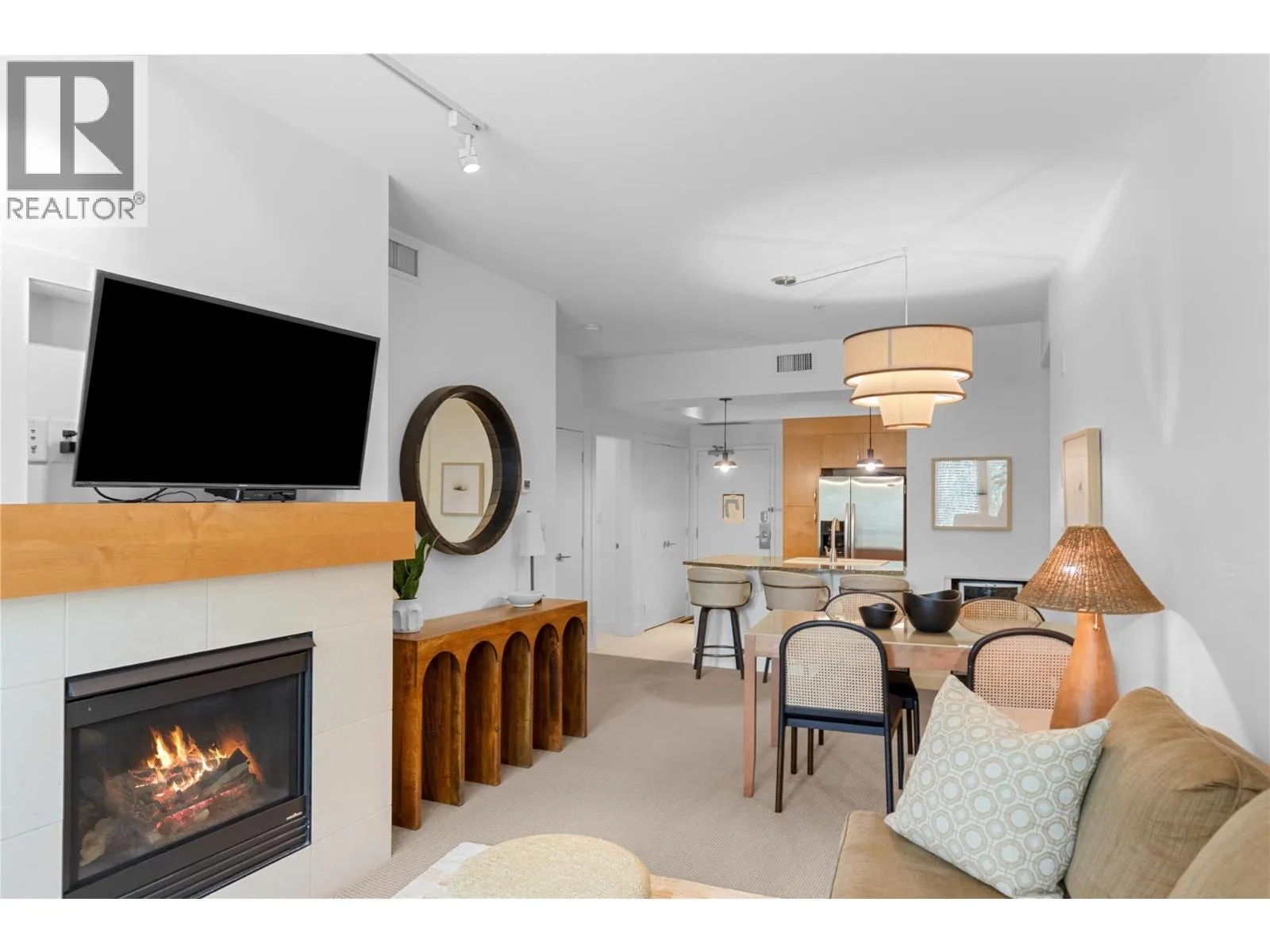 Discover the ultimate Okanagan lakeside lifestyle with this beautifully appointed 2 bedroom, 2 bathroom ground floor condo at the prestigious Strand Lakeside Resort. Immaculately maintained, this luxury residence offers seamless turnkey living. Fully furnished with interior designer appointed updates and furnishing. Upgrades include fresh paint, new light fixtures, and bathroom fixtures. With an elegant open concept layout featuring rich wood cabinetry, granite countertops, stainless steel appliances, and a dedicated wine fridge. The cozy gas fireplace adds warmth and charm, with a private deck perfect for relaxation, and BBQ's. On the ravine side of the building, nice and quiet! shows 10/10. This unit allows full time living, a vacation escape, or use as a high performing investment property! The Strand offers resort style amenities including an outdoor pool, hot tub, secure underground parking, and an impressive 370 feet of private lakeshore, and beautifully landscaped grounds. Situated just minutes from world class golf courses, top tier schools, pickleball courts, and the renowned SilverStar Mountain Resort, every lifestyle desire is within easy reach. Flexible rental options, from full time occupancy to short term weekly stays enhance this condo's value as both a personal haven and a lucrative investment. Donât miss this rare opportunity to embrace the lakefront experience at a fraction of the lakeshore price. (id:27476)