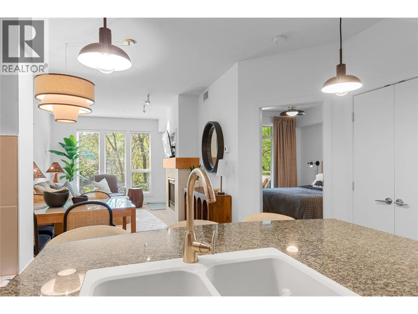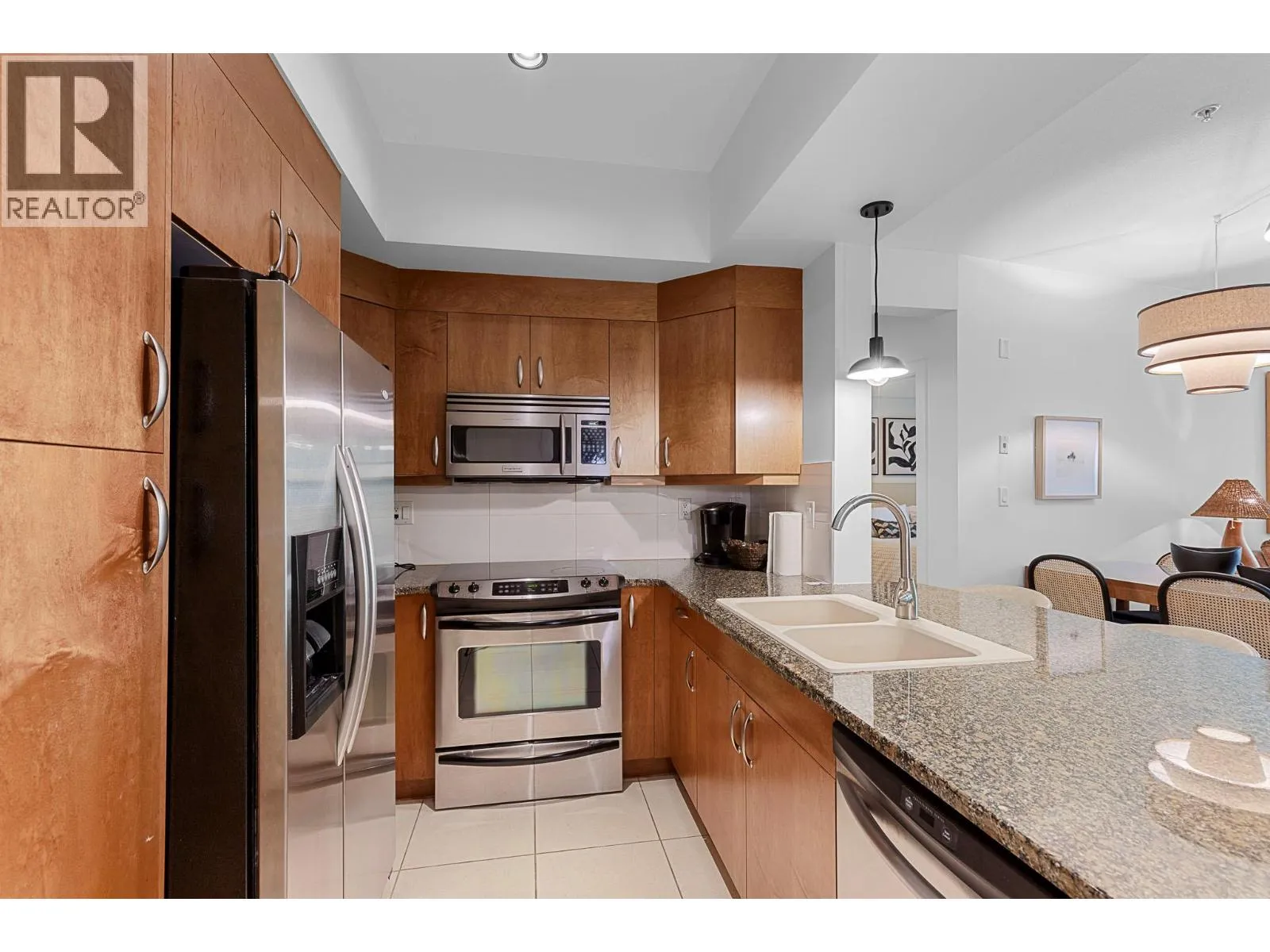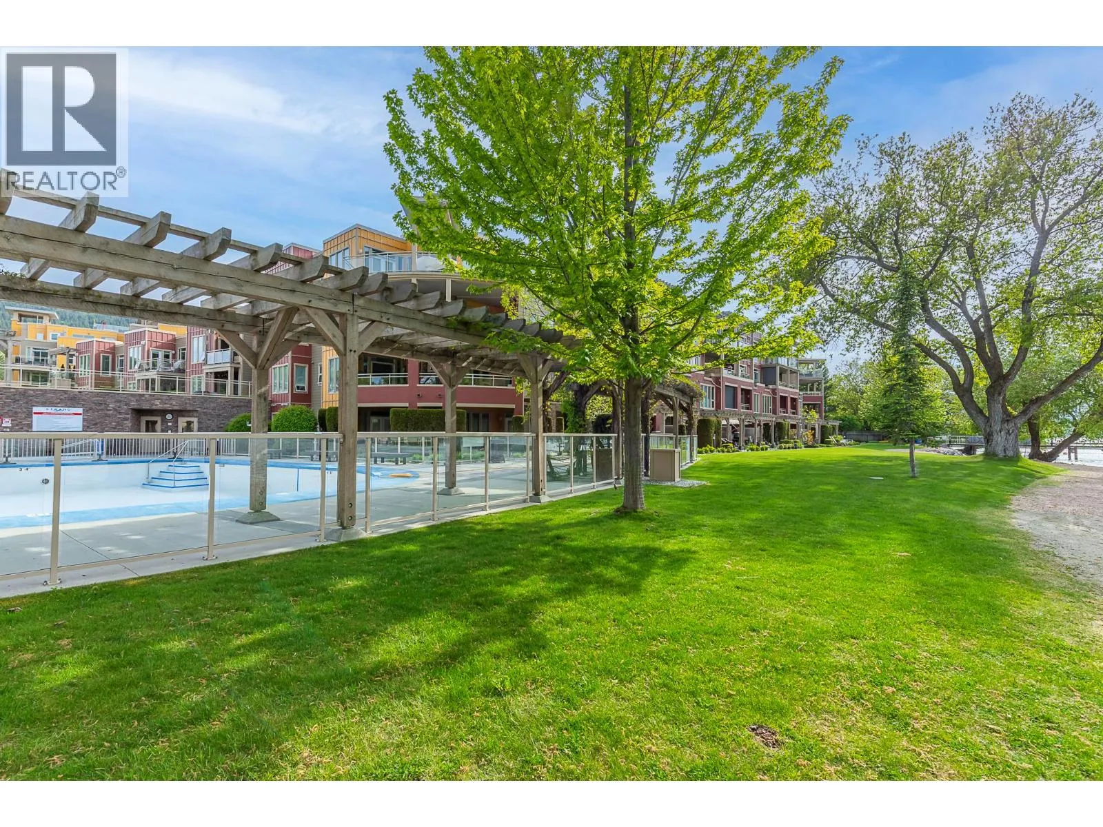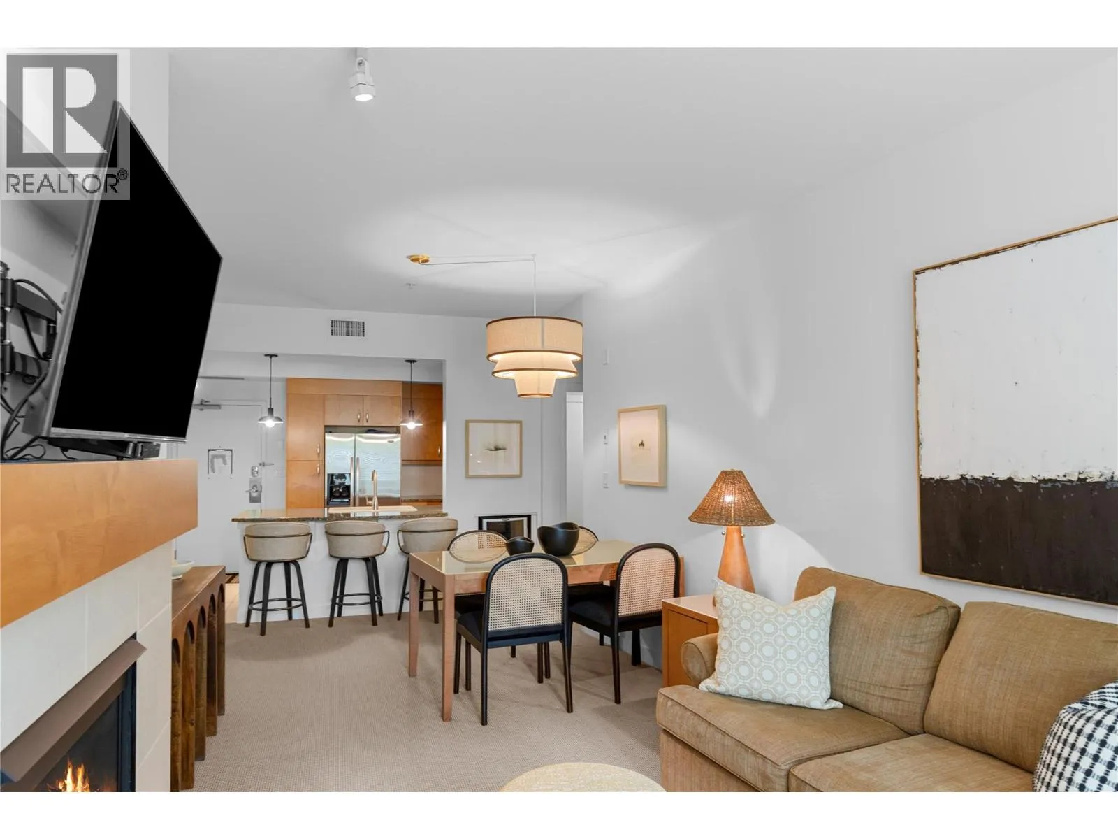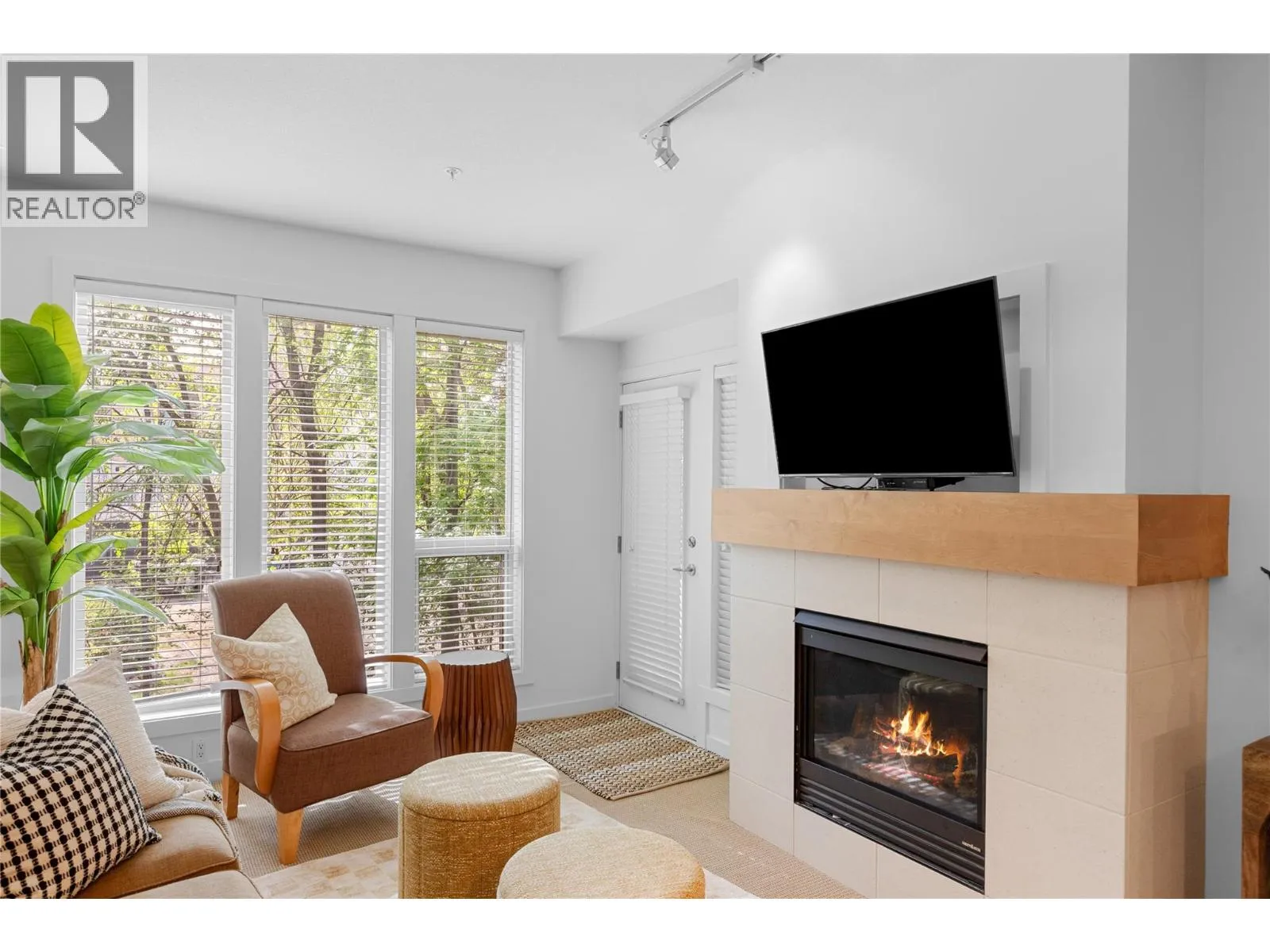 Discover the ultimate Okanagan lakeside lifestyle with this beautifully appointed 2 bedroom, 2 bathroom ground floor condo at the prestigious Strand Lakeside Resort. Immaculately maintained, this luxury residence offers seamless turnkey living. Fully furnished with interior designer appointed updates and furnishing. Upgrades include fresh paint, new light fixtures, and bathroom fixtures. With an elegant open concept layout featuring rich wood cabinetry, granite countertops, stainless steel appliances, and a dedicated wine fridge. The cozy gas fireplace adds warmth and charm, with a private deck perfect for relaxation, and BBQ's. On the ravine side of the building, nice and quiet! shows 10/10. This unit allows full time living, a vacation escape, or use as a high performing investment property! The Strand offers resort style amenities including an outdoor pool, hot tub, secure underground parking, and an impressive 370 feet of private lakeshore, and beautifully landscaped grounds. Situated just minutes from world class golf courses, top tier schools, pickleball courts, and the renowned SilverStar Mountain Resort, every lifestyle desire is within easy reach. Flexible rental options, from full time occupancy to short term weekly stays enhance this condo's value as both a personal haven and a lucrative investment. Donât miss this rare opportunity to embrace the lakefront experience at a fraction of the lakeshore price. (id:27476)