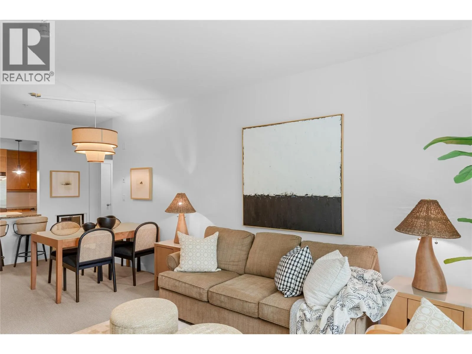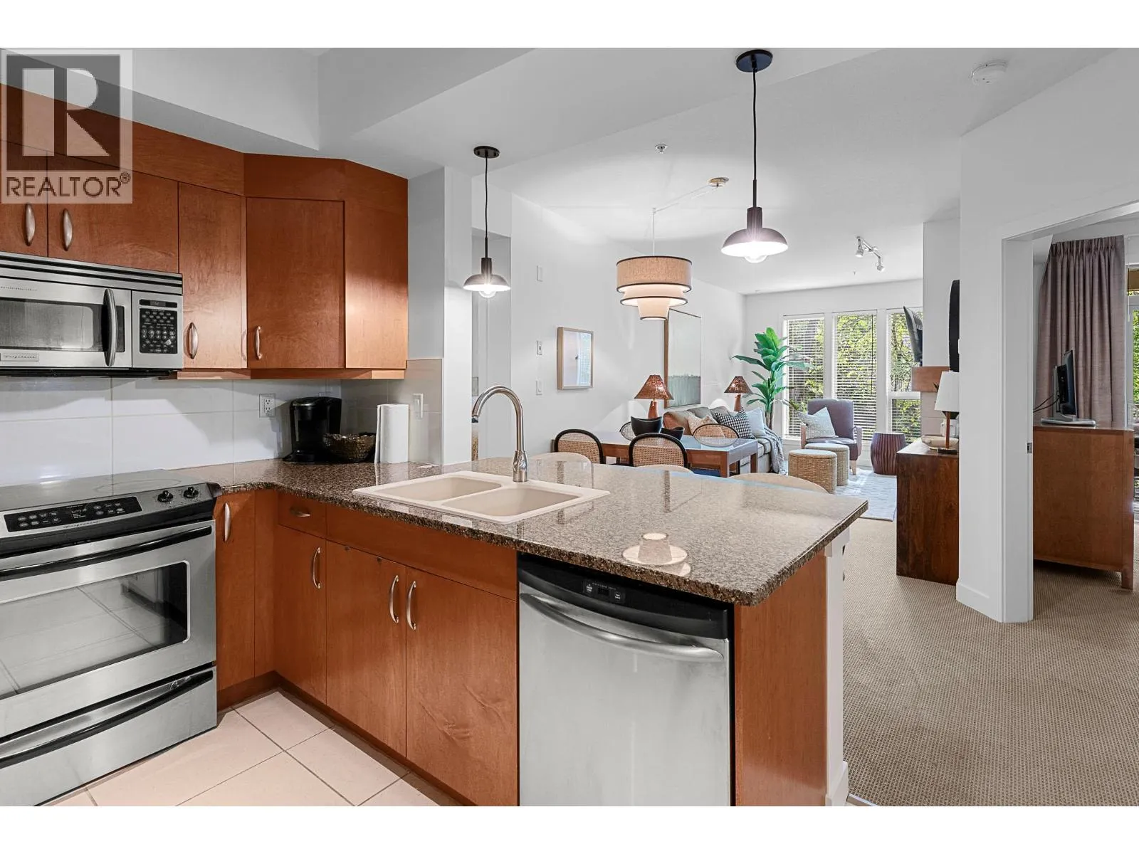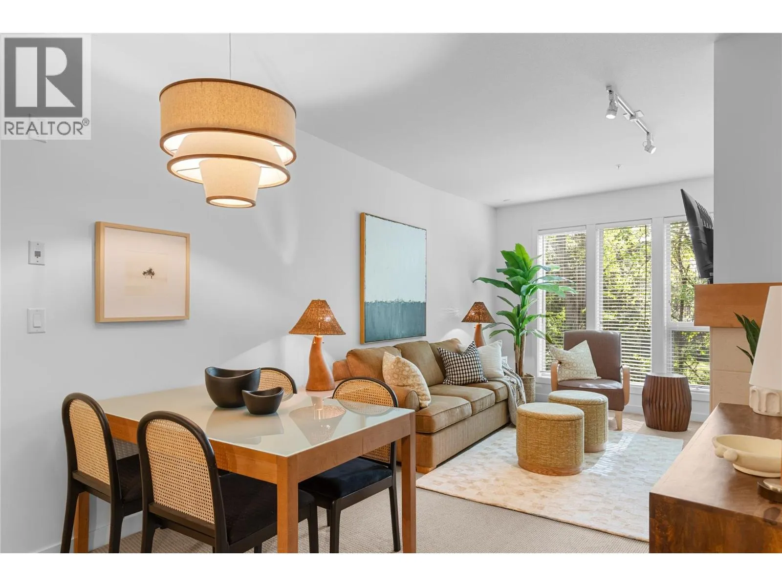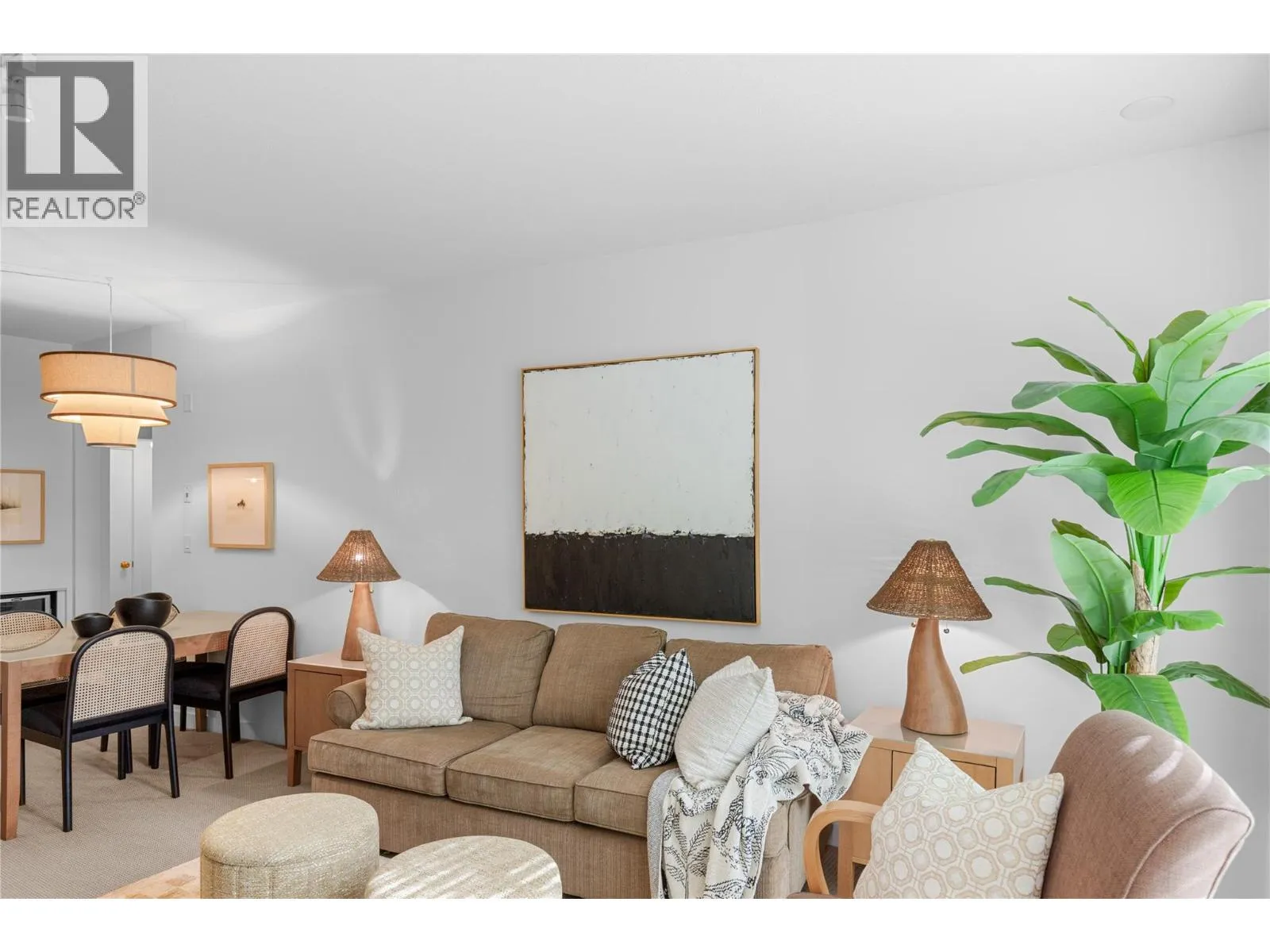 Discover the ultimate Okanagan lakeside lifestyle with this beautifully appointed 2 bedroom, 2 bathroom ground floor condo at the prestigious Strand Lakeside Resort. Immaculately maintained, this luxury residence offers seamless turnkey living. Fully furnished with interior designer appointed updates and furnishing. Upgrades include fresh paint, new light fixtures, and bathroom fixtures. With an elegant open concept layout featuring rich wood cabinetry, granite countertops, stainless steel appliances, and a dedicated wine fridge. The cozy gas fireplace adds warmth and charm, with a private deck perfect for relaxation, and BBQ's. On the ravine side of the building, nice and quiet! shows 10/10. This unit allows full time living, a vacation escape, or use as a high performing investment property! The Strand offers resort style amenities including an outdoor pool, hot tub, secure underground parking, and an impressive 370 feet of private lakeshore, and beautifully landscaped grounds. Situated just minutes from world class golf courses, top tier schools, pickleball courts, and the renowned SilverStar Mountain Resort, every lifestyle desire is within easy reach. Flexible rental options, from full time occupancy to short term weekly stays enhance this condo's value as both a personal haven and a lucrative investment. Donât miss this rare opportunity to embrace the lakefront experience at a fraction of the lakeshore price. (id:27476)