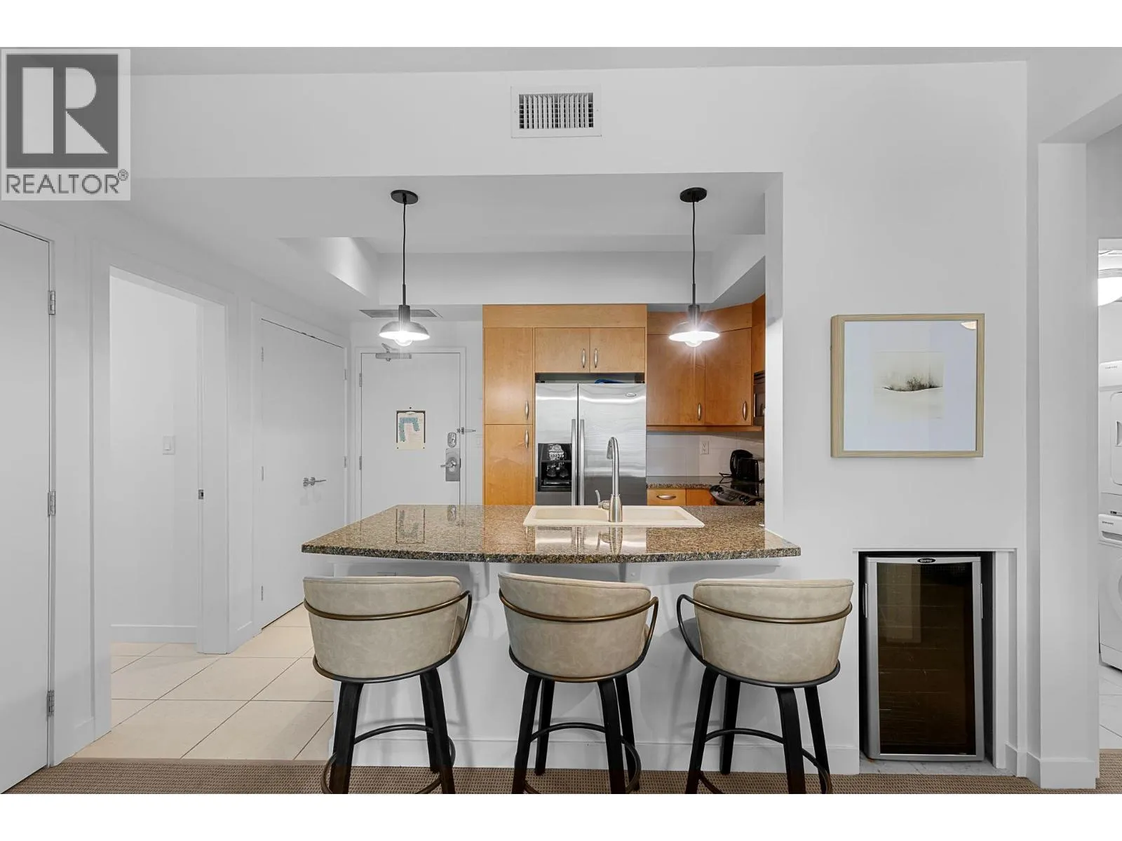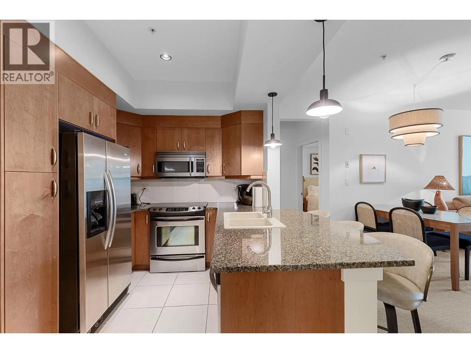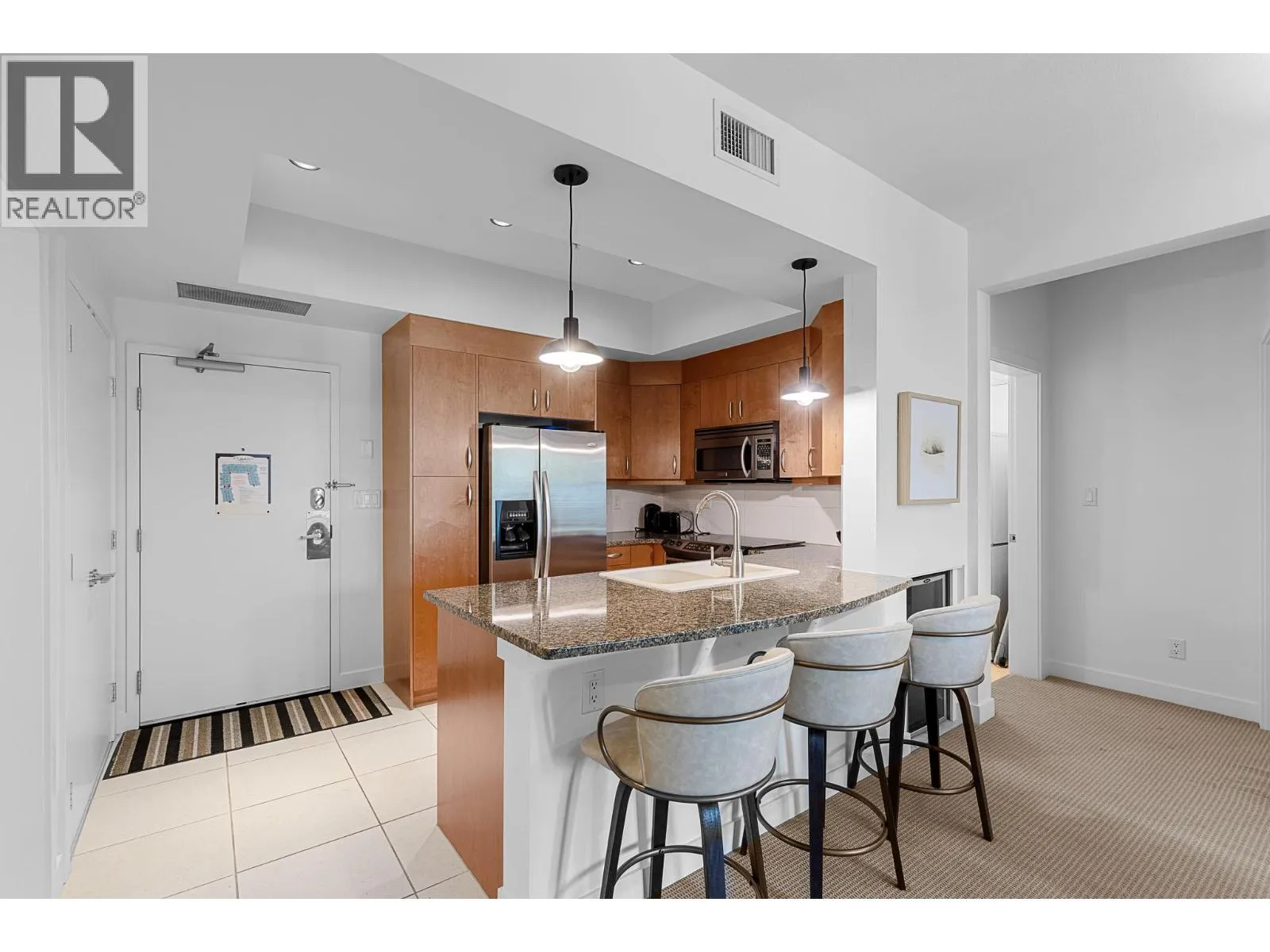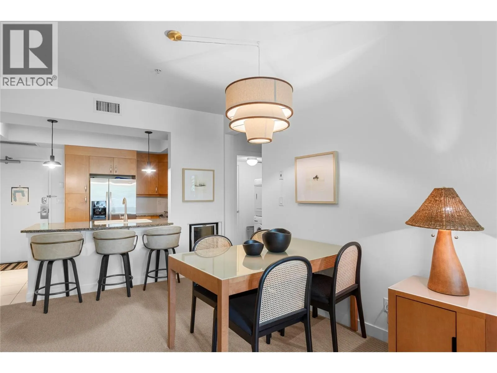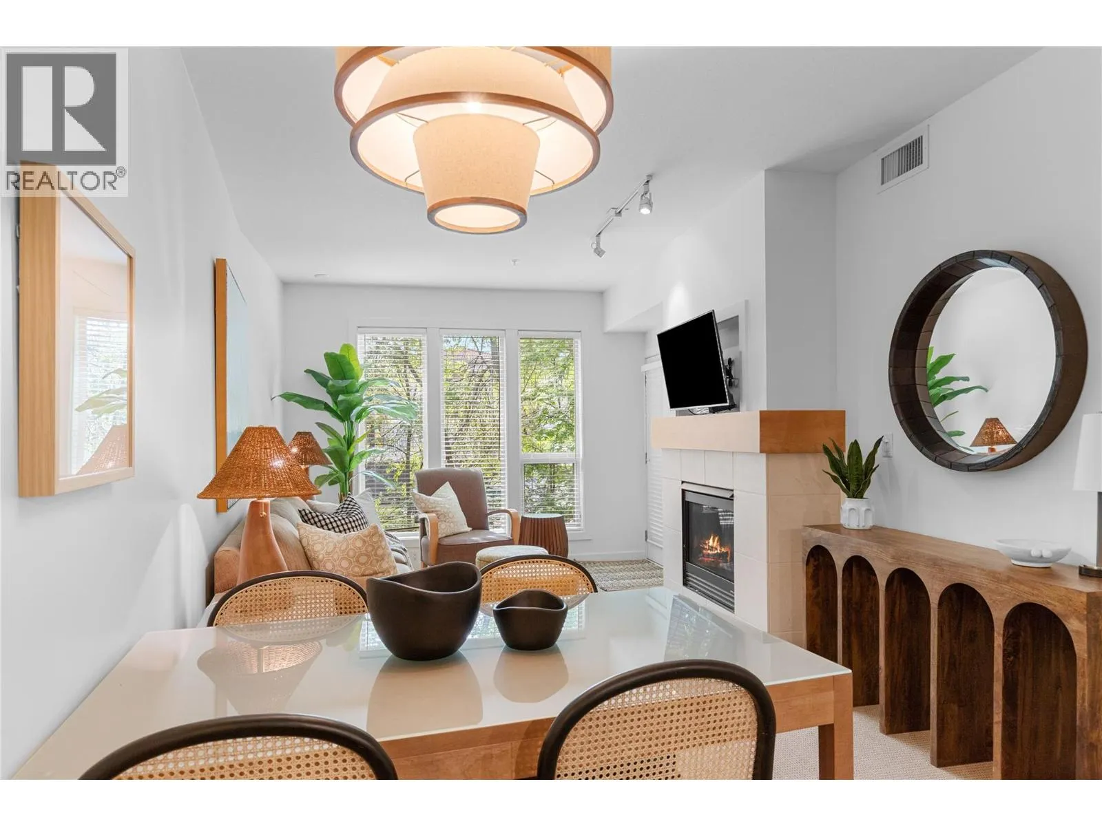 Discover the ultimate Okanagan lakeside lifestyle with this beautifully appointed 2 bedroom, 2 bathroom ground floor condo at the prestigious Strand Lakeside Resort. Immaculately maintained, this luxury residence offers seamless turnkey living. Fully furnished with interior designer appointed updates and furnishing. Upgrades include fresh paint, new light fixtures, and bathroom fixtures. With an elegant open concept layout featuring rich wood cabinetry, granite countertops, stainless steel appliances, and a dedicated wine fridge. The cozy gas fireplace adds warmth and charm, with a private deck perfect for relaxation, and BBQ's. On the ravine side of the building, nice and quiet! shows 10/10. This unit allows full time living, a vacation escape, or use as a high performing investment property! The Strand offers resort style amenities including an outdoor pool, hot tub, secure underground parking, and an impressive 370 feet of private lakeshore, and beautifully landscaped grounds. Situated just minutes from world class golf courses, top tier schools, pickleball courts, and the renowned SilverStar Mountain Resort, every lifestyle desire is within easy reach. Flexible rental options, from full time occupancy to short term weekly stays enhance this condo's value as both a personal haven and a lucrative investment. Donât miss this rare opportunity to embrace the lakefront experience at a fraction of the lakeshore price. (id:27476)