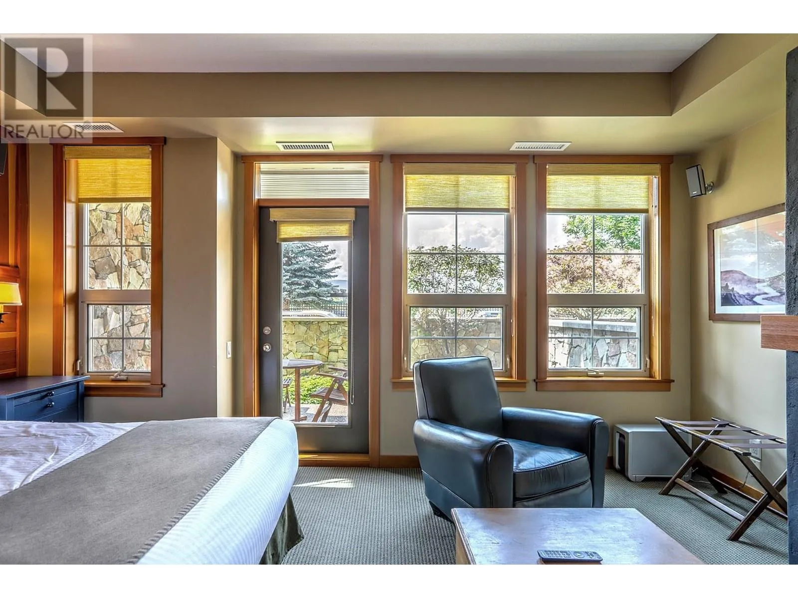 This unit now can be lived in all year round with no rental obligations or commitments. The very most affordable to to have year round living or lock and leave convenience at Predator Ridge. Perfect ""heart of the village location. Welcome to the Lodge at Predator Ridge! This ground floor studio unit is perfect for very affordable for: lock and leave enjoyment, year round living, or long term rentals during the off season. Easy to purchase and own and comes fully furnished and ready to go. Predator Ridge features two 18 hole championship courses, a world-class practice facility, and an award-winning golf academy. The community also has tennis/pickleball, and biking/hiking. Included in your monthly fees is access to the Fitness Centre with indoor pool & hot tub, weight/exercise room & yoga studio. Right next door is Sparkling Hill Wellness Hotel. and their world class spa. Also close to Kalamalka & Okanagan Lakes for swimming and boating and skiing in the winter at Silver Star Mountain. Enjoy a golf course resort lifestyle at the Okanagan's very best golf course(s). Great building / complex amenities with with outdoor pool, laundry, in house general and liquor store, Pallinos and just steps away from The Range Restaurant & Bar store. View from the convenience of your own home with our 360 degree virtual tours (id:27476)