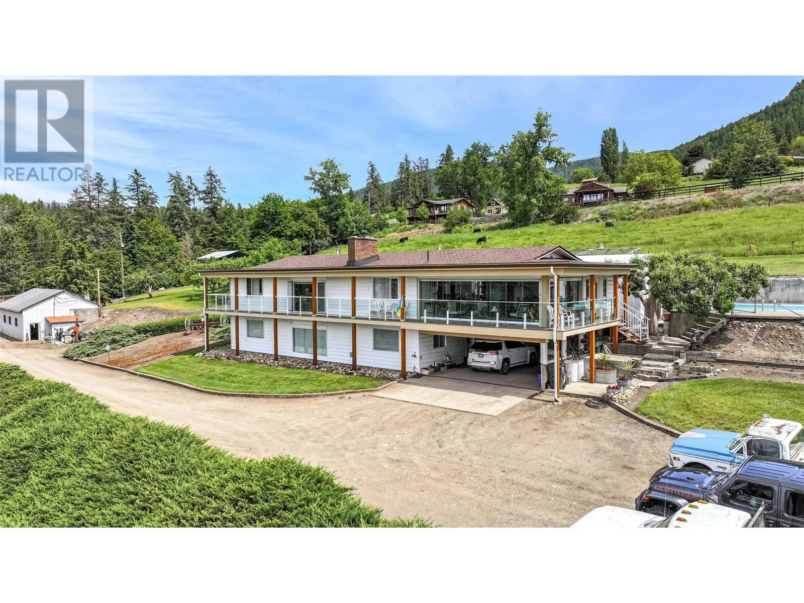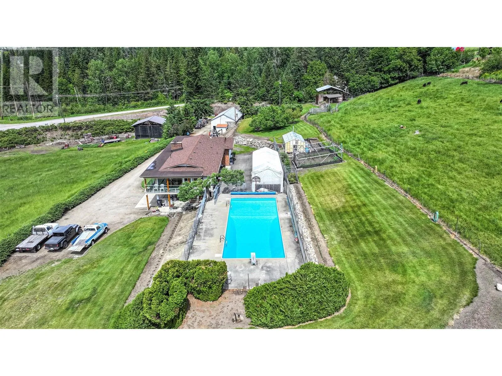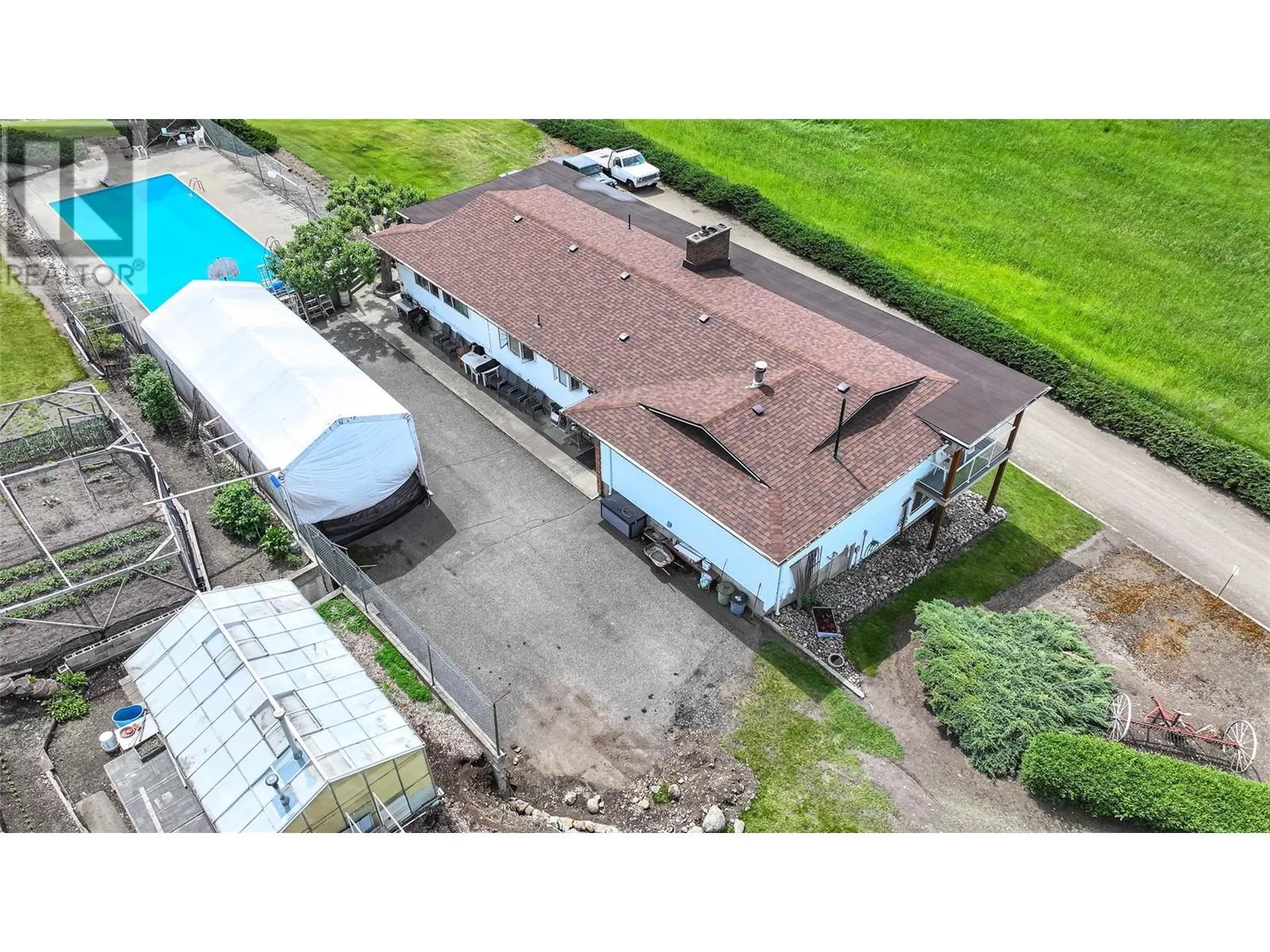 9.45 acre farm property with 4 bed / 3 bath home in the North BX area of Vernon. Enjoy the great valley and lake views from the large sunroom (21'x 25') with floor to ceiling windows. The home has much to offer, 3 bedrms. on the main level with the primary bedroom having a 3 pce. ensuite bath. Country kitchen with island, and a sunken living room with stone fireplace with gas insert. Downstairs is where you will find the 1 bed/1 bath in-law suite with separate entrance. Laundry is on this level as well as the mechanical room with the gas boiler for radiant heating of the home. Outside is the 20'x50' inground pool to enjoy our Okanagan summers. Farm buildings include heated/insulated Shop (27'x 54'), heated Greenhouse (12'x20'), Haybarn ( 30'x40'), Machine Shed (24'x28'), Coverall (14'x 37'), fenced Garden area (23'x30') and cattle sort pens with a lean-to. The property is irrigated with Greater Vernon Water (GVW) with 3.01 hectares of allocation. (id:27476)