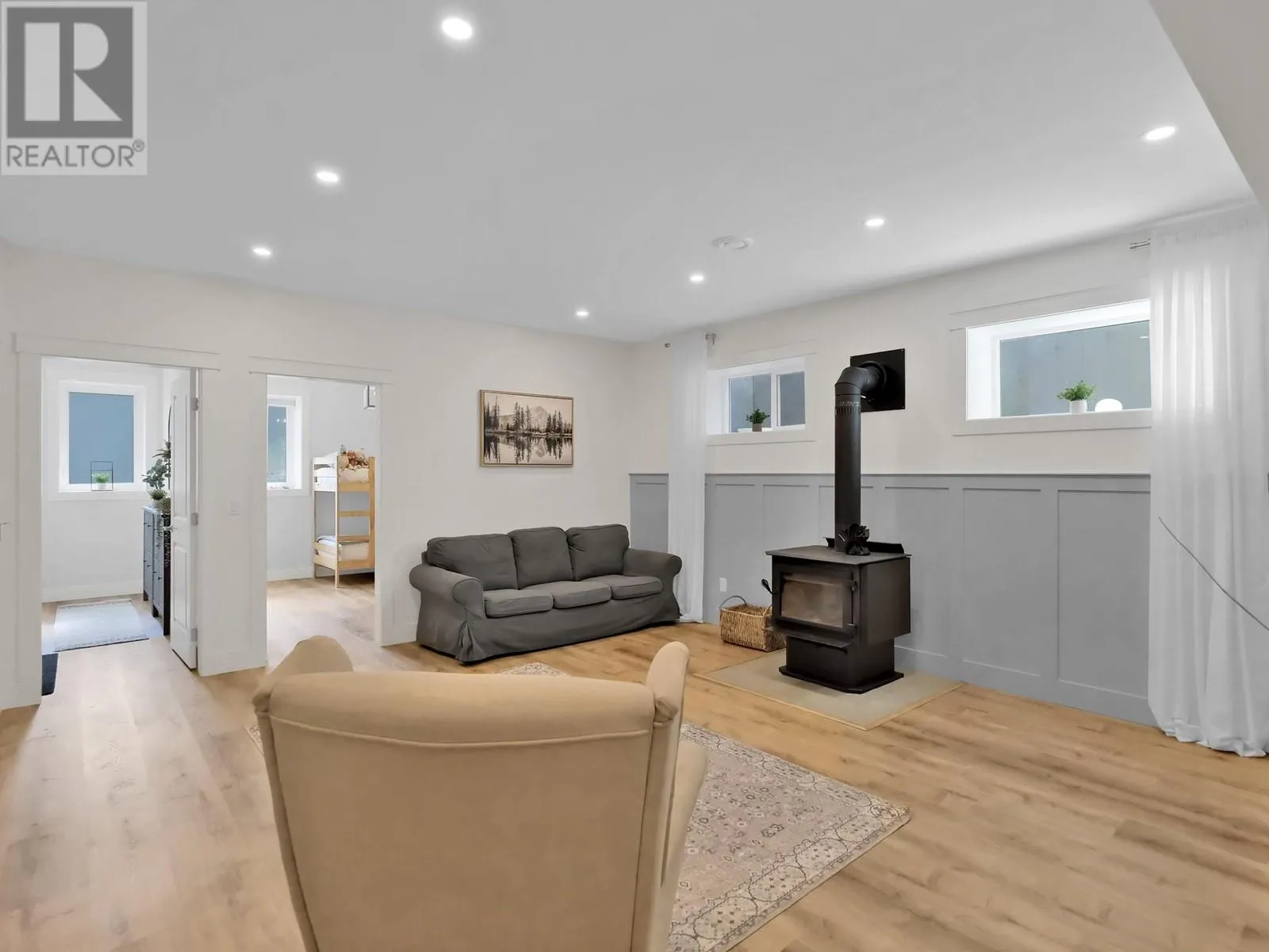 Beautiful lakeview 4 bed, 3 bath home. This bright and sunny home features a spacious open concept living area with large windows ,and hardwood floors. The beautiful kitchen has a large island, custom range hood, plenty of storage, and a walk-in pantry. The dining area leads to a covered patio and yard. Enjoy the lake view from primary suite with its own private deck. It has a luxury 5 piece ensuite with a soaker tub, double vanity, tiled shower and walk in closet. The lower level offers 2 more bedrooms, a full bathroom, a family room with a wood stove. There is also plenty of storage space and parking for your vehicles and toys. The home is situated on a dead end street in a safe and quiet neighborhood. Donât miss this opportunity to own your dream home! (id:27476)