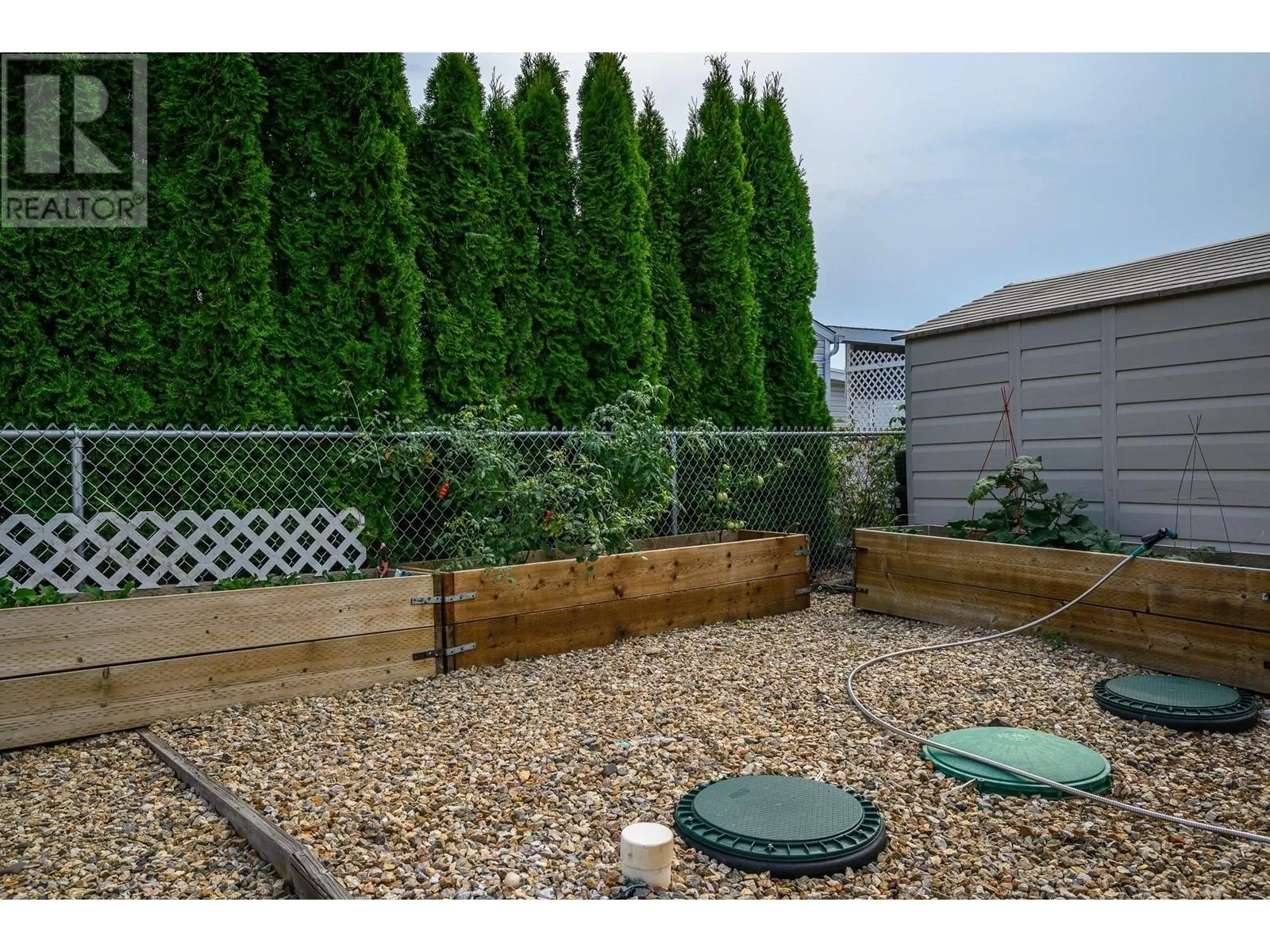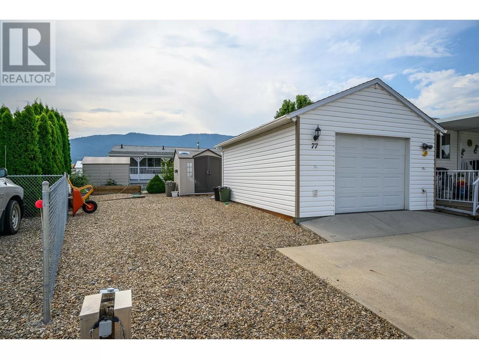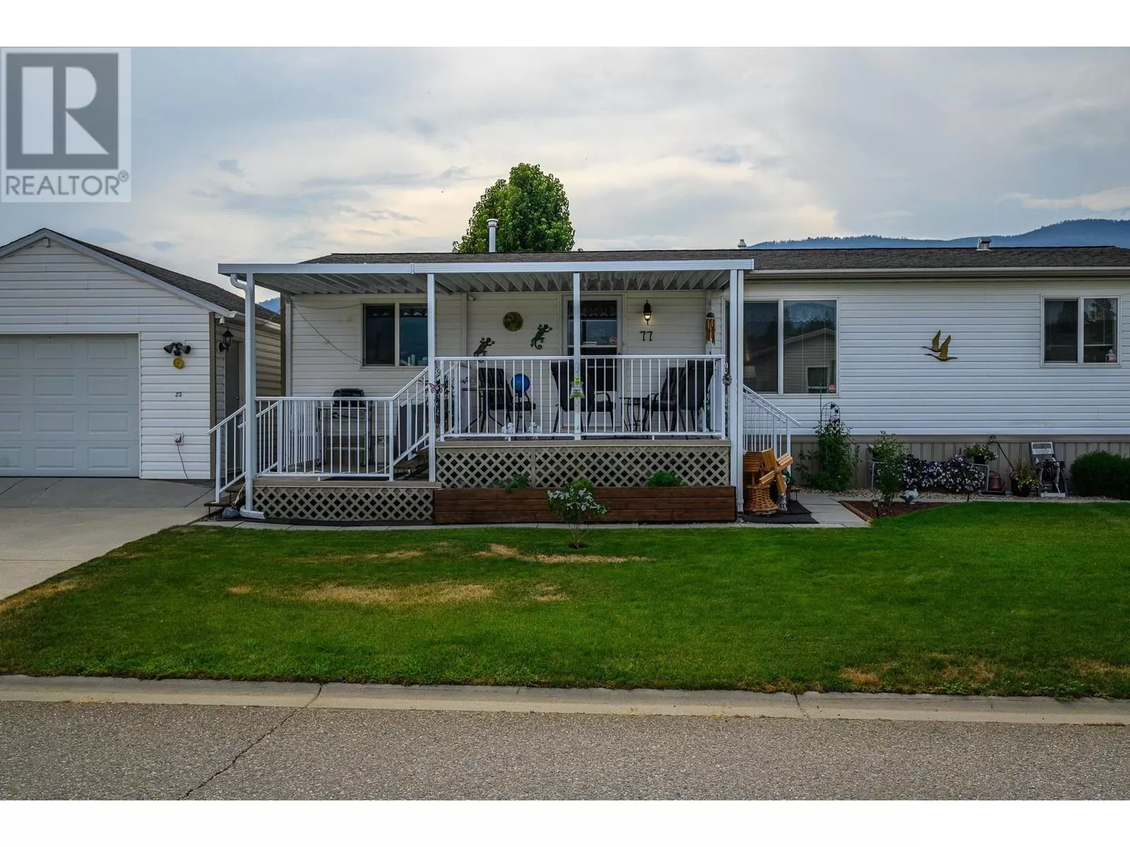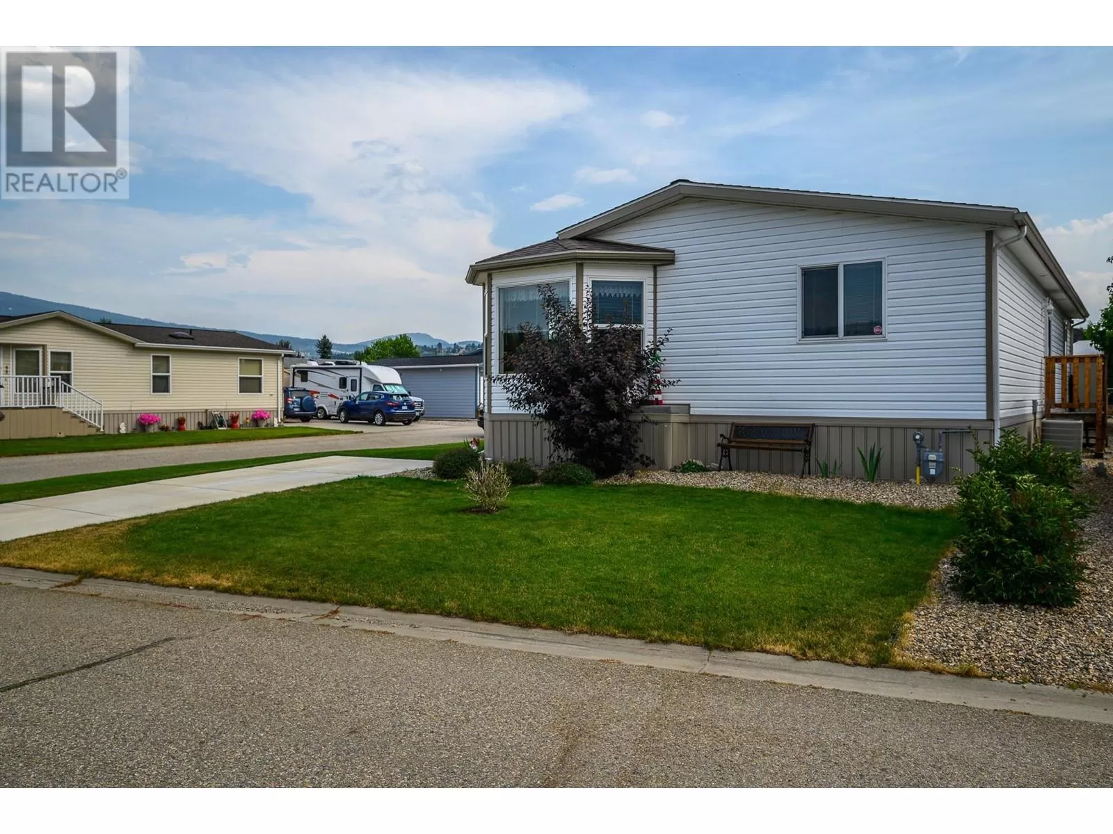 This well maintained 2010 double-wide manufactured home has a single detached garage, two paved driveways, and space for an RV or boat! With three large bedrooms, and two full bathrooms, there is plenty of space for your family. If you're looking to downsize, this unit offers plenty of room for guests inside, and entertaining on the covered, multi-level deck out front. Bring your furry friends (2 pets allowed up to 25 lbs) or kids, and enjoy the low maintenance yard. In addition to the 18X20 garage with plenty of storage space, there are two large sheds with updated flooring for better support and stability. The kitchen is open and bright, with lots of additional storage and a cozy dining nook that overlooks the quiet street. The master bedroom sits on one end of the home, providing privacy between you and your family members or guests. The ensuite bathroom includes a low barrier walk-in shower and nice finishes. Plenty of updates have been done over the years including a newer air conditioner, newer deck, cover, and back steps, garden beds, and newer flooring in living room! Coyote Crossing is an extremely well maintained park only 10 minutes to the North End of Vernon, and 2 minutes to Spallumcheen Golf Course. Pad rent of $500/mo includes water, sewer, garbage, and snow removal. Enjoy the benefit of NO property transfer tax, NO exit fees if you sell, and a registered government head lease in place until 2047 (renewal in progress). (id:27476)