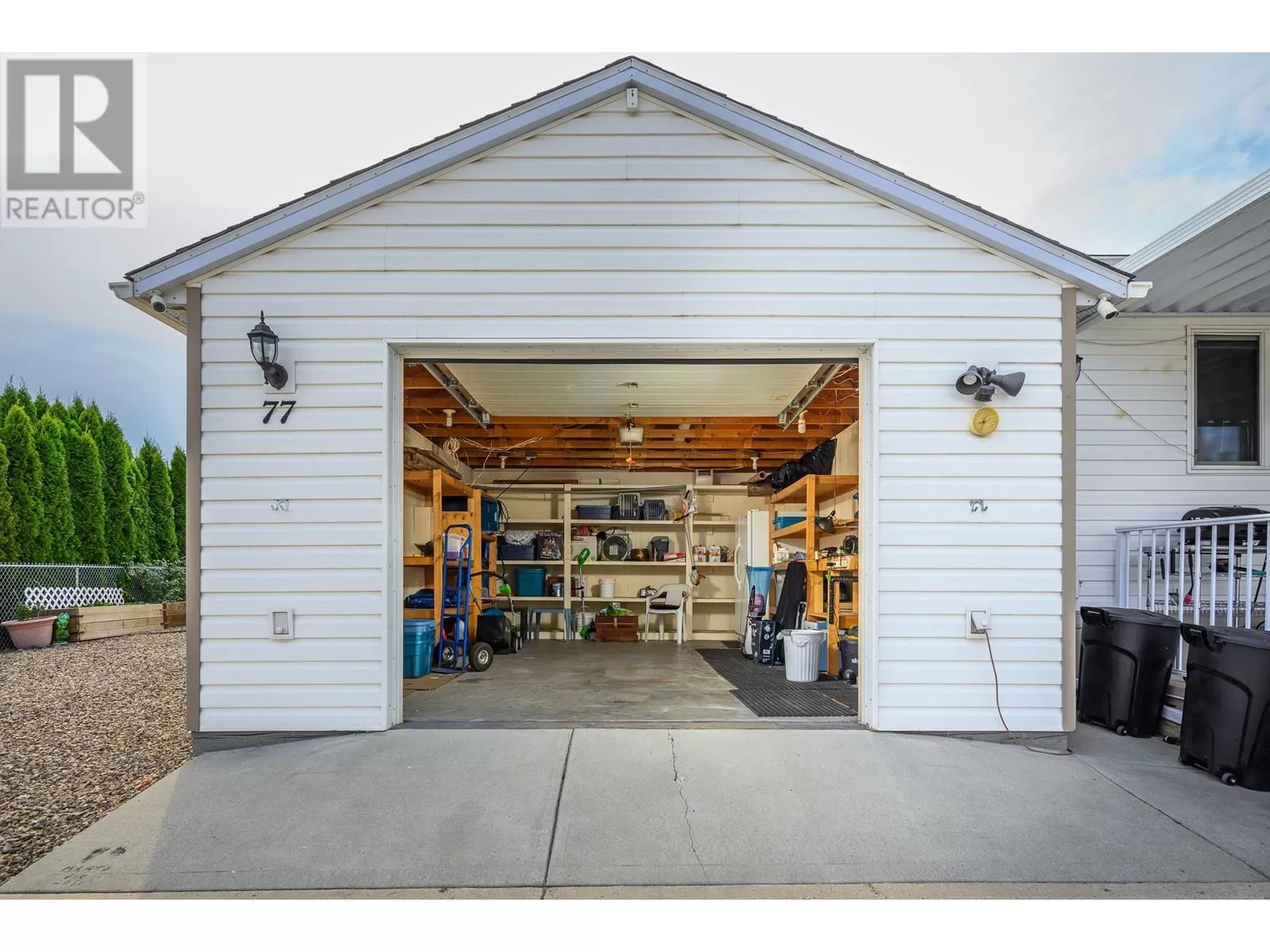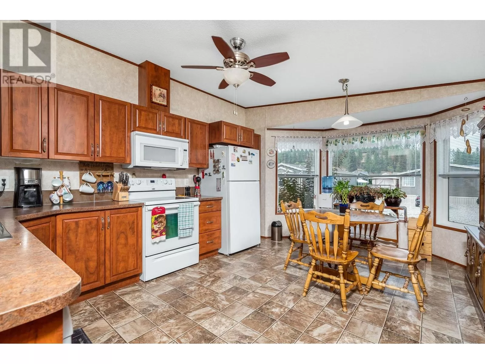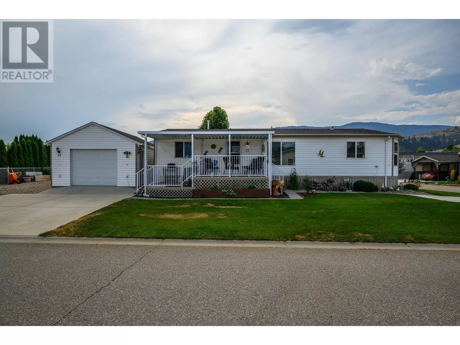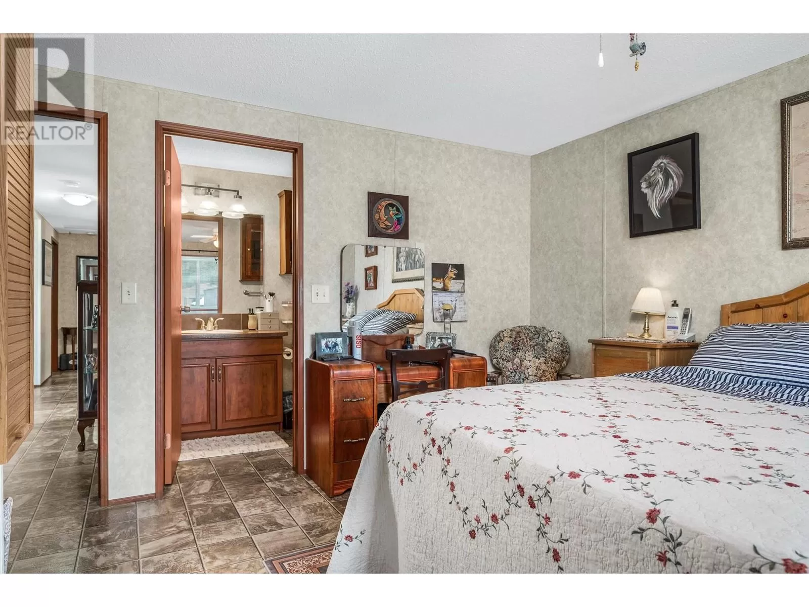 This well maintained 2010 double-wide manufactured home has a single detached garage, two paved driveways, and space for an RV or boat! With three large bedrooms, and two full bathrooms, there is plenty of space for your family. If you're looking to downsize, this unit offers plenty of room for guests inside, and entertaining on the covered, multi-level deck out front. Bring your furry friends (2 pets allowed up to 25 lbs) or kids, and enjoy the low maintenance yard. In addition to the 18X20 garage with plenty of storage space, there are two large sheds with updated flooring for better support and stability. The kitchen is open and bright, with lots of additional storage and a cozy dining nook that overlooks the quiet street. The master bedroom sits on one end of the home, providing privacy between you and your family members or guests. The ensuite bathroom includes a low barrier walk-in shower and nice finishes. Plenty of updates have been done over the years including a newer air conditioner, newer deck, cover, and back steps, garden beds, and newer flooring in living room! Coyote Crossing is an extremely well maintained park only 10 minutes to the North End of Vernon, and 2 minutes to Spallumcheen Golf Course. Pad rent of $500/mo includes water, sewer, garbage, and snow removal. Enjoy the benefit of NO property transfer tax, NO exit fees if you sell, and a registered government head lease in place until 2047 (renewal in progress). (id:27476)
