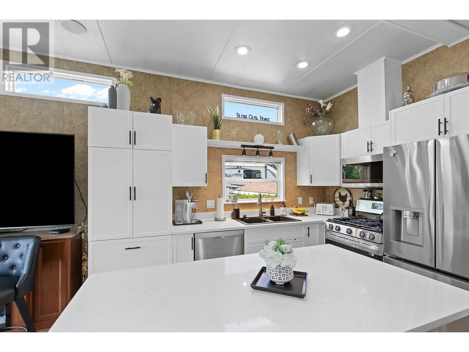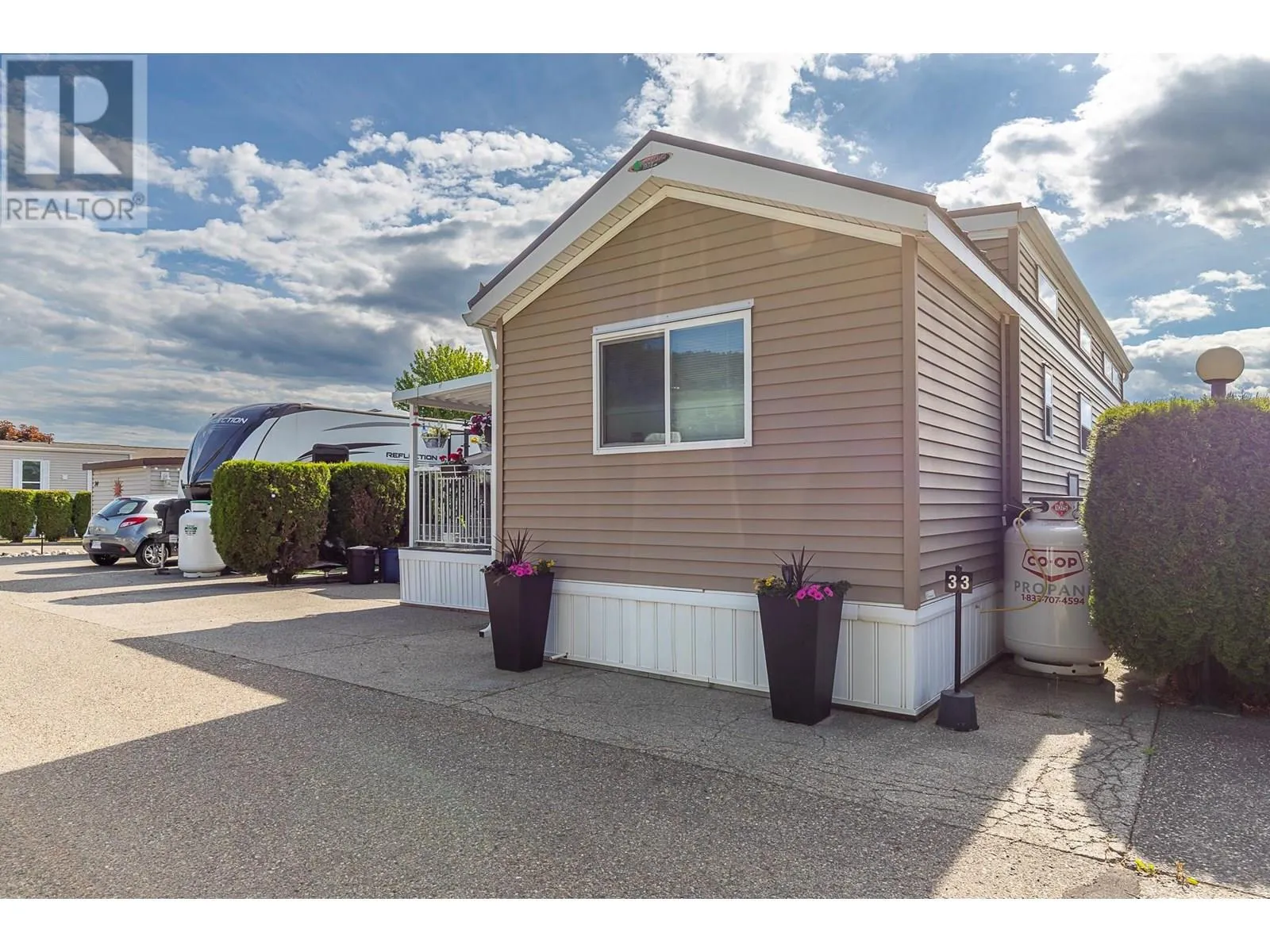 Beautifully updated recreational property, in the popular Swan Lake RV Park. This well appointed one bedroom, one bathroom park model has an open floor plan, with high vaulted ceilings in the NEW kitchen, updates include, cabinets, sink, quarts counter tops, and stainless steel appliances. Quarts counter tops in the spacious bathroom as well. Freshly painted trim throughout, make this absolutely move in ready. Sunroom now complete with insulation for added living space. Outside enjoy the NEW covered porch, and 6x9 powered shed. Swan Lake RV Resort offers a seasonal pool, hot tub, gym, community center, library, and an off leash dog area. There is also workshop for owners use. Low monthly fees include water, septic, garbage, snow removal, Pets and rentals welcome. Swan Lake RV Resort is a non strata community where you own your home and a 1/183 share of the entire community. (id:27476)
