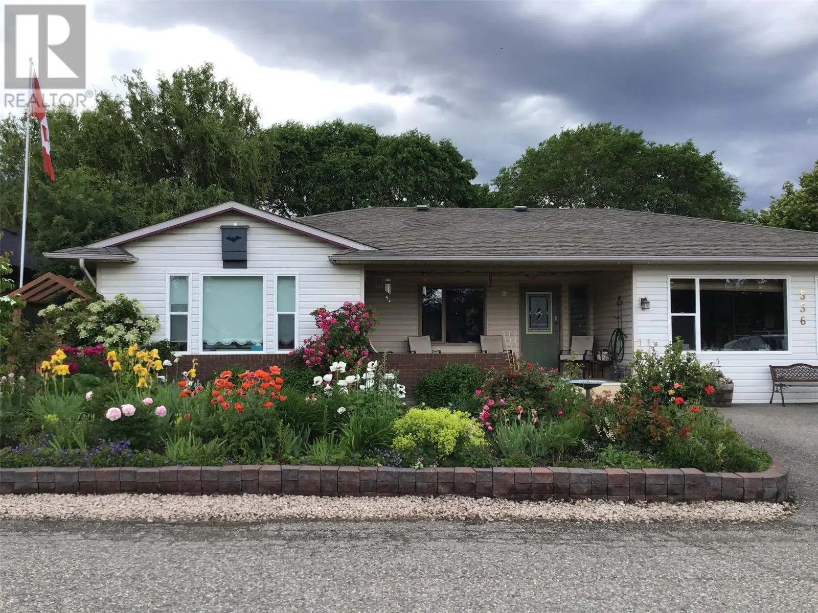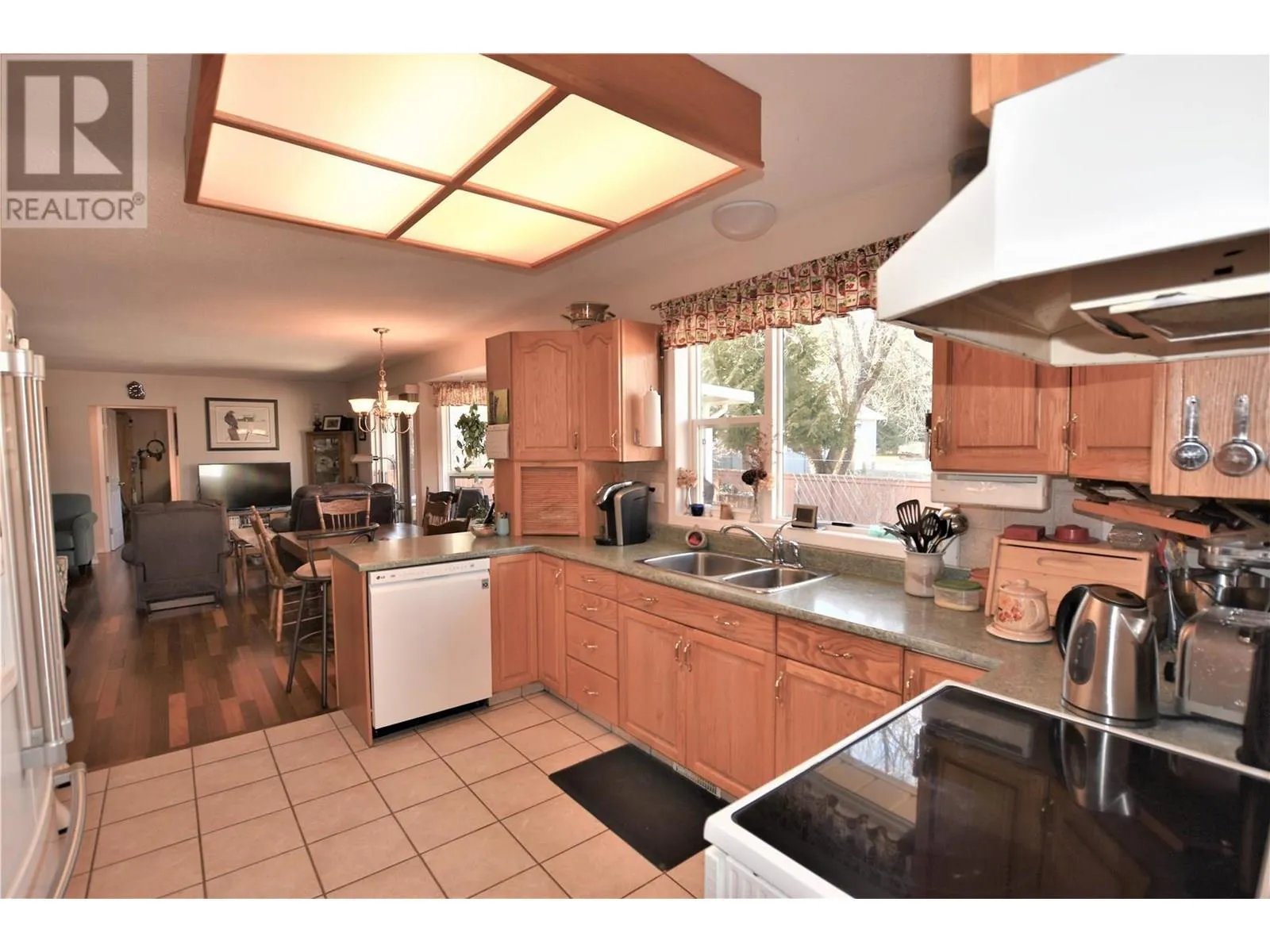 Welcome to 536-537 Loon Avenue, Parker Cove Charming 3-Bedroom Rancher on Double Lot with Mountain Views Welcome to this beautifully maintained 3-bedroom, 2-bathroom rancher located on a spacious double lot in the serene lakeside community of Parker Cove. This inviting home features an open-concept main living area adorned with gleaming hardwood floors, while the kitchen, entryways, and bathrooms are finished with durable ceramic tile. The kitchen offers ample storage with abundant oak cabinetry and seamlessly flows into the dining and living areasâperfect for entertaining. The generously sized 21x21 family room boasts a cozy pellet stove and large windows that flood the space with natural light. The primary bedroom is a relaxing retreat with dual closets and a 3-piece en-suite. Step outside to enjoy your morning coffee on the covered front patio, overlooking dedicated green space and beautiful mountain viewsâa perfect spot to relax or chat with neighbors. Additional highlights include: Fully landscaped and fenced backyard Covered back patio and fish pond RV parking with 30-amp power Storage shed and upgraded attic insulation 5-foot crawl space for added storage 3-year-old hot water tank Poly B plumbing has been replaced Gardeners will appreciate the mature landscaping and room to grow. This home includes a registered lease until 2043, with a current lease amount of $5,760.04 for the double lot. Residents also enjoy shared access to over 2,000 feet of prime Okanagan lakefrontâideal for summer fun and relaxation. Donât miss the chance to live in this peaceful lakeside communityâschedule your private viewing today! (id:27476)