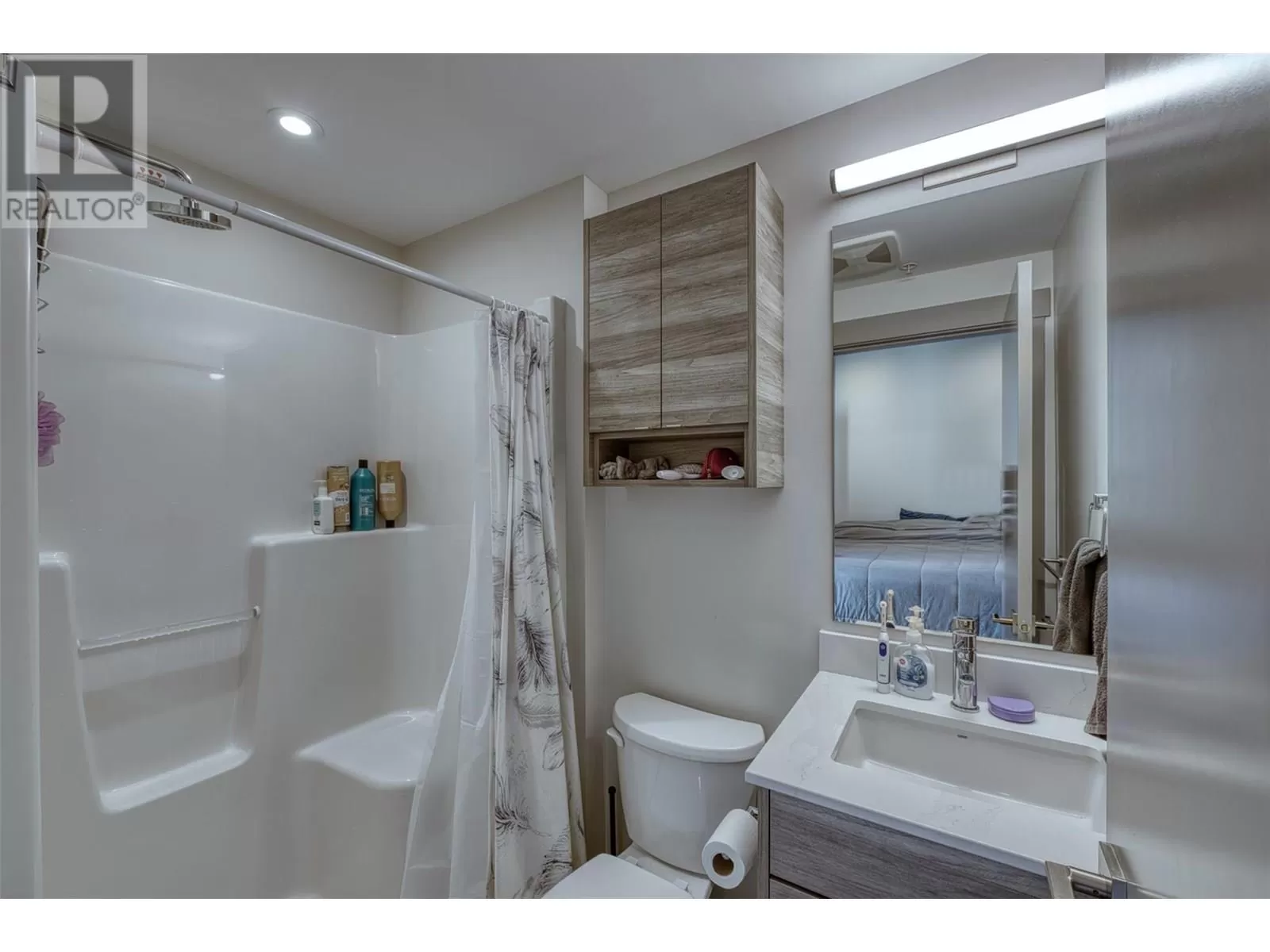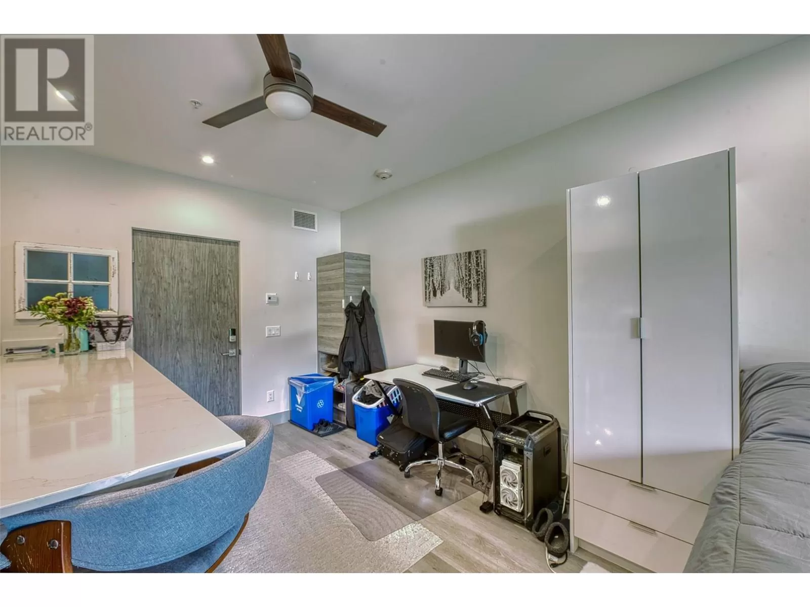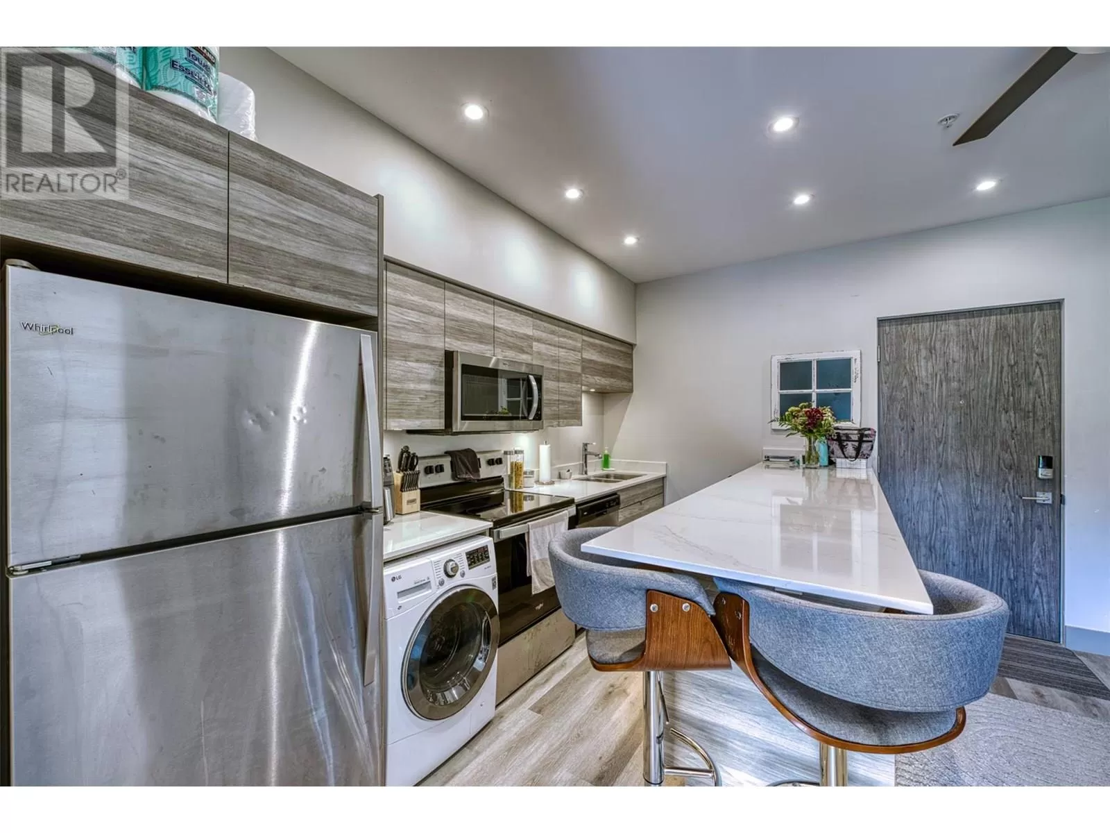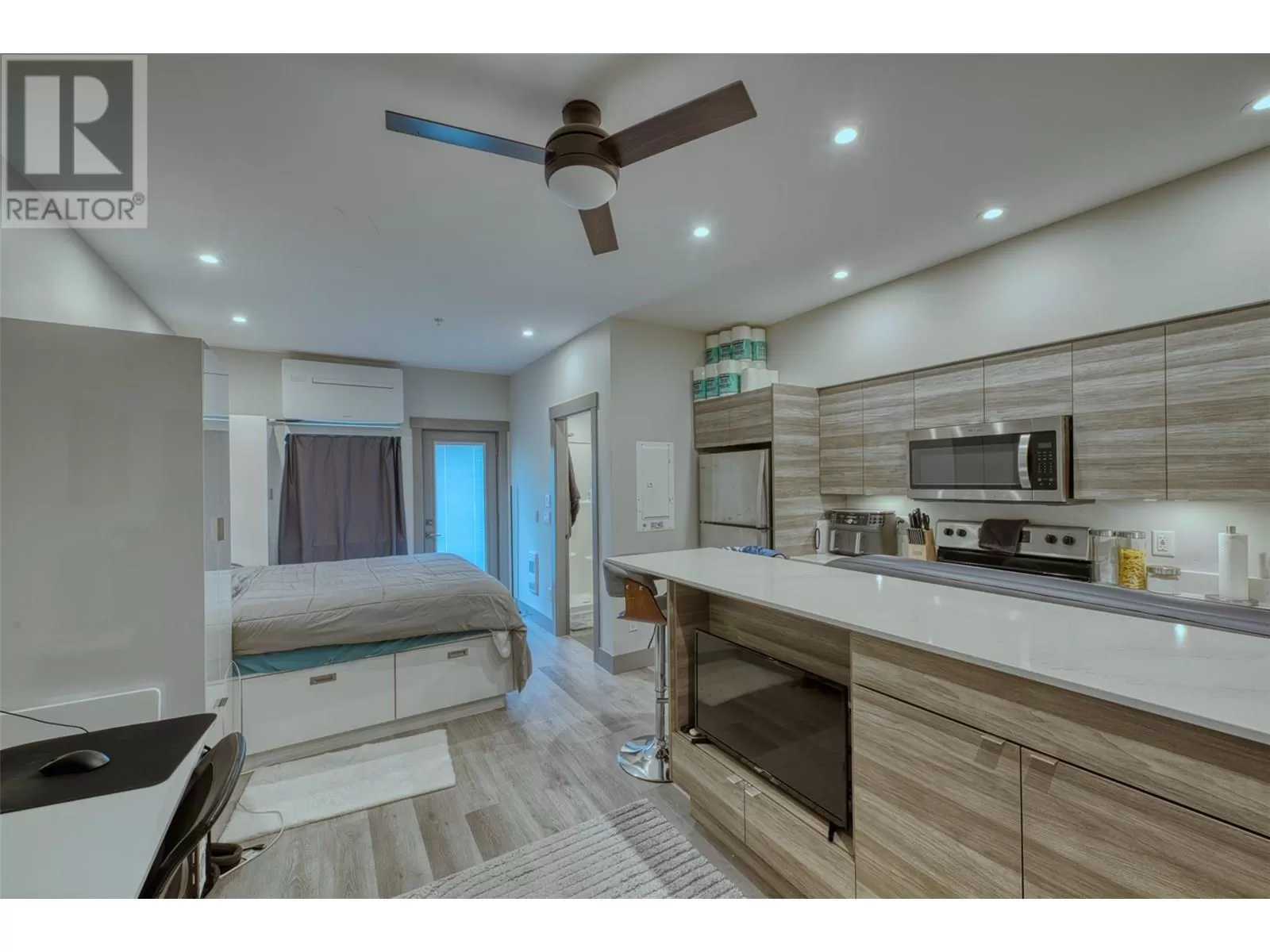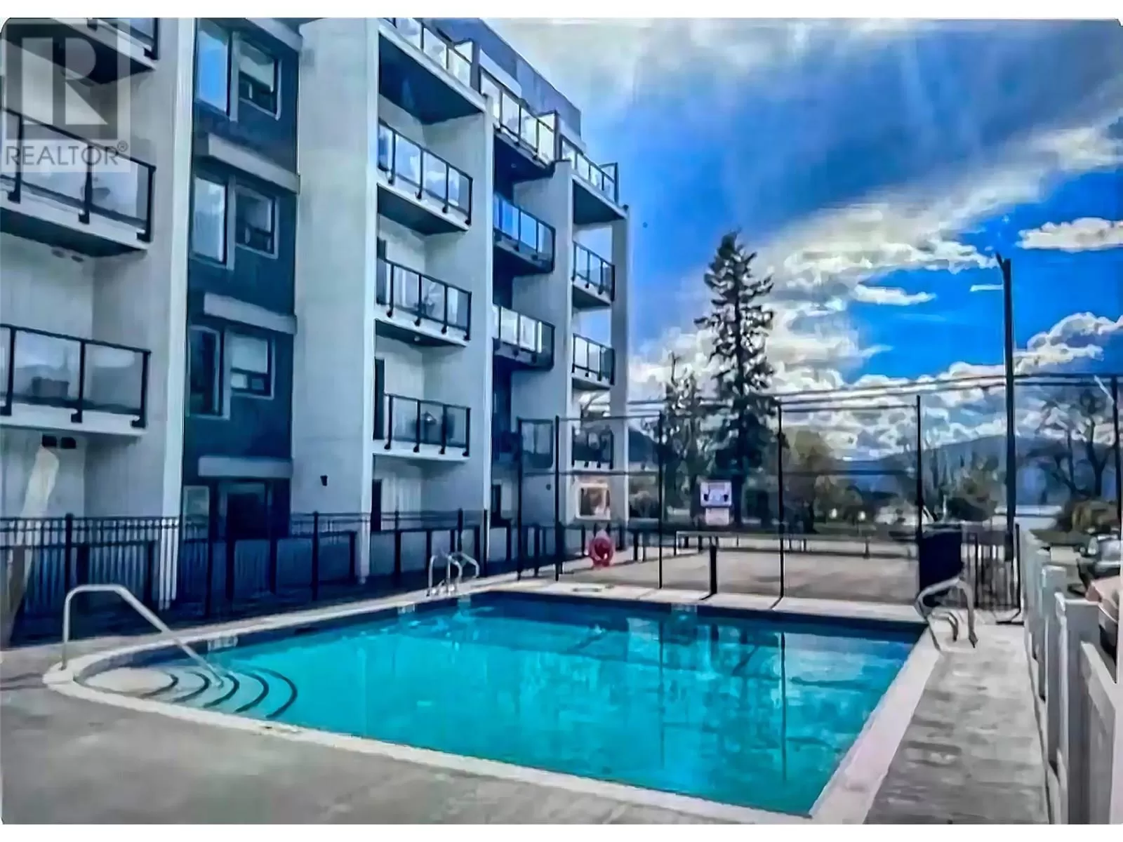 Welcome to VITA, a collection of modern studio homes just steps away from Okanagan Lake and minutes to downtown Vernon. This home offers year round comfort for full time living, or great income potential for the savvy investor! This one has a PATIO and a VIEW! Hard to find in this terrific building, this wonderful unit has a peek-a-boo lake view from the covered patio. Modern finishings throughout the home, offering a full kitchen with plenty of counter space to work with, laundry (as well as shared laundry on the 2nd floor), heat pump with A/C for the hot summer days and so much more! VITA offers comfortable living mere steps from Okanagan Lake! With an outdoor pool, pickleball court, common area with BBQ's as well as a gym, this building offers an uncomplicated lifestyle with all the amenities at your fingertips! This home comes with 1 parking stall and a storage locker, and is PET FRIENDLY. On-site complimentary EV charging stations (id:27476)