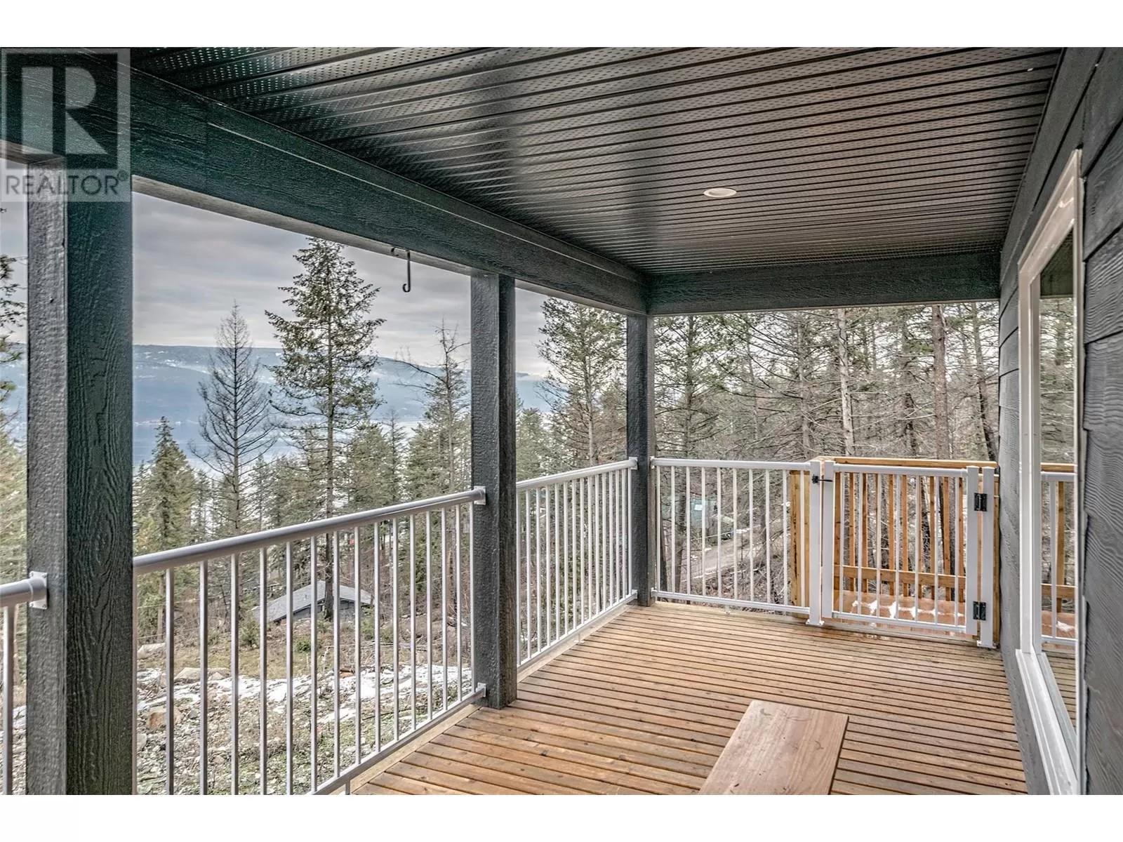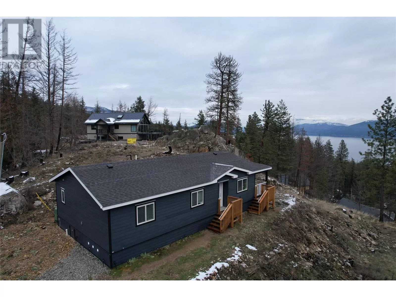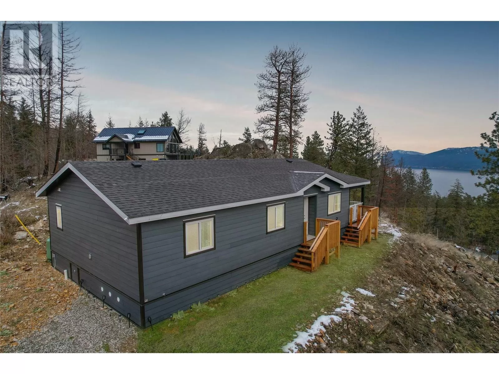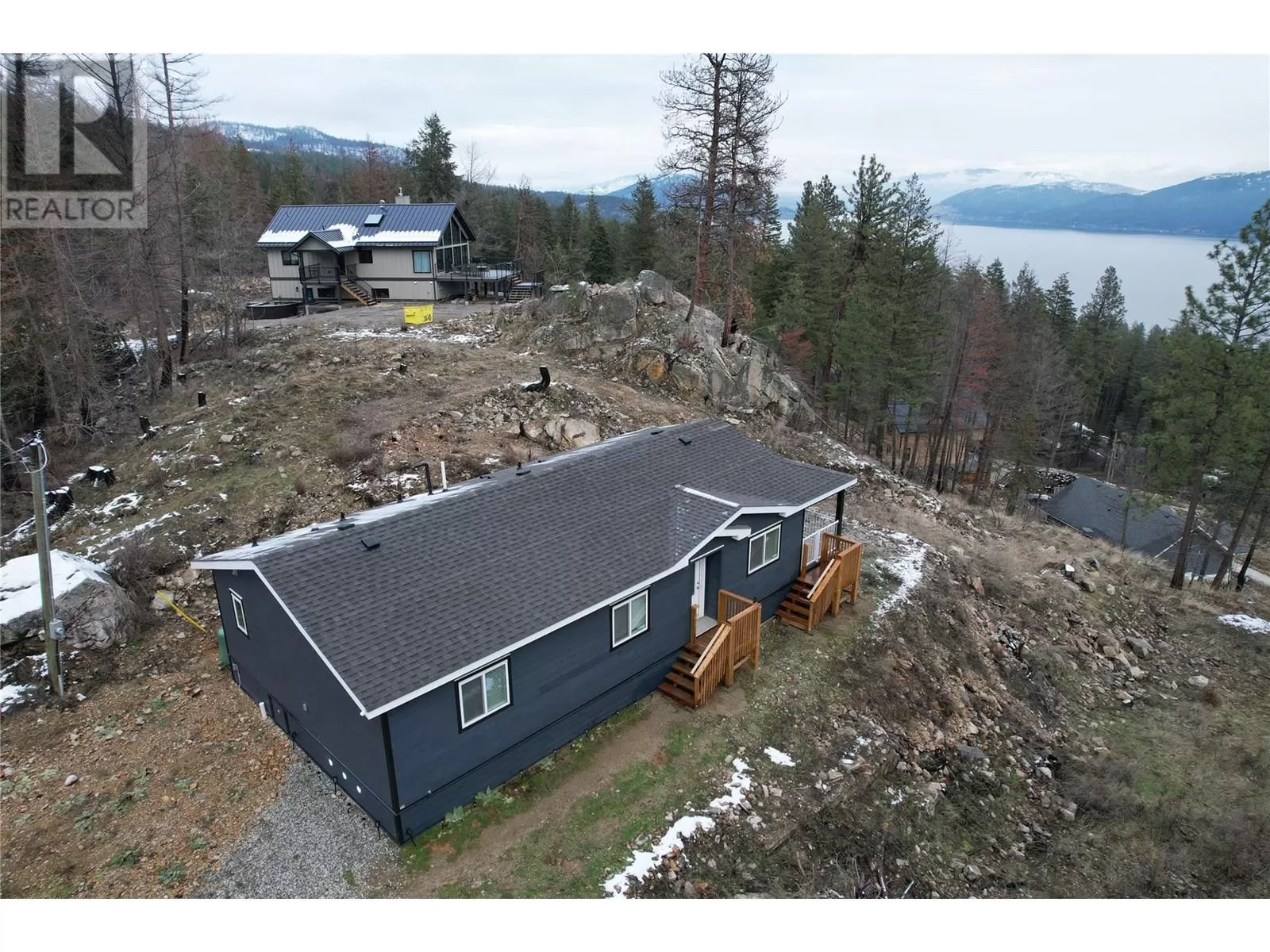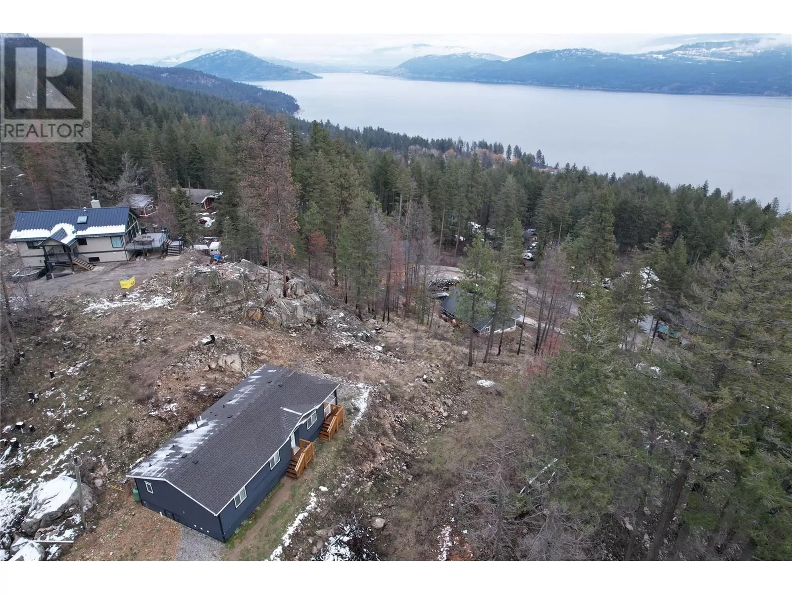 This 2 bedroom plus den, 2 bathroom, one story home was newly built in 2022. It features an open floor plan with the kitchen, living and eating space combined and access to the covered deck from the dining room. Rounding out the house is a handy laundry/storage room and a flexible den space. Enjoy some privacy from the covered deck and take in some incredible views of Okanagan Lake. The home sits on just under one acre of land that is low maintenance and offers great outdoor adventures right in your backyard. The home is an approximate 30-minute drive to Vernon and just 12 minutes to Fintry Provincial Park. (id:27476)