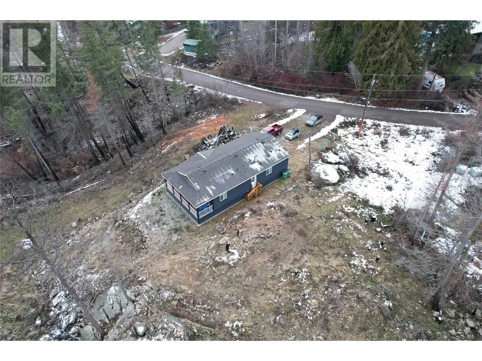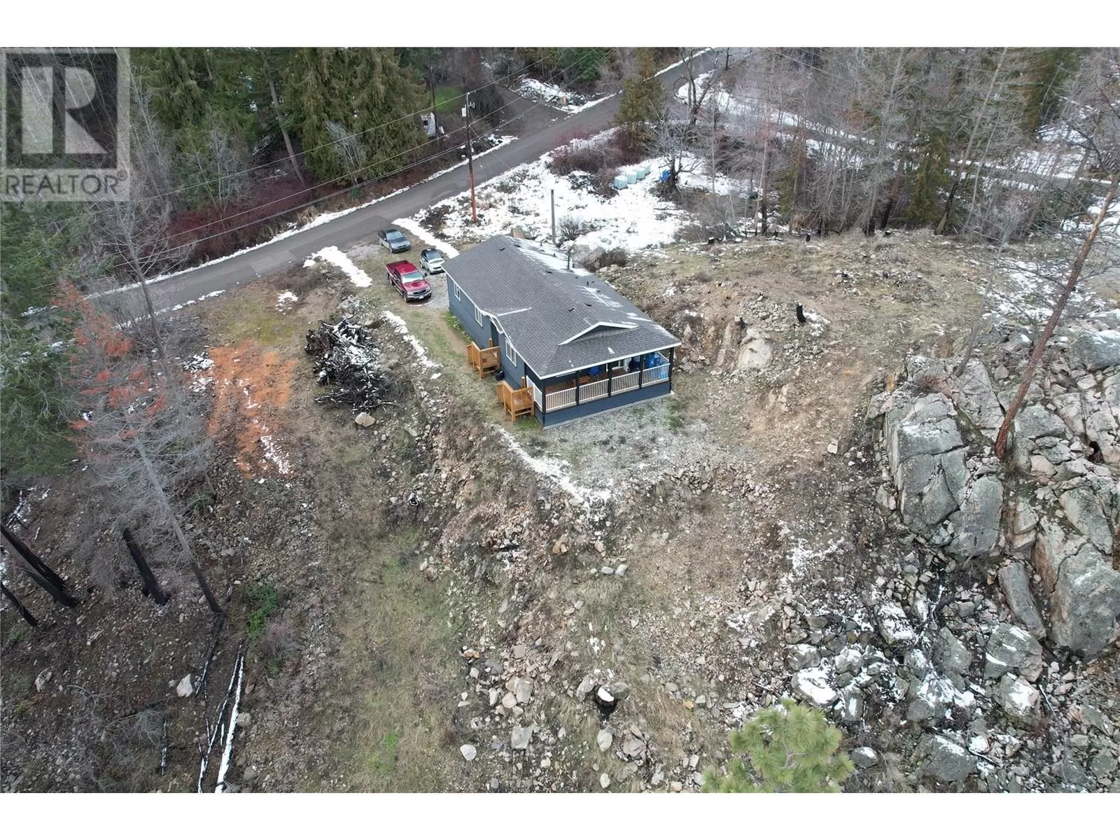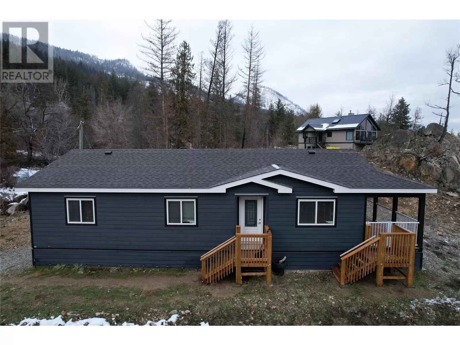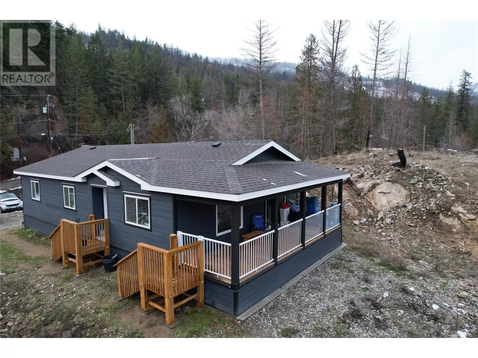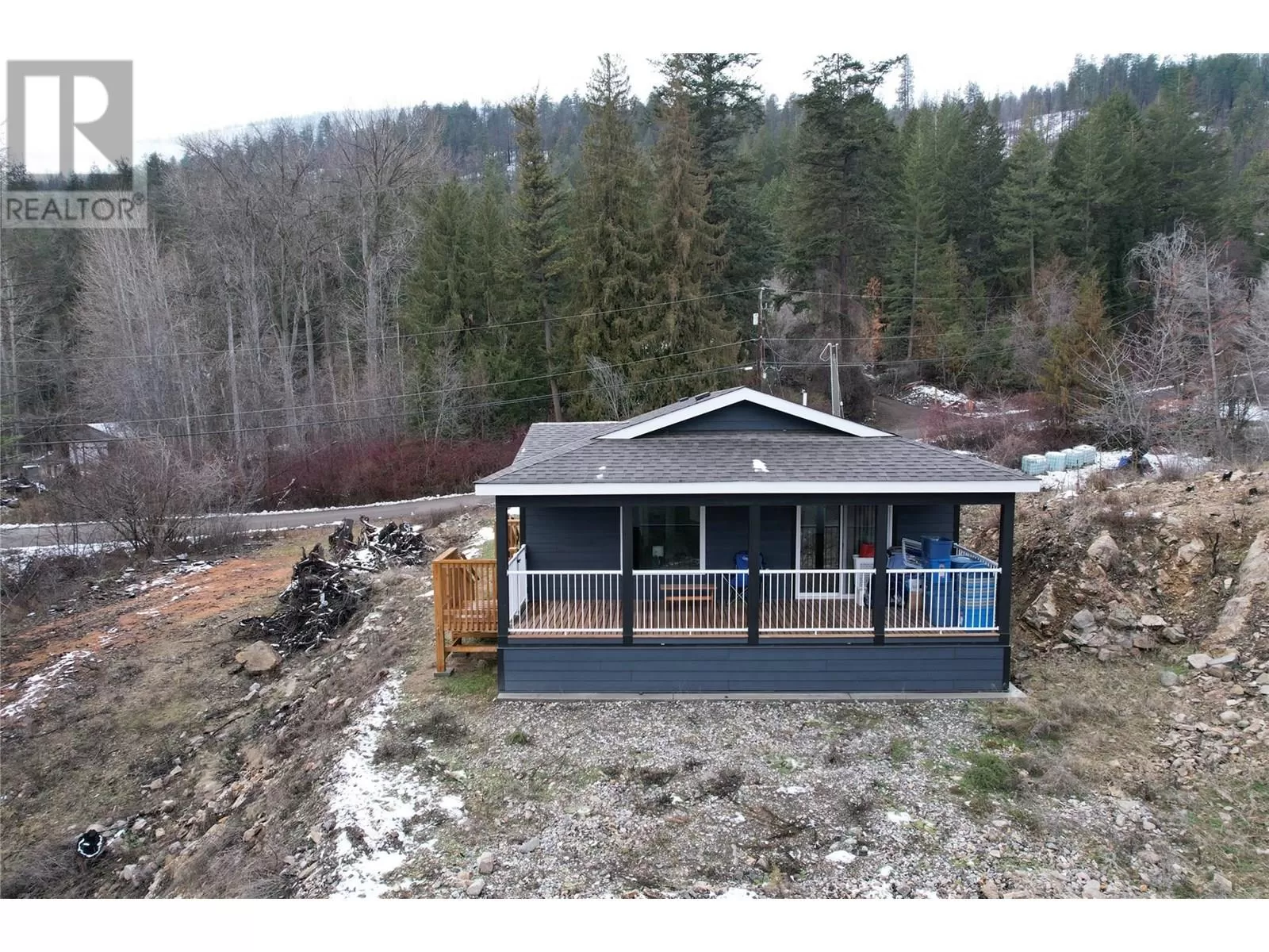 This 2 bedroom plus den, 2 bathroom, one story home was newly built in 2022. It features an open floor plan with the kitchen, living and eating space combined and access to the covered deck from the dining room. Rounding out the house is a handy laundry/storage room and a flexible den space. Enjoy some privacy from the covered deck and take in some incredible views of Okanagan Lake. The home sits on just under one acre of land that is low maintenance and offers great outdoor adventures right in your backyard. The home is an approximate 30-minute drive to Vernon and just 12 minutes to Fintry Provincial Park. (id:27476)