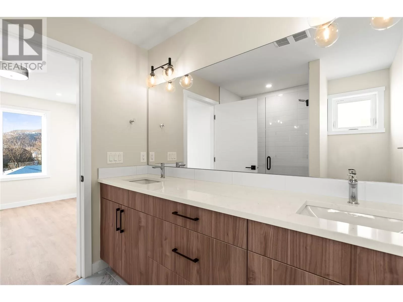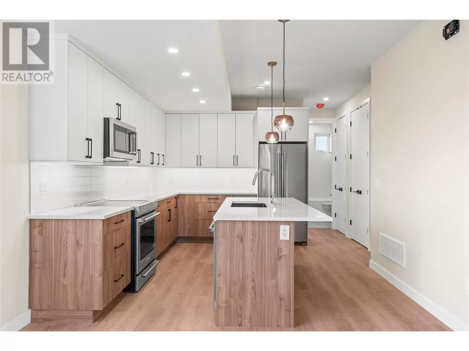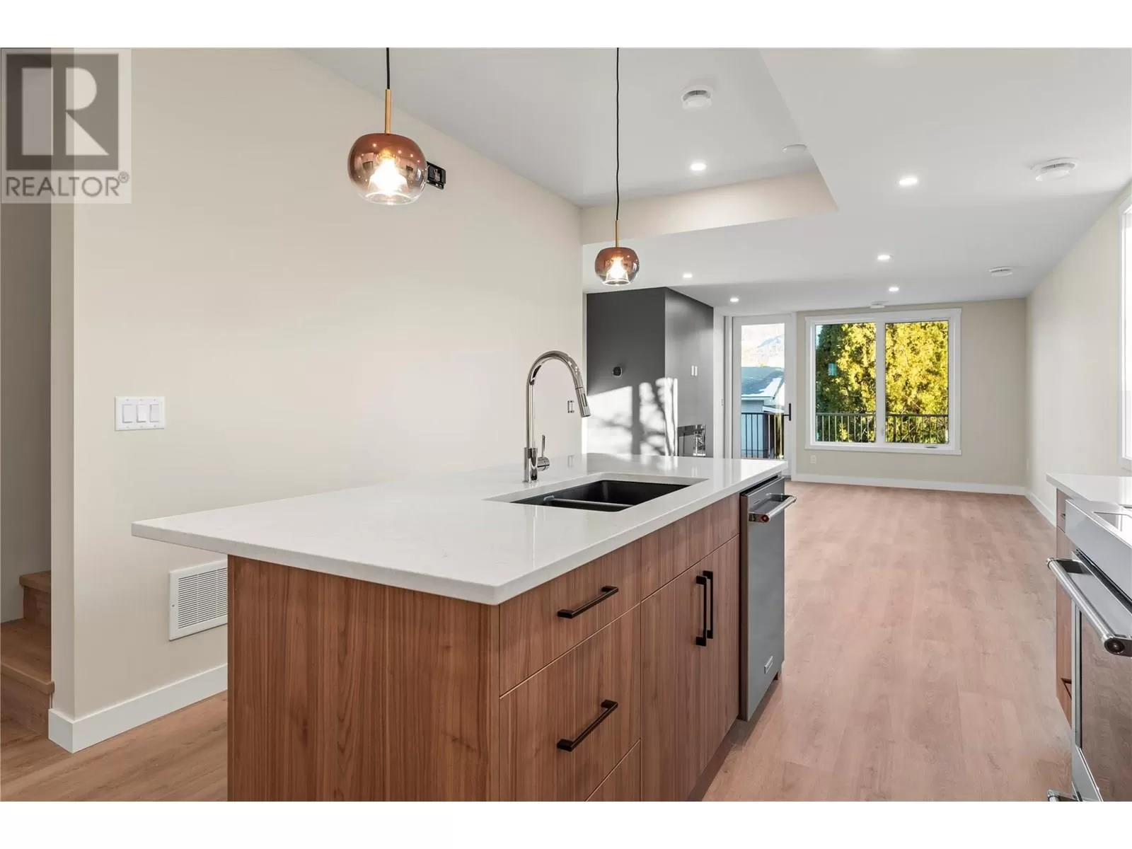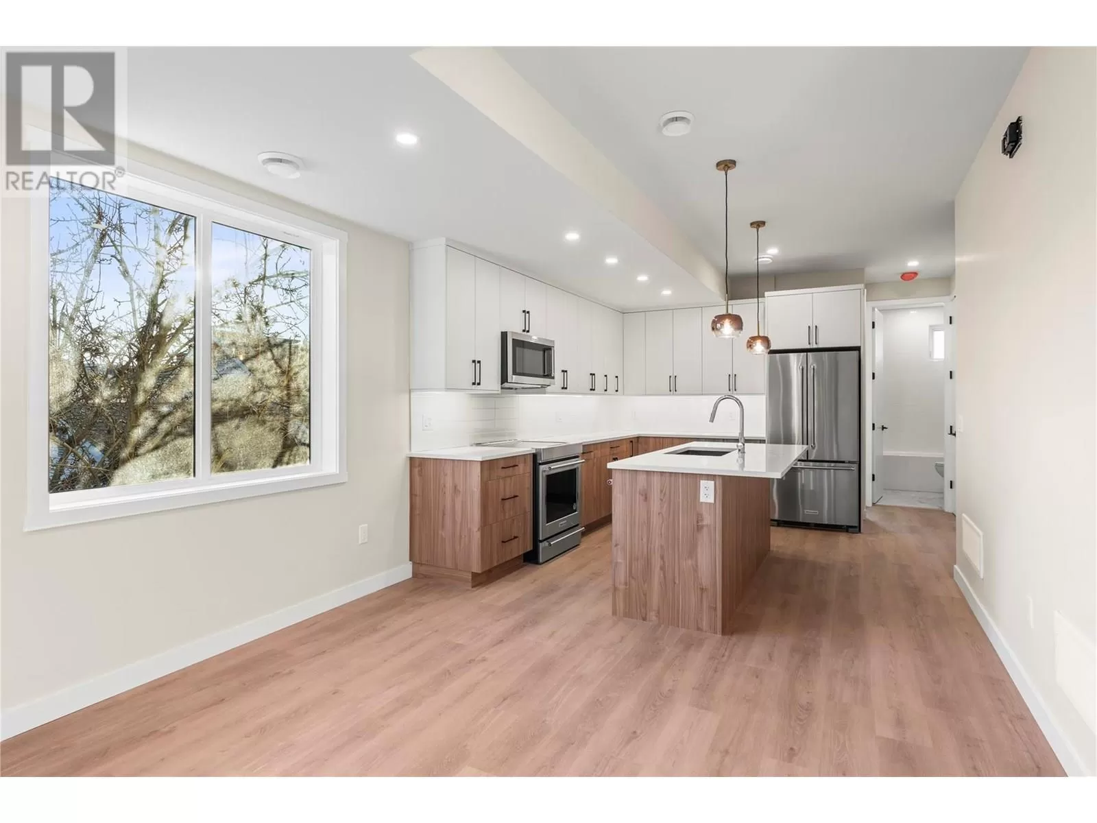 This exceptional NEW bright end-unit townhome in the heart of Vernon is designed for modern living and urban convenience â just minutes from downtown, parks, schools, and Vernonâs recreation centre. Perfect for first-time home buyers, professionals, and young families, this thoughtfully built home offers three spacious bedrooms + a versatile flex room and three beautifully appointed bathrooms. The bright, open-concept main level features a chefâs kitchen with custom woodwork, quartz countertops, and stainless steel KitchenAid appliances â ideal for casual family meals or entertaining friends. The flex room on this level is perfect for a home office, gym, playroom, or guest space. Upstairs, the primary suite will impress with its huge walk-in closet and spa-like ensuite with dual vanities â a true retreat. Two additional bedrooms and a full bath provide ample space for kids, guests, or hobbies. Your private rooftop patio is perfect for relaxing or entertaining while soaking in the sweeping city and mountain views. With its energy-efficient design built to Step Code 3, youâll enjoy lower utility bills, and a spacious tandem garage offers parking for two and extra storage. This one-of-a-kind home is close to everything Vernon has to offer â and is move-in ready. Developer pricing â donât miss out. Book your private showing today! First-time home buyers, ask about the GST exemption and Property Transfer Tax exemption to maximize your savings on this brand-new home! (id:27476)