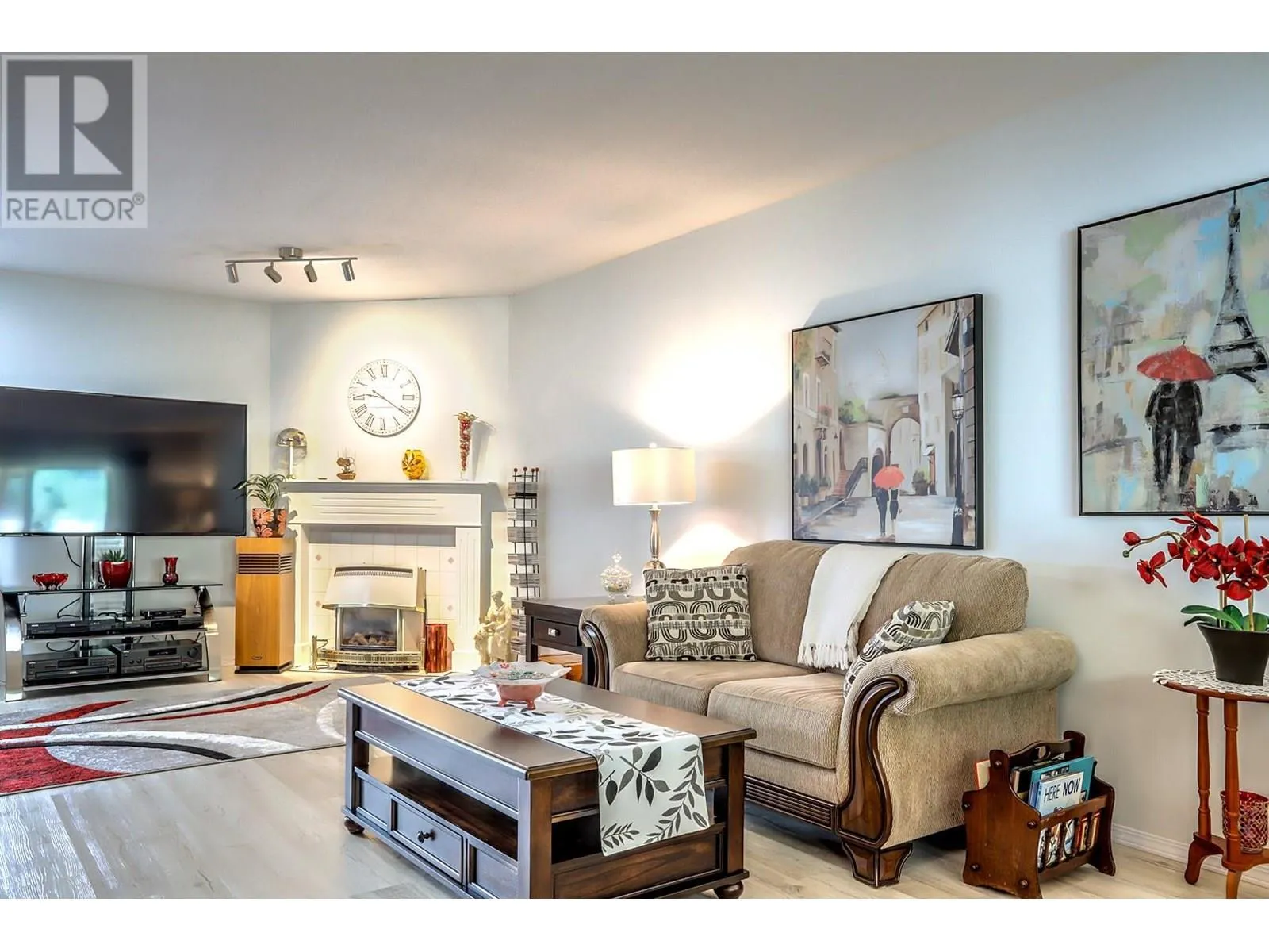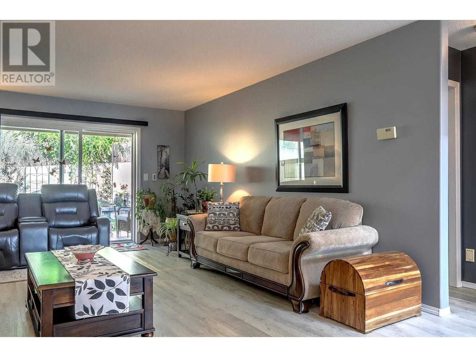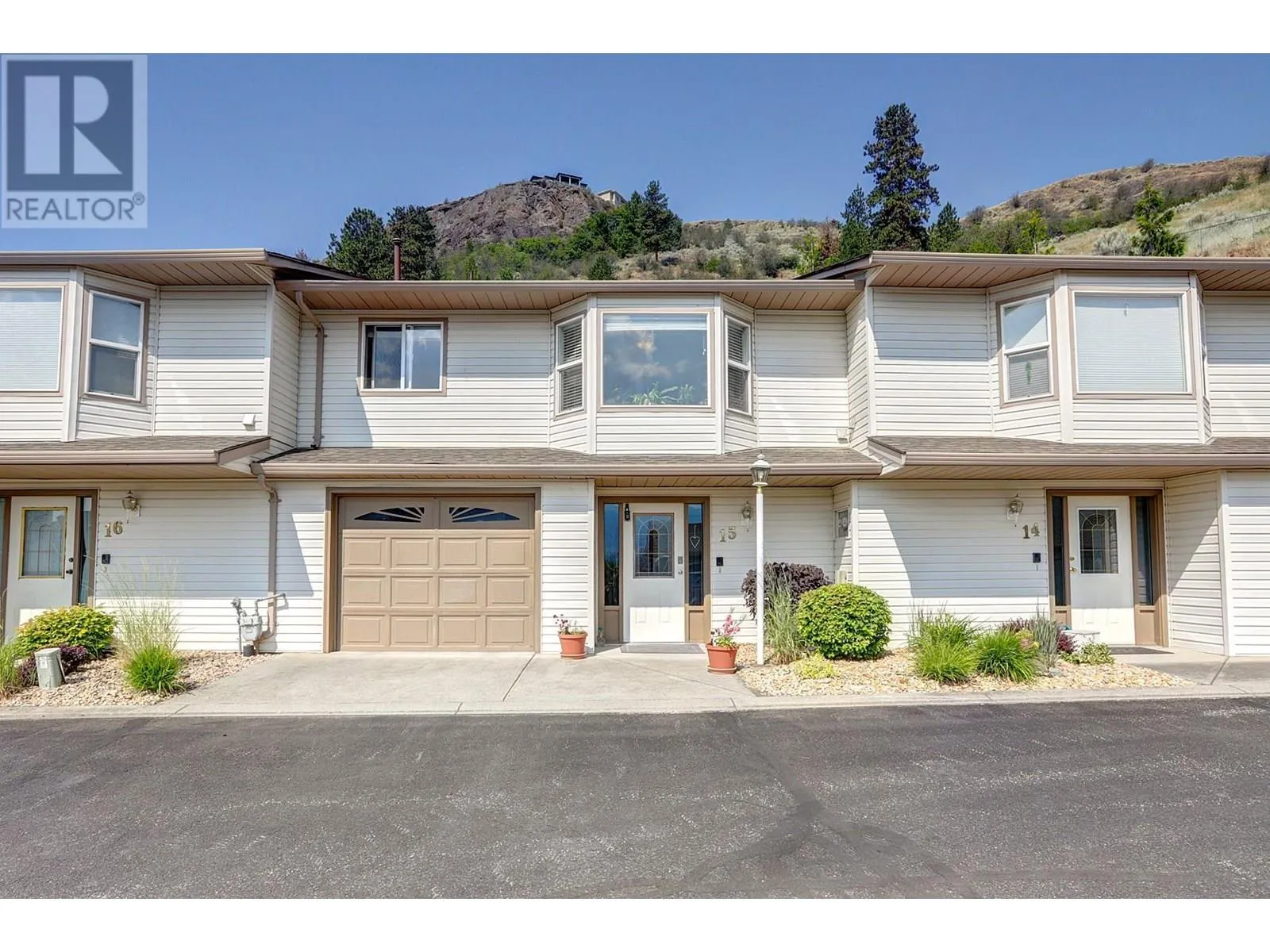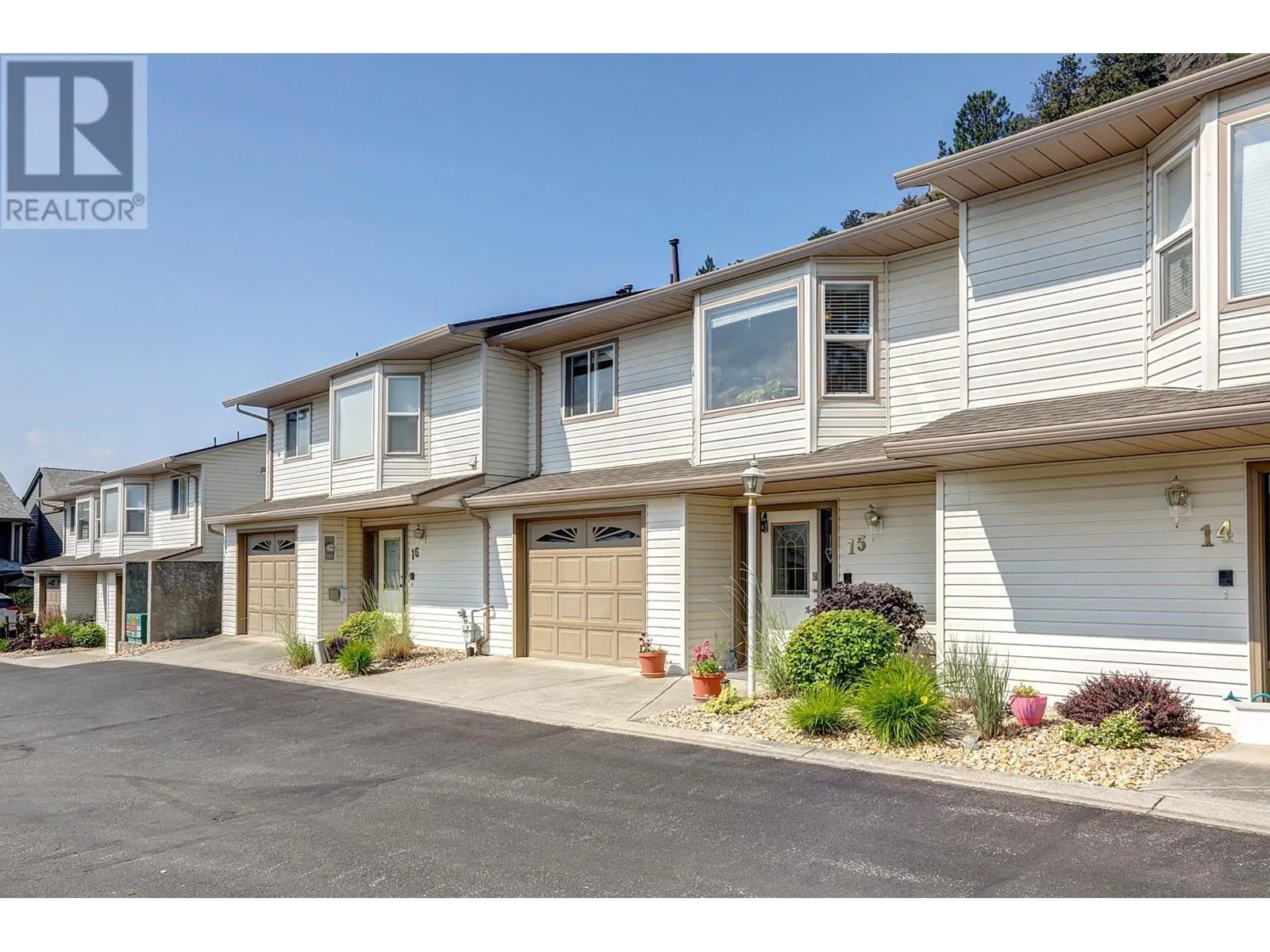 Unit 15 in the Landsdowne Complex is one of the few units that offers a garage (not just a carport). When you enter the main entrance you have your garage with plenty of built in storage, a 4 piece bathroom, second bedroom and a large den/office area as well. Upstairs the stairs you enter into the middle of the main living area. The kitchen and dinning area both take advantage of the beautiful view looking East over the city and both Highway 6 and Silver Star. Newer appliances and updates to the backsplash and lighting give the unit a modern and updated feel. The living room has a gas fireplace at one end and big and bright patio doors on the other leading out to a magical little green space. The outdoor area has both covered and uncovered area with tiled floors that are heated under the covered portion of the patio! This is a one owner home that has been well cared for and maintained with many updates over the years. The most recent include the new appliances (2022), paint, vinyl flooring, carpet downstairs bedroom, hall and stairs. Some new lighting, switches and bathroom counters to name a few. Please review bylaws for full pet restrictions but generally it is one dog or one cat, not to exceed 15"" at the shoulder. Some exceptions apply as listed in the bylaws. 55+ Age Restriction. (id:27476)