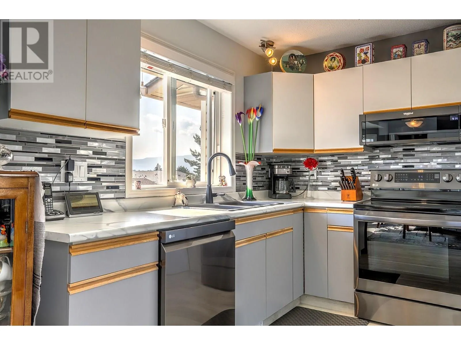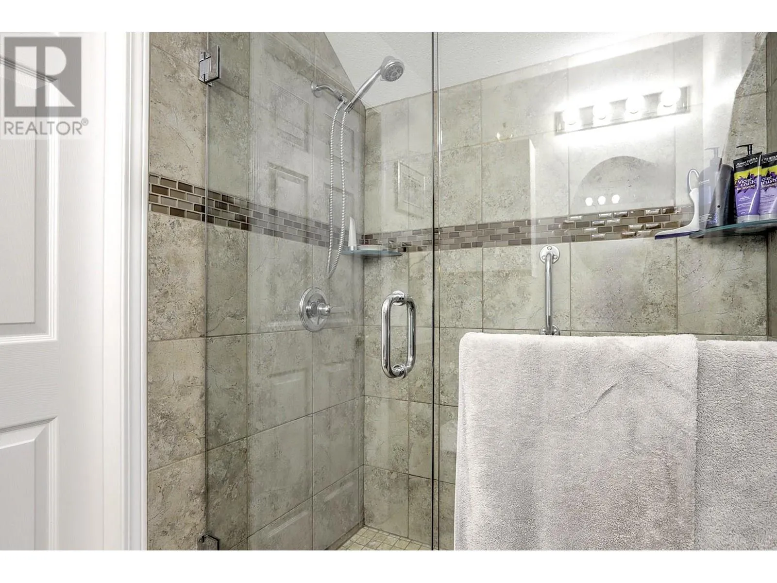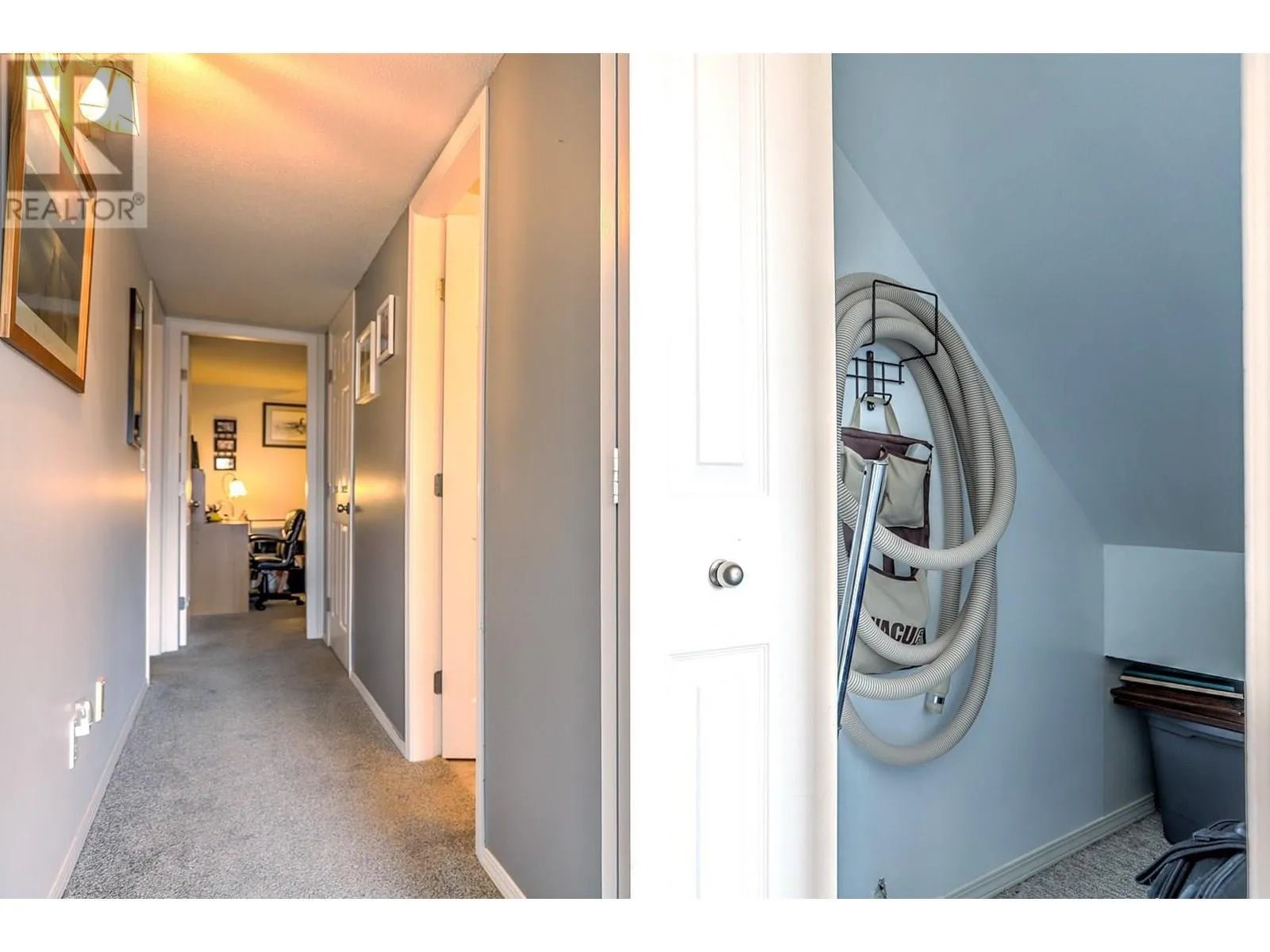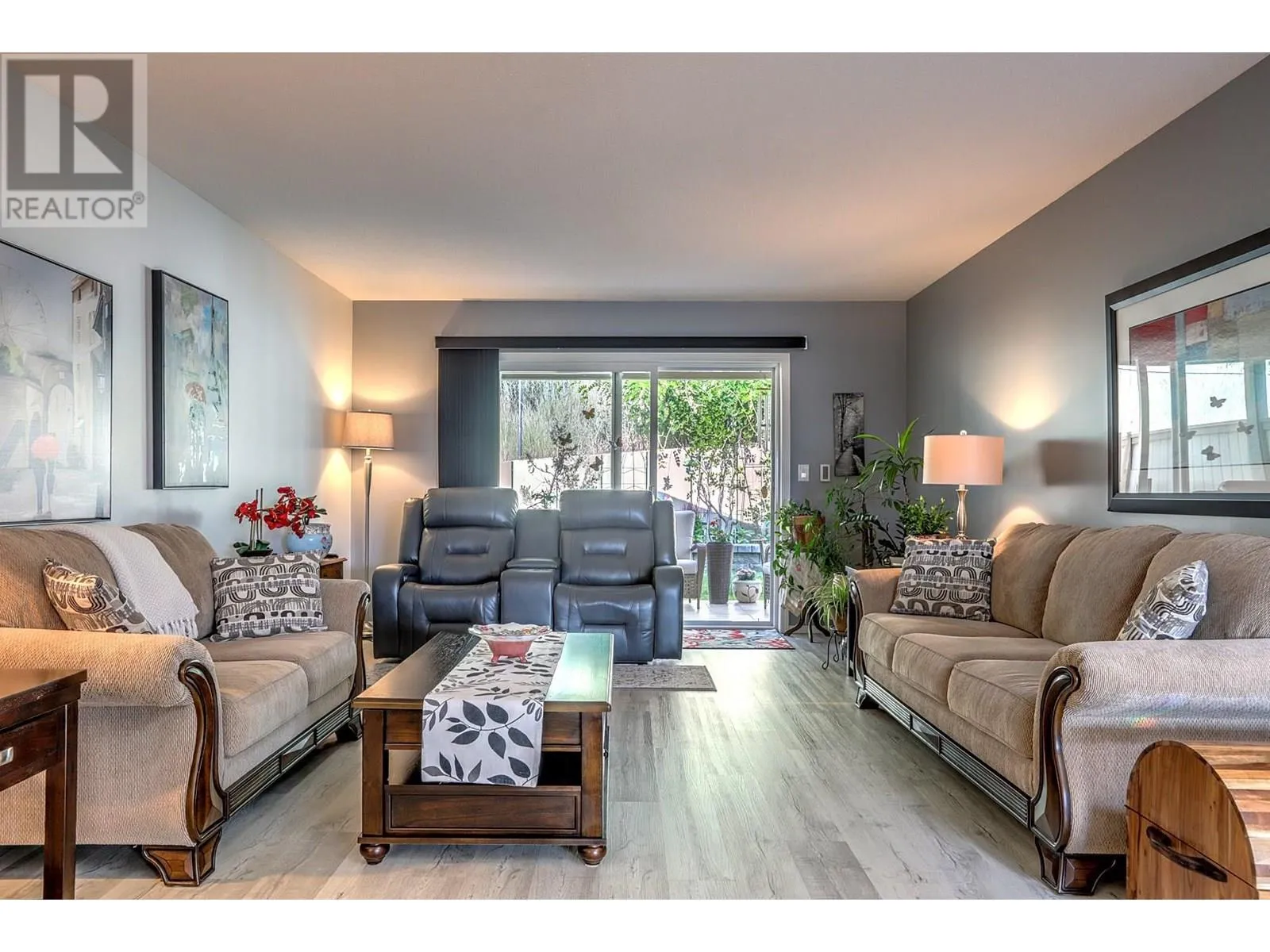 Unit 15 in the Landsdowne Complex is one of the few units that offers a garage (not just a carport). When you enter the main entrance you have your garage with plenty of built in storage, a 4 piece bathroom, second bedroom and a large den/office area as well. Upstairs the stairs you enter into the middle of the main living area. The kitchen and dinning area both take advantage of the beautiful view looking East over the city and both Highway 6 and Silver Star. Newer appliances and updates to the backsplash and lighting give the unit a modern and updated feel. The living room has a gas fireplace at one end and big and bright patio doors on the other leading out to a magical little green space. The outdoor area has both covered and uncovered area with tiled floors that are heated under the covered portion of the patio! This is a one owner home that has been well cared for and maintained with many updates over the years. The most recent include the new appliances (2022), paint, vinyl flooring, carpet downstairs bedroom, hall and stairs. Some new lighting, switches and bathroom counters to name a few. Please review bylaws for full pet restrictions but generally it is one dog or one cat, not to exceed 15"" at the shoulder. Some exceptions apply as listed in the bylaws. 55+ Age Restriction. (id:27476)