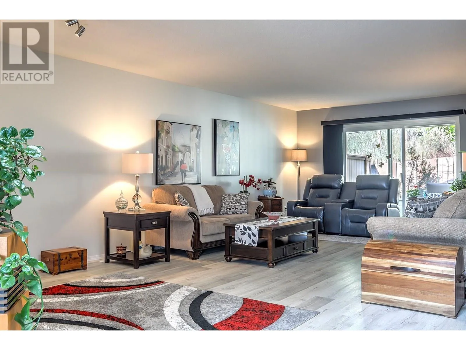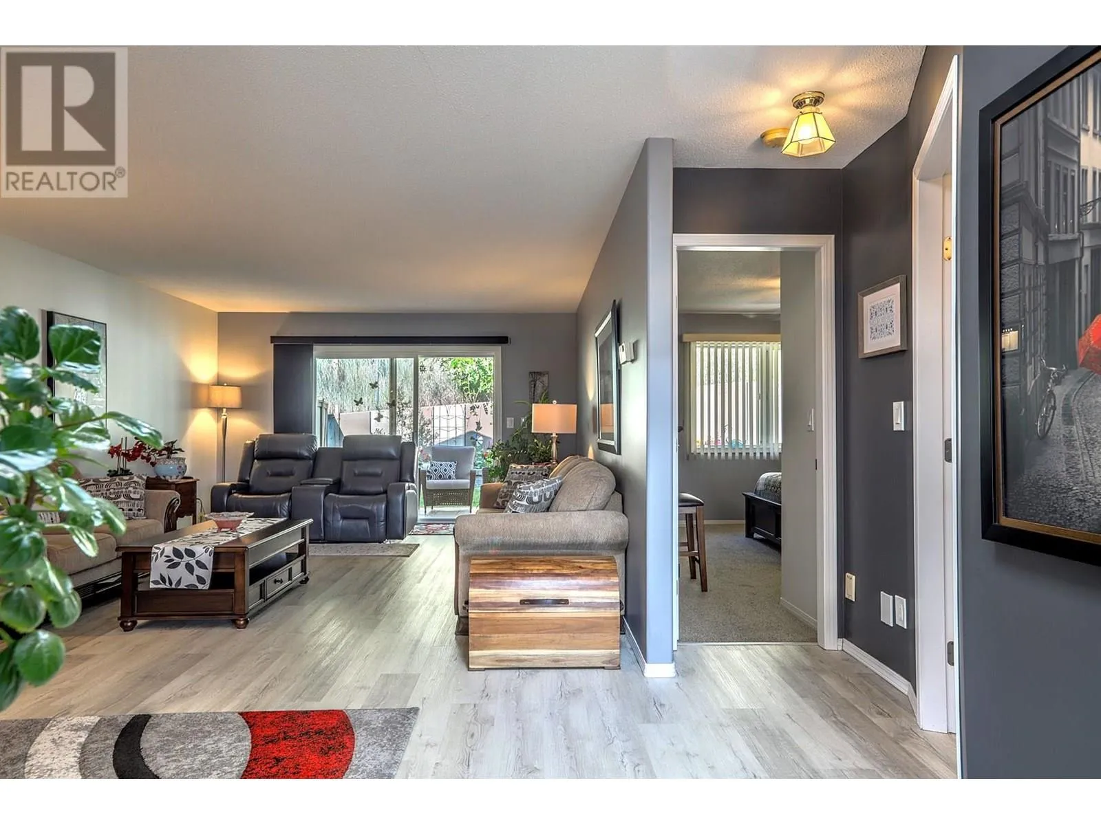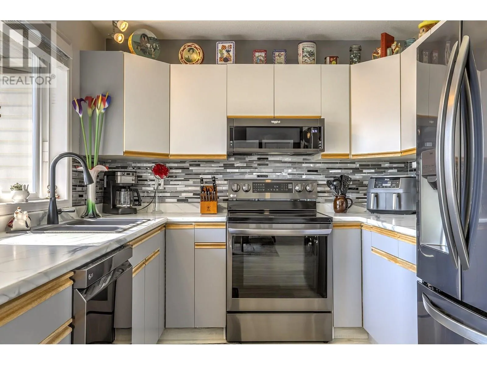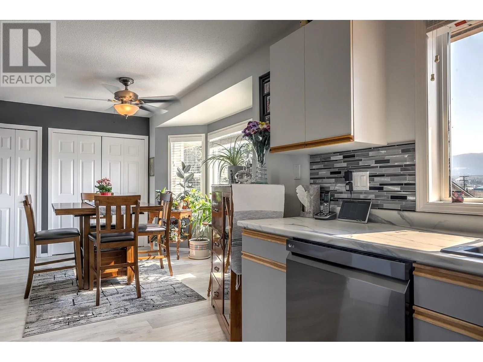Unit 15 in the Landsdowne Complex is one of the few units that offers a garage (not just a carport). When you enter the main entrance you have your garage with plenty of built in storage, a 4 piece bathroom, second bedroom and a large den/office area as well. Upstairs the stairs you enter into the middle of the main living area. The kitchen and dinning area both take advantage of the beautiful view looking East over the city and both Highway 6 and Silver Star. Newer appliances and updates to the backsplash and lighting give the unit a modern and updated feel. The living room has a gas fireplace at one end and big and bright patio doors on the other leading out to a magical little green space. The outdoor area has both covered and uncovered area with tiled floors that are heated under the covered portion of the patio! This is a one owner home that has been well cared for and maintained with many updates over the years. The most recent include the new appliances (2022), paint, vinyl flooring, carpet downstairs bedroom, hall and stairs. Some new lighting, switches and bathroom counters to name a few. Please review bylaws for full pet restrictions but generally it is one dog or one cat, not to exceed 15"" at the shoulder. Some exceptions apply as listed in the bylaws. 55+ Age Restriction. (id:27476)