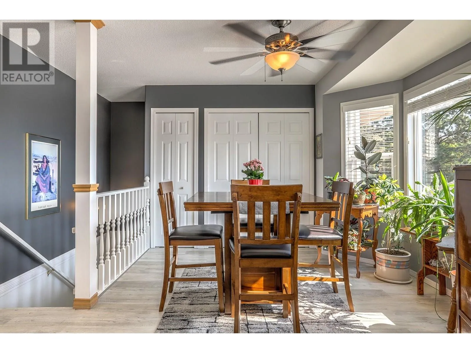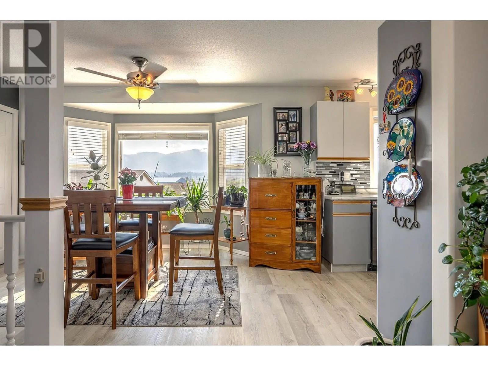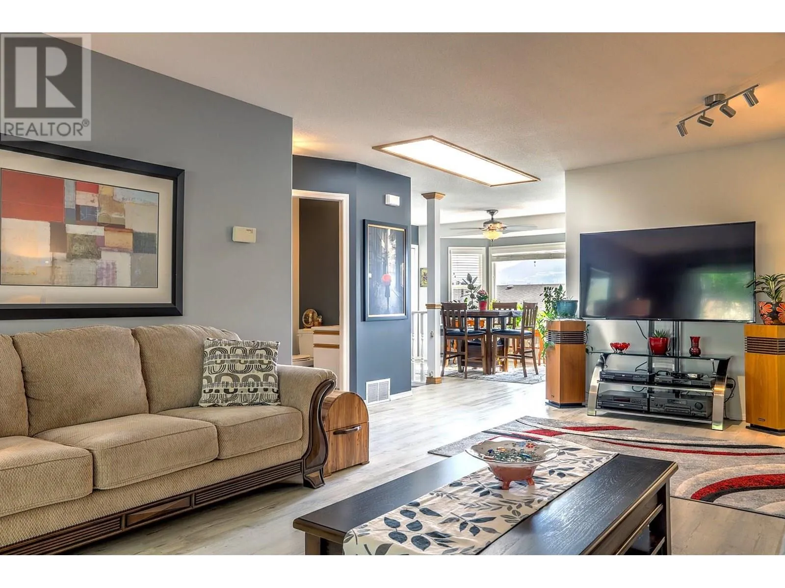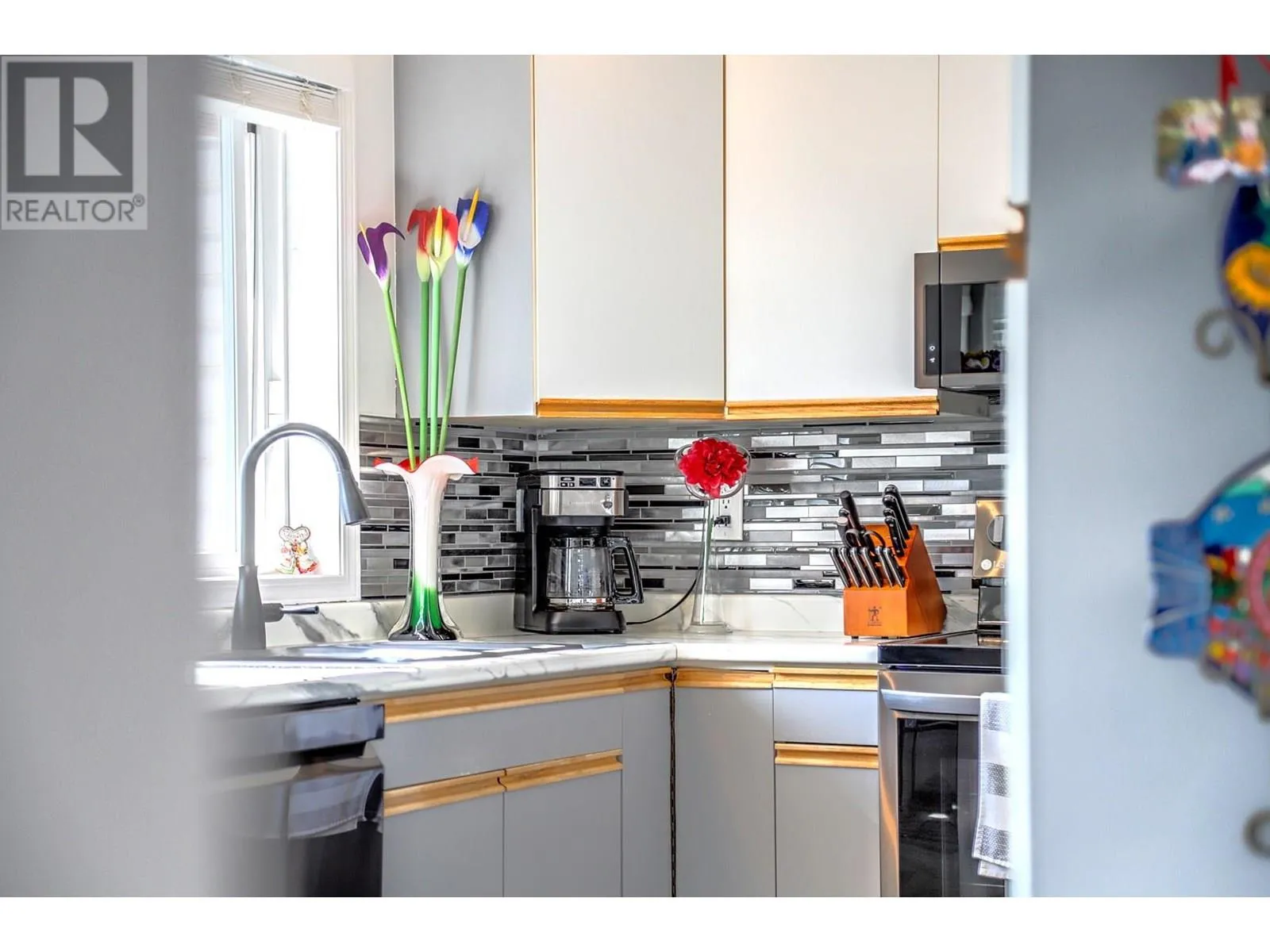 Unit 15 in the Landsdowne Complex is one of the few units that offers a garage (not just a carport). When you enter the main entrance you have your garage with plenty of built in storage, a 4 piece bathroom, second bedroom and a large den/office area as well. Upstairs the stairs you enter into the middle of the main living area. The kitchen and dinning area both take advantage of the beautiful view looking East over the city and both Highway 6 and Silver Star. Newer appliances and updates to the backsplash and lighting give the unit a modern and updated feel. The living room has a gas fireplace at one end and big and bright patio doors on the other leading out to a magical little green space. The outdoor area has both covered and uncovered area with tiled floors that are heated under the covered portion of the patio! This is a one owner home that has been well cared for and maintained with many updates over the years. The most recent include the new appliances (2022), paint, vinyl flooring, carpet downstairs bedroom, hall and stairs. Some new lighting, switches and bathroom counters to name a few. Please review bylaws for full pet restrictions but generally it is one dog or one cat, not to exceed 15"" at the shoulder. Some exceptions apply as listed in the bylaws. 55+ Age Restriction. (id:27476)