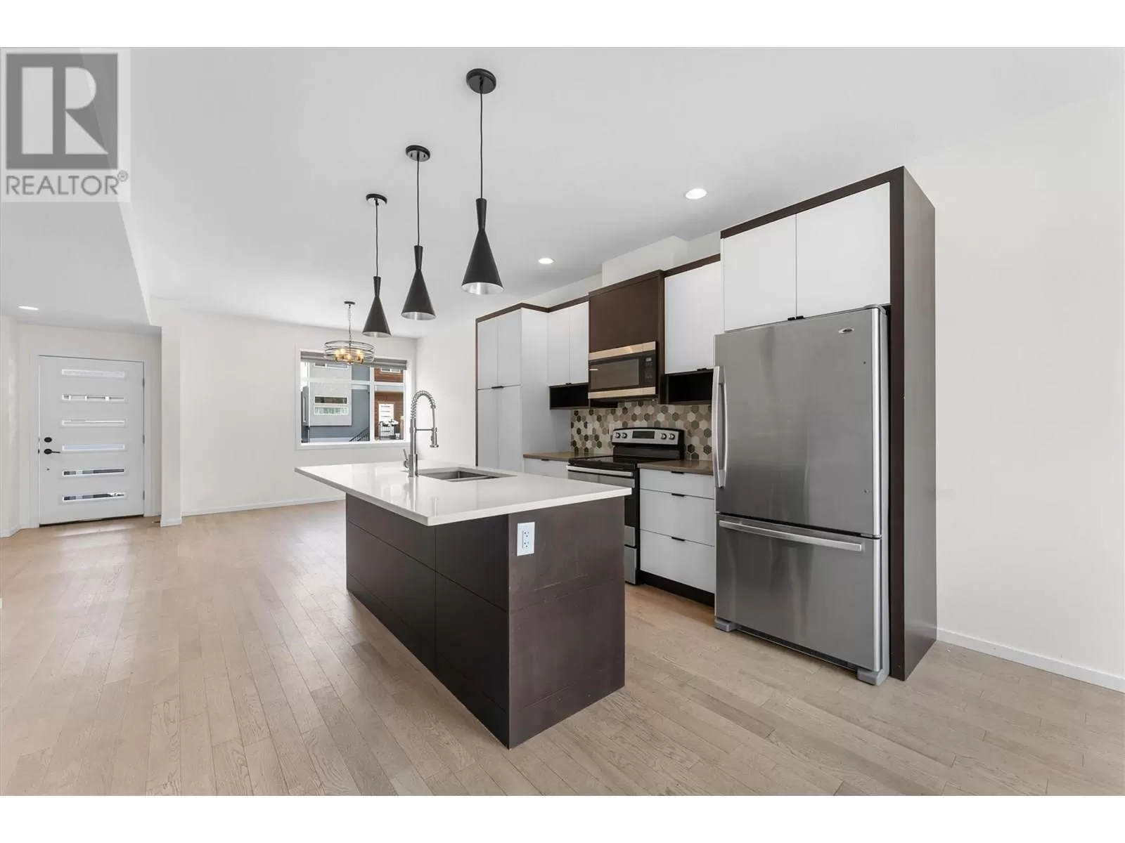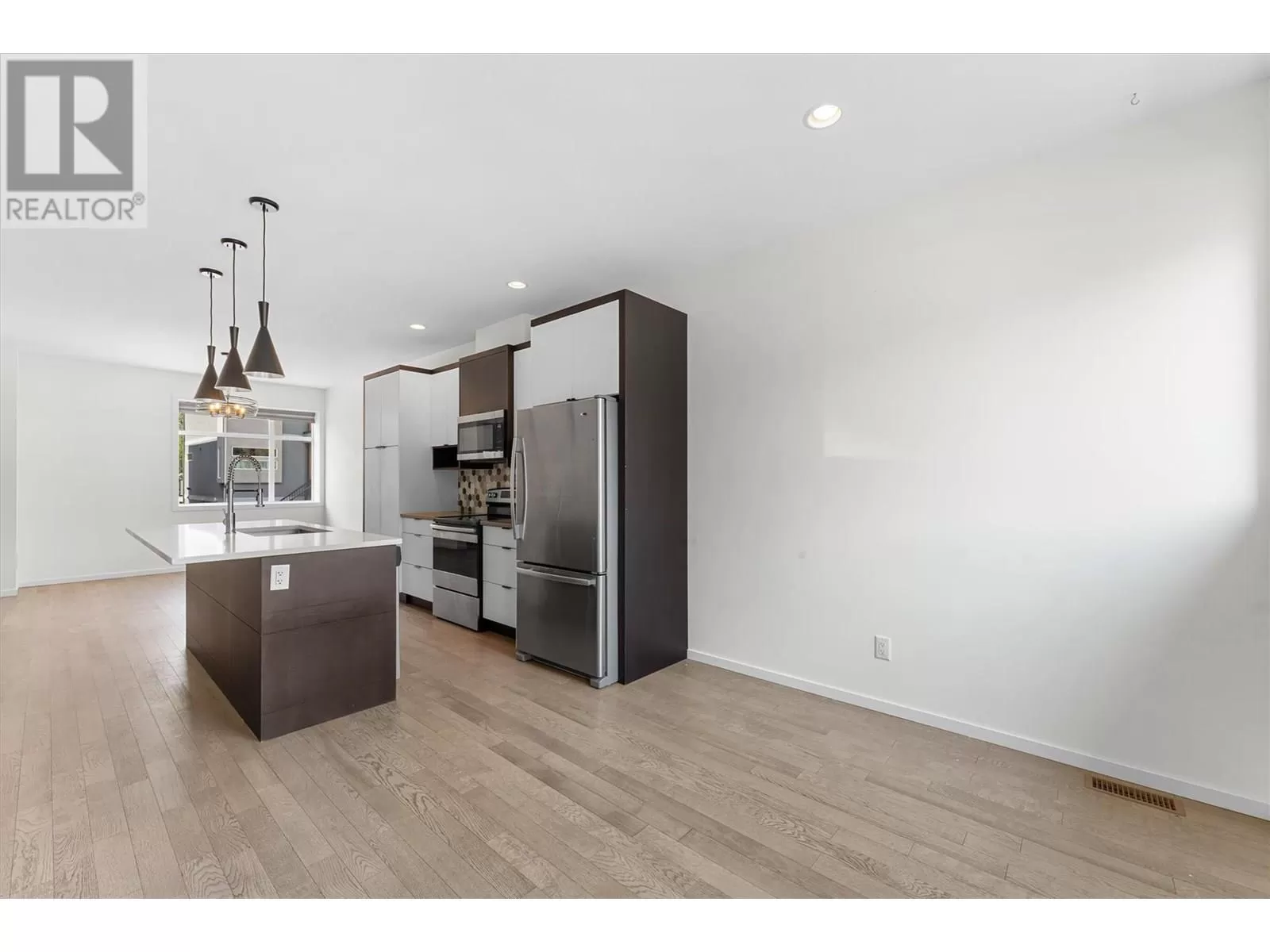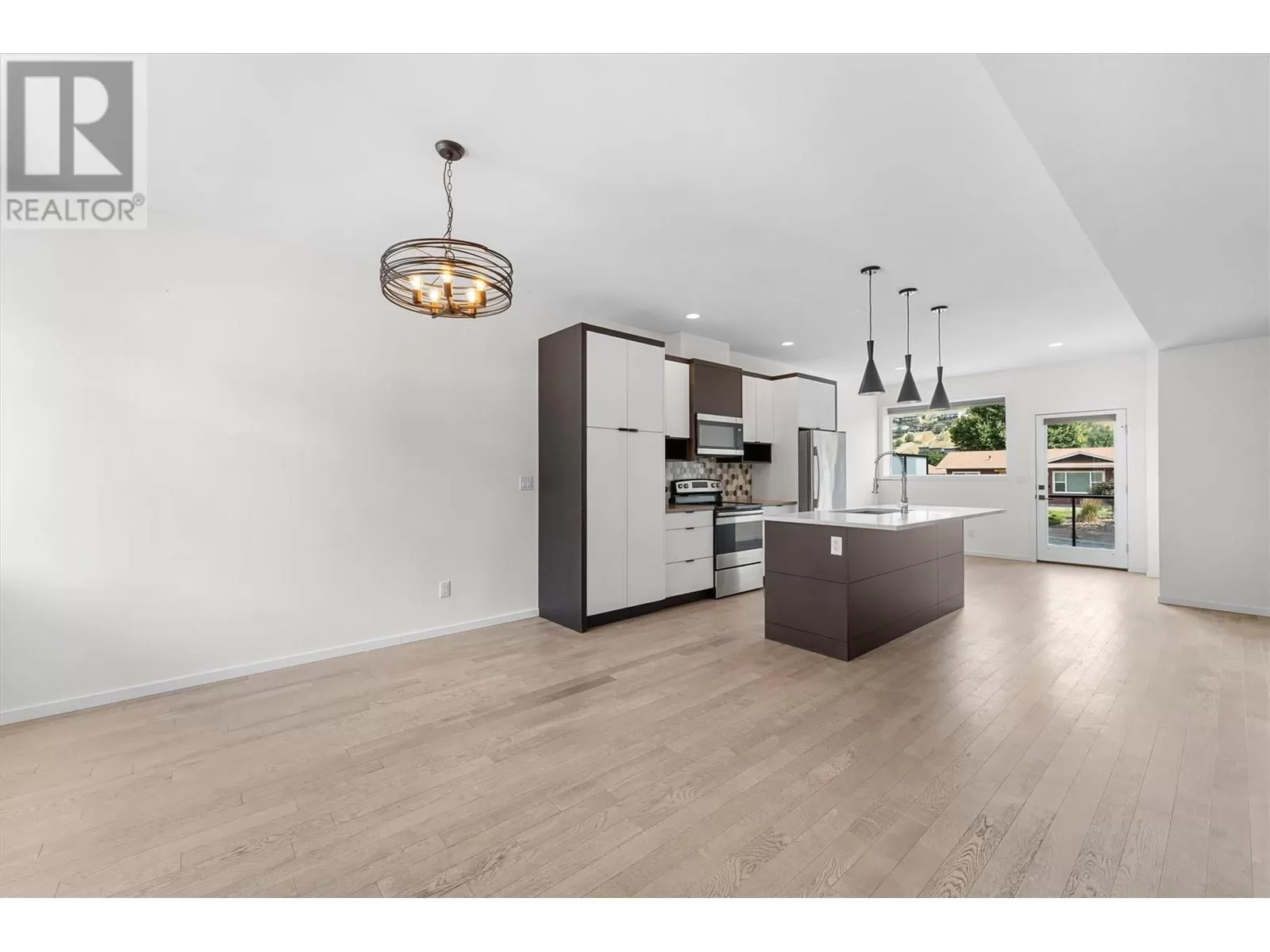 Bright, modern, and move-in ready â this stylish 2018-built townhouse delivers the space you need and the finishes you want. Located in a quiet complex with hillside views and sunny south-facing light, this home features engineered hardwood floors, quartz counters, modern cabinetry, and the perfect family layout. The main floor has a huge open kitchen with living room, dining room, and powder room. Upstairs, you'll find three spacious bedrooms, with a primary ensuite, and a second bathroom for the other two bedrooms. The versatile lower-level bedroom with is the perfect family room, gym, office or combination! With a single-car garage and minutes to Okanagan Lake, hiking trails, pickleball courts, and The Rise golf courseâthis one checks every box. Also allows one cat or dog! (id:27476)