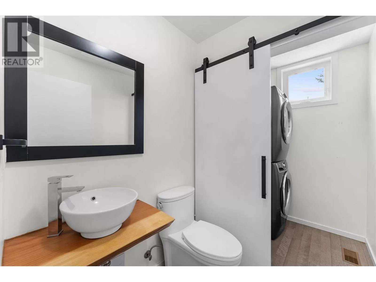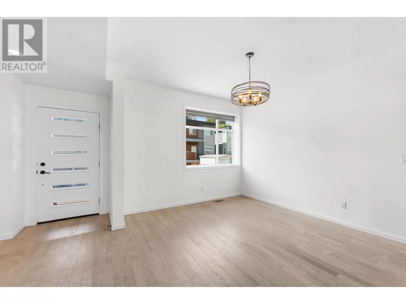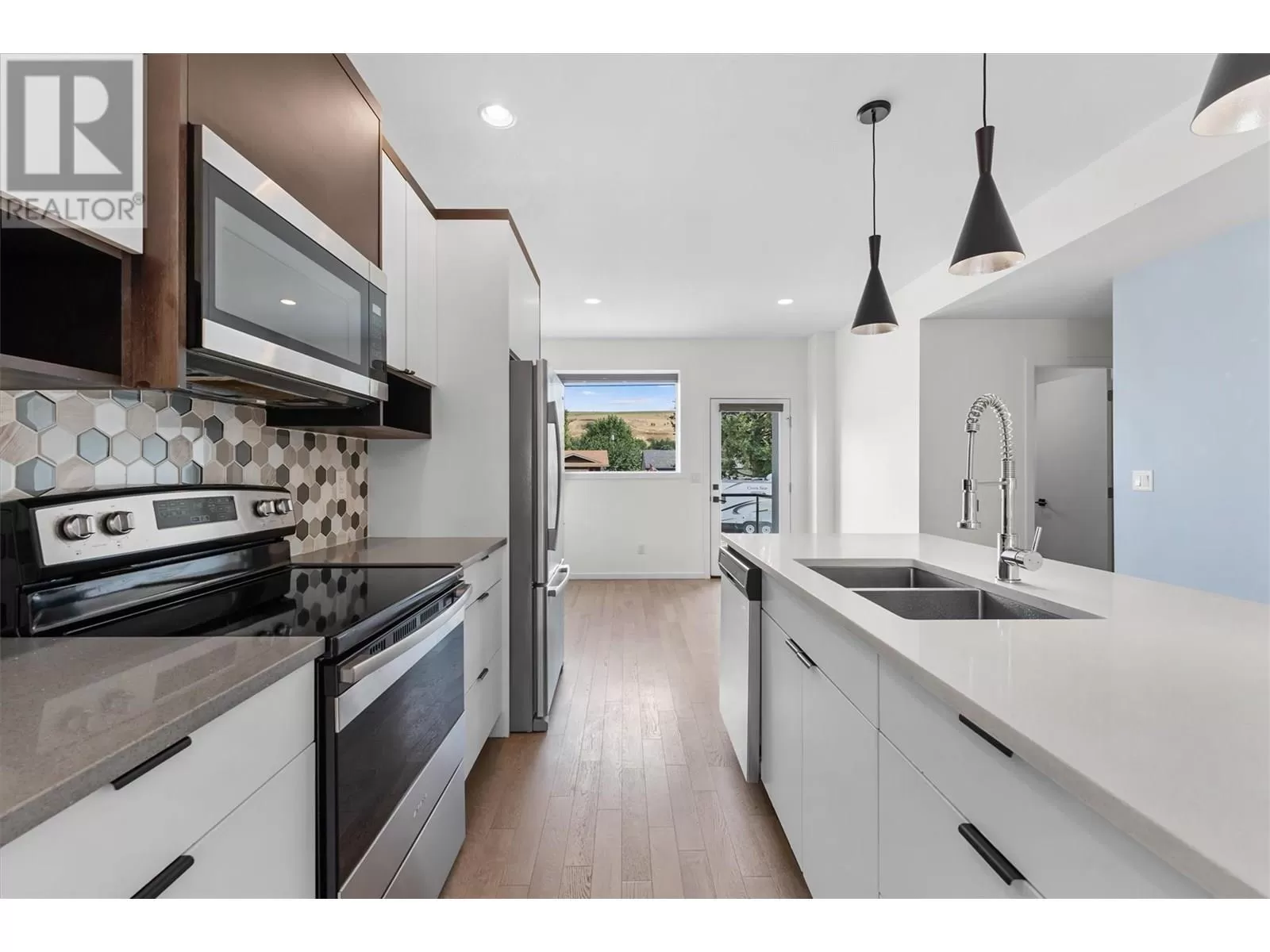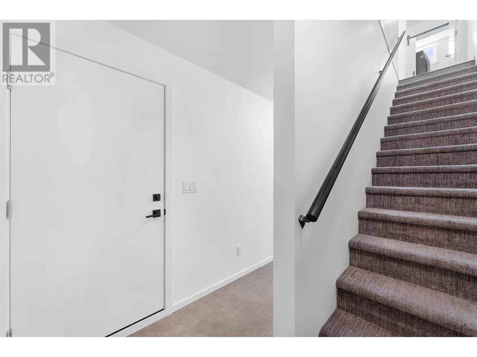 Bright, modern, and move-in ready â this stylish 2018-built townhouse delivers the space you need and the finishes you want. Located in a quiet complex with hillside views and sunny south-facing light, this home features engineered hardwood floors, quartz counters, modern cabinetry, and the perfect family layout. The main floor has a huge open kitchen with living room, dining room, and powder room. Upstairs, you'll find three spacious bedrooms, with a primary ensuite, and a second bathroom for the other two bedrooms. The versatile lower-level bedroom with is the perfect family room, gym, office or combination! With a single-car garage and minutes to Okanagan Lake, hiking trails, pickleball courts, and The Rise golf courseâthis one checks every box. Also allows one cat or dog! (id:27476)