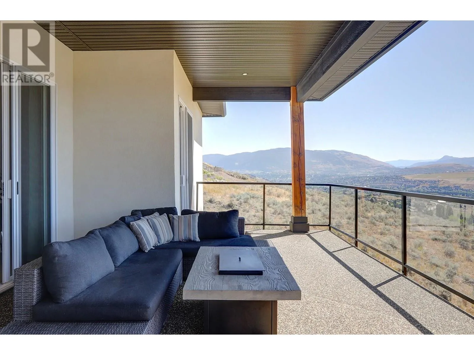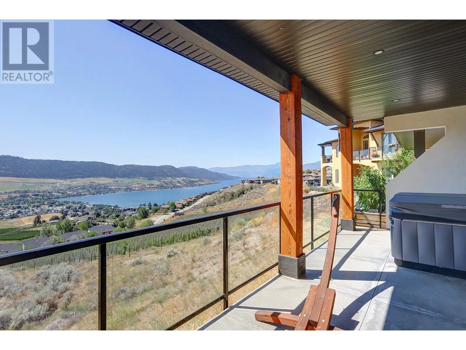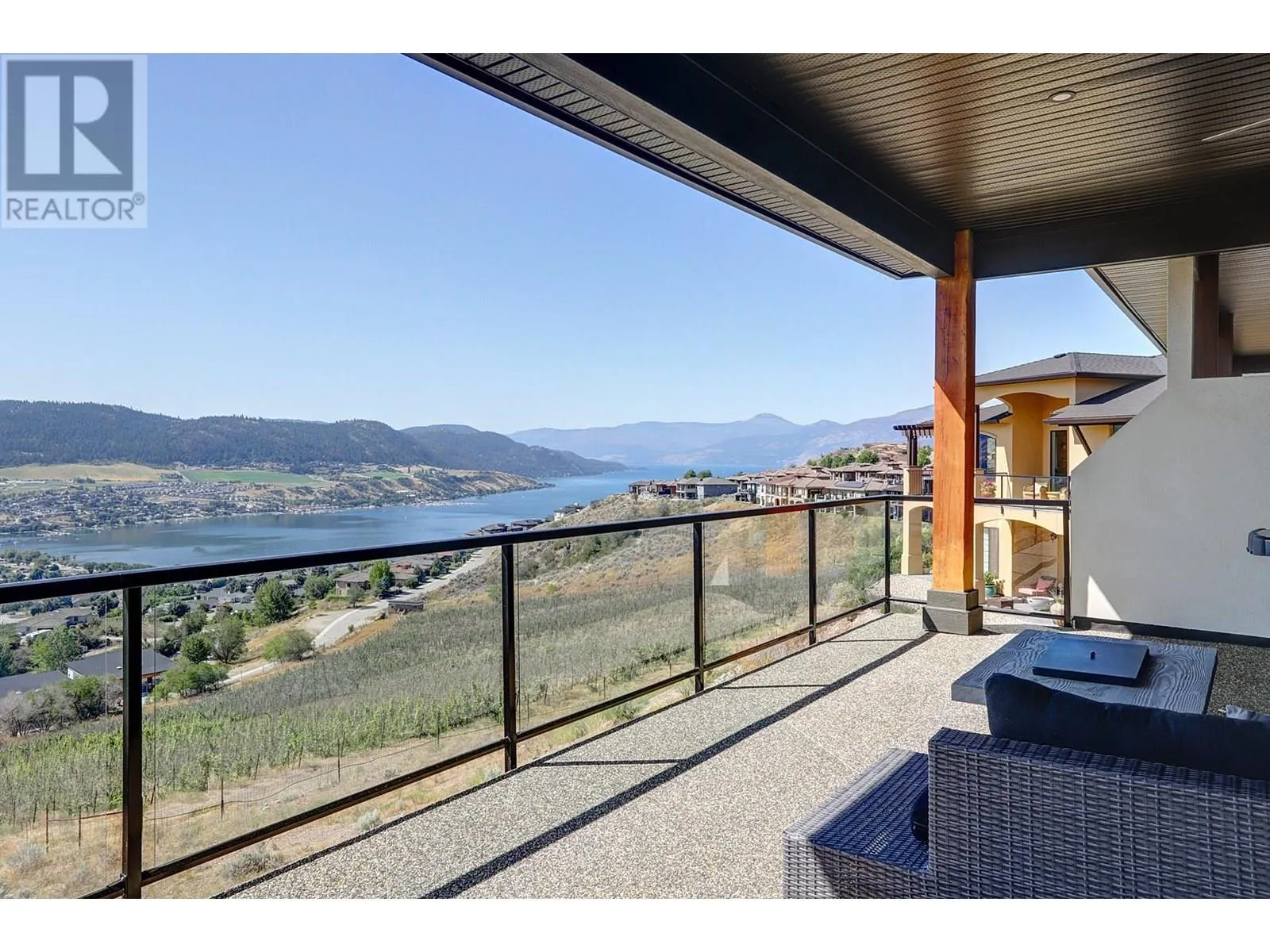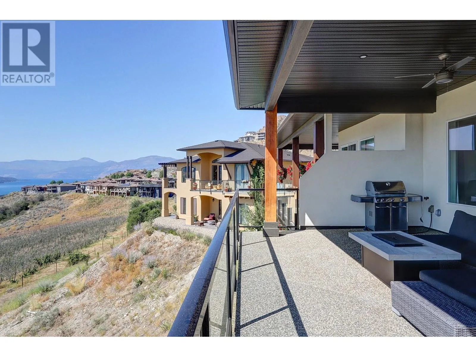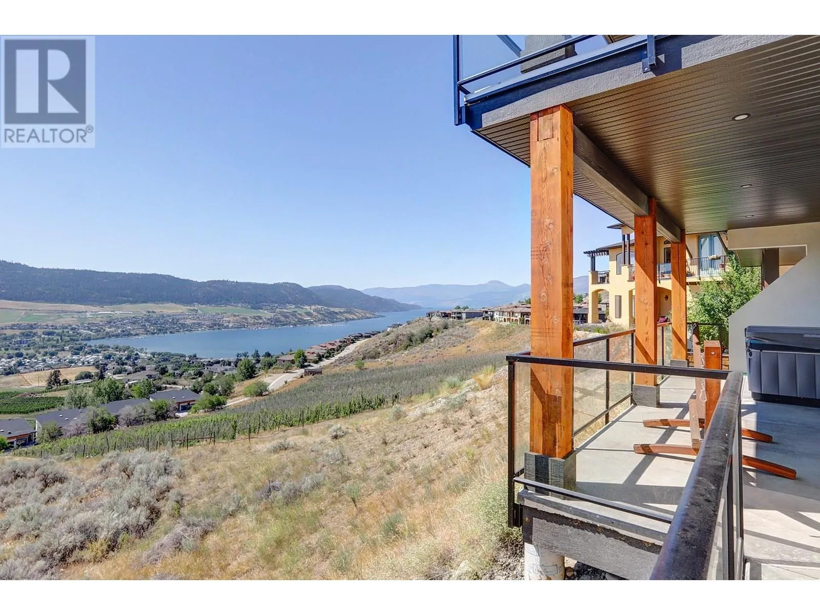 Top of the Okanagan views from this stunning home perched high on the hills of The Rise development. This 4 bedroom, 3 bath residence is full of extras and the thoughtful layout provides priceless views of the lake, valley and mountains. Primary bedroom has lake views from the comfort of your bed. The spacious ensuite contains a fully tiled walk-in shower, free-standing soaker tub, massive double vanity with tons of storage and in-floor heat! The walk-in closet is very spacious with double banks of custom drawers. The fully stocked kitchen opens up to the dining and living areas. High-end appliances, gas stove with pot filler faucet, butlerâs pantry with granite counters and plug-ins for your extra kitchen appliances. Custom wine rack and beverage station in dining area. A huge gym in the basement plus a hot tub on the lower patio to soak in after your workout. The basement is suitable if you would like to create a rental space in the home. Enjoy next level golf at the Signature Course at The Rise or head up to the new EDGE restaurant, cocktail bar and event center to enjoy a truly elevated culinary experience. (id:27476)