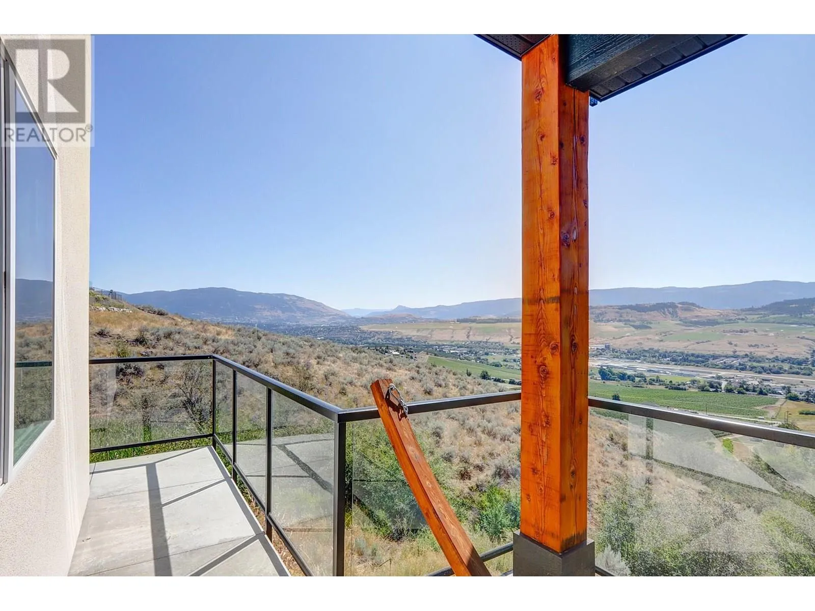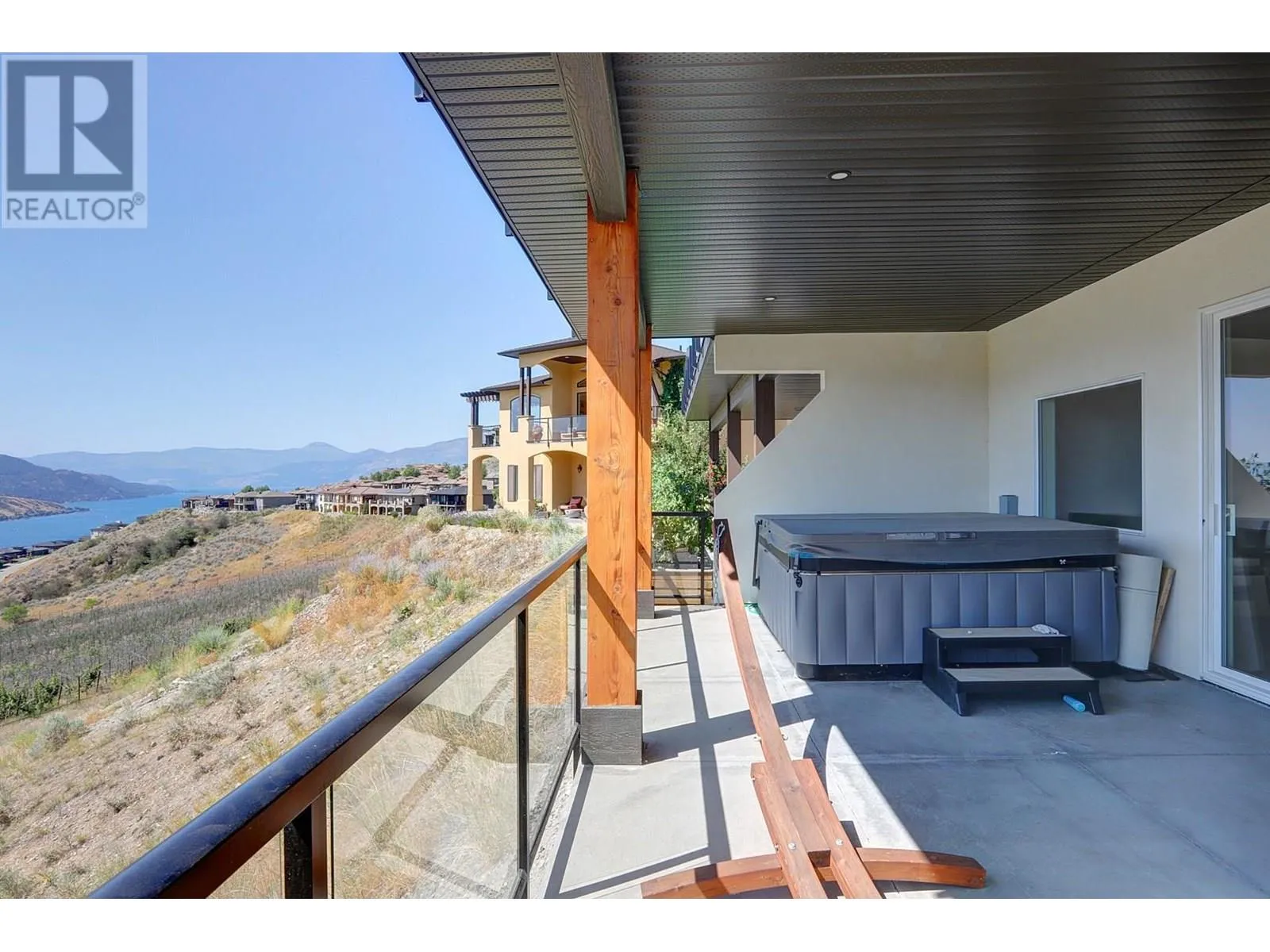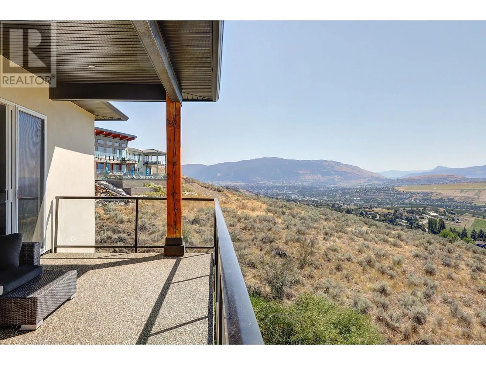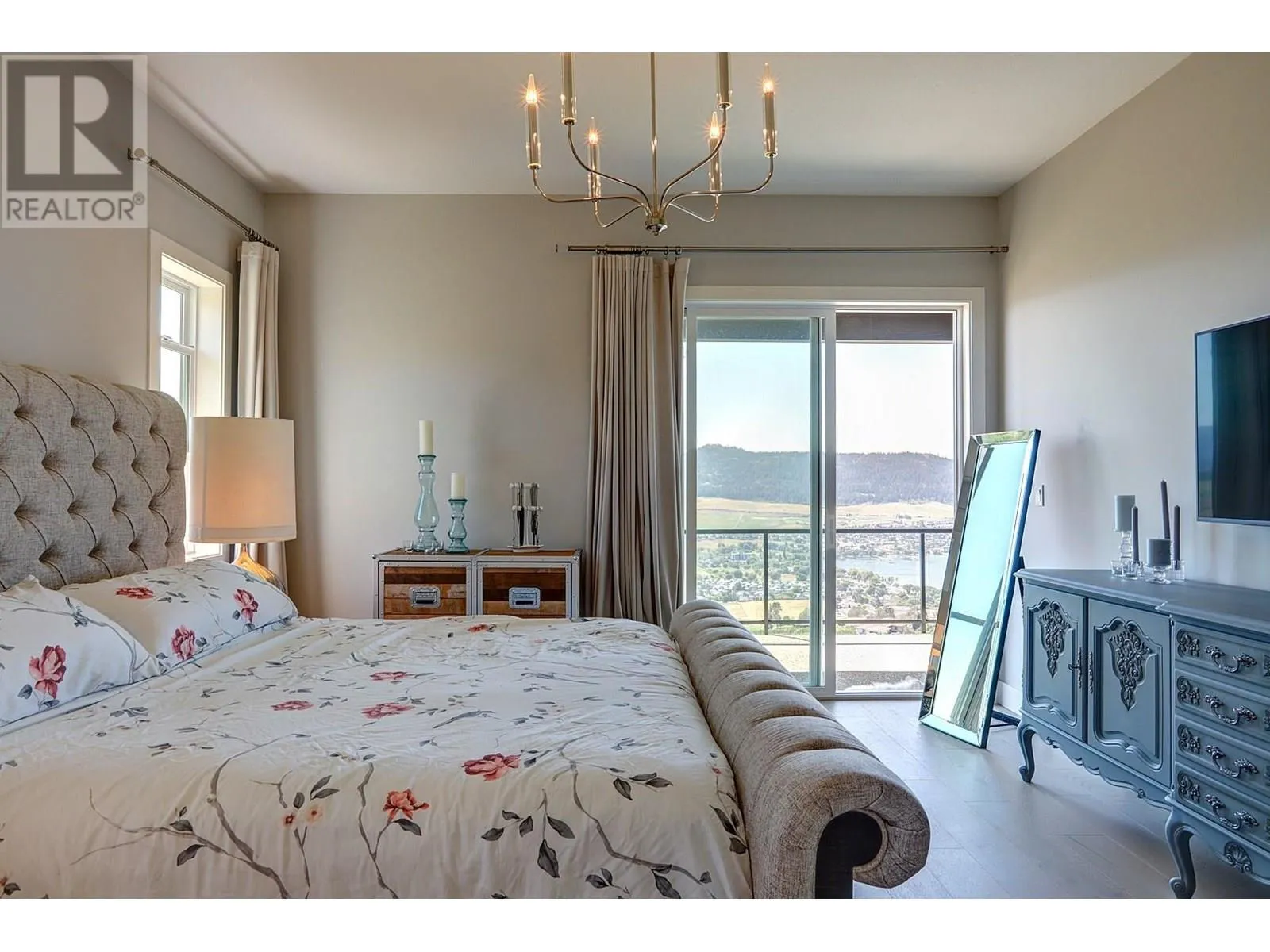 Top of the Okanagan views from this stunning home perched high on the hills of The Rise development. This 4 bedroom, 3 bath residence is full of extras and the thoughtful layout provides priceless views of the lake, valley and mountains. Primary bedroom has lake views from the comfort of your bed. The spacious ensuite contains a fully tiled walk-in shower, free-standing soaker tub, massive double vanity with tons of storage and in-floor heat! The walk-in closet is very spacious with double banks of custom drawers. The fully stocked kitchen opens up to the dining and living areas. High-end appliances, gas stove with pot filler faucet, butlerâs pantry with granite counters and plug-ins for your extra kitchen appliances. Custom wine rack and beverage station in dining area. A huge gym in the basement plus a hot tub on the lower patio to soak in after your workout. The basement is suitable if you would like to create a rental space in the home. Enjoy next level golf at the Signature Course at The Rise or head up to the new EDGE restaurant, cocktail bar and event center to enjoy a truly elevated culinary experience. (id:27476)