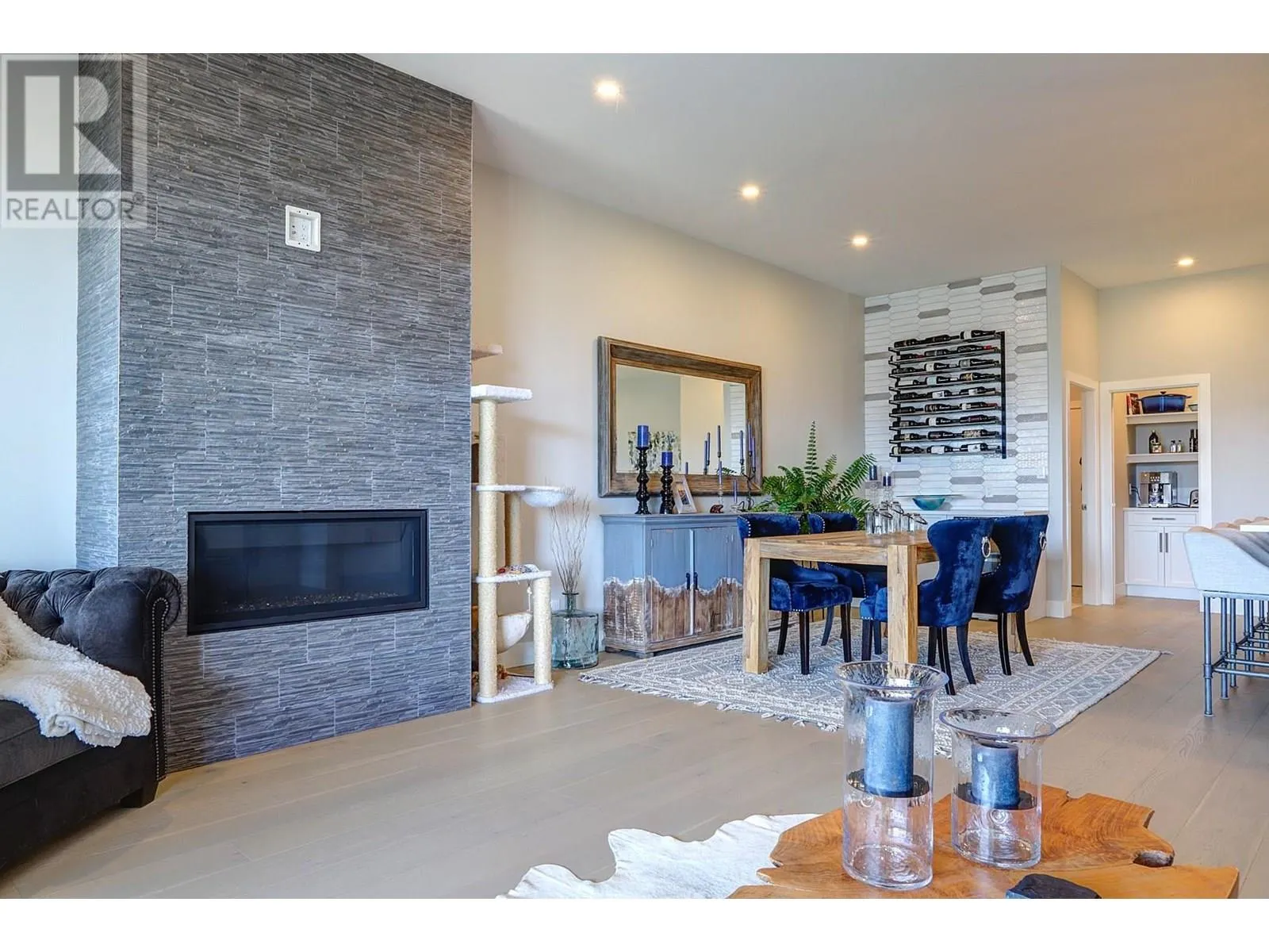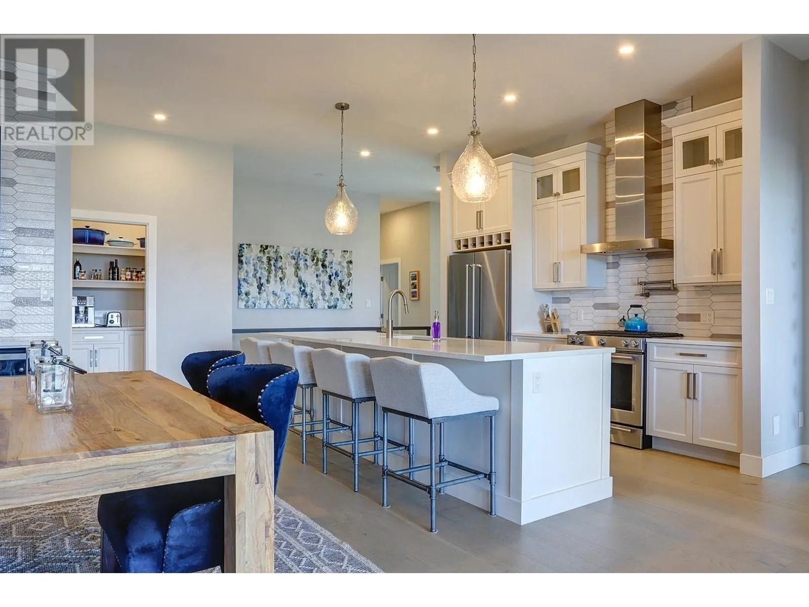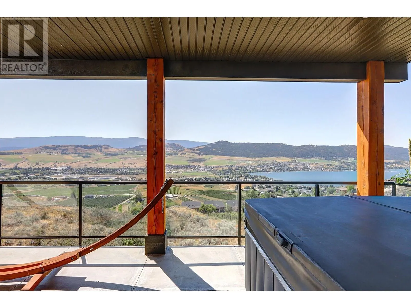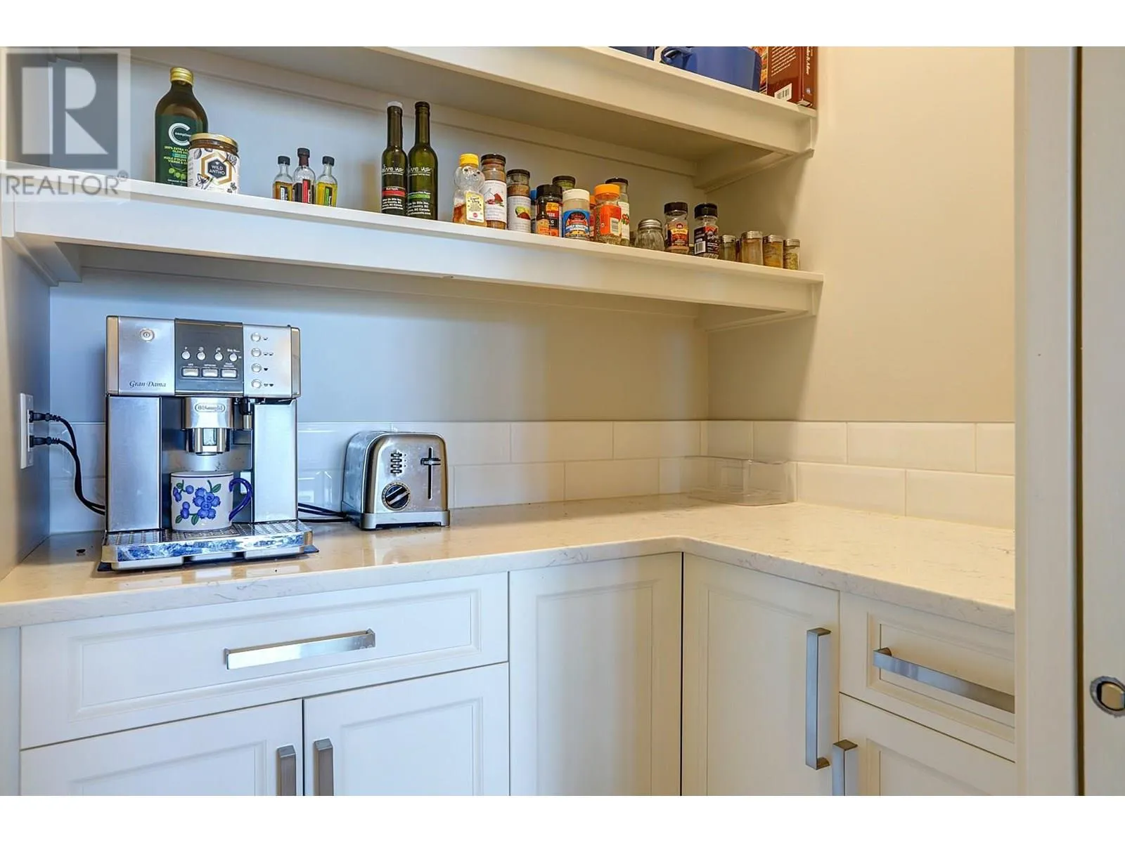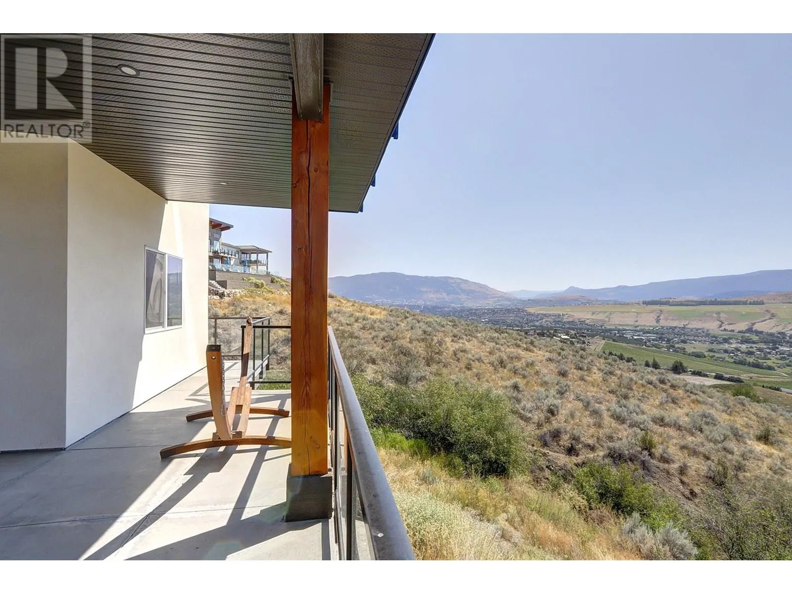 Top of the Okanagan views from this stunning home perched high on the hills of The Rise development. This 4 bedroom, 3 bath residence is full of extras and the thoughtful layout provides priceless views of the lake, valley and mountains. Primary bedroom has lake views from the comfort of your bed. The spacious ensuite contains a fully tiled walk-in shower, free-standing soaker tub, massive double vanity with tons of storage and in-floor heat! The walk-in closet is very spacious with double banks of custom drawers. The fully stocked kitchen opens up to the dining and living areas. High-end appliances, gas stove with pot filler faucet, butlerâs pantry with granite counters and plug-ins for your extra kitchen appliances. Custom wine rack and beverage station in dining area. A huge gym in the basement plus a hot tub on the lower patio to soak in after your workout. The basement is suitable if you would like to create a rental space in the home. Enjoy next level golf at the Signature Course at The Rise or head up to the new EDGE restaurant, cocktail bar and event center to enjoy a truly elevated culinary experience. (id:27476)