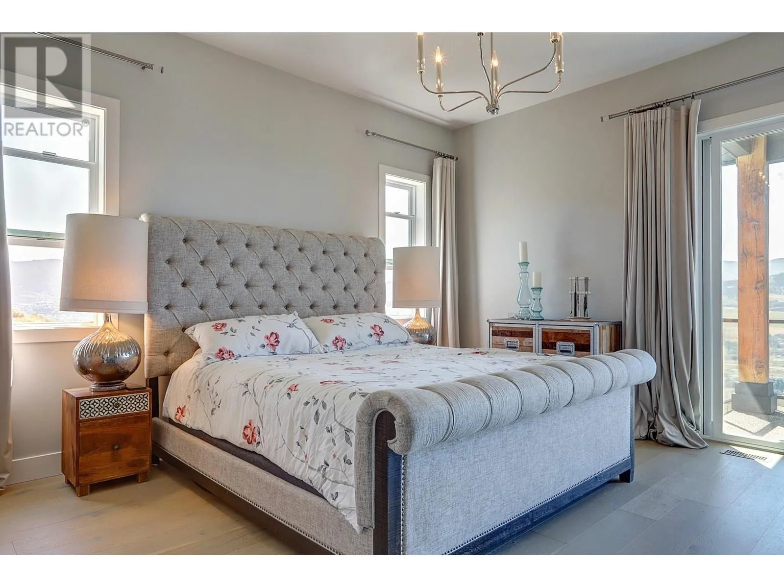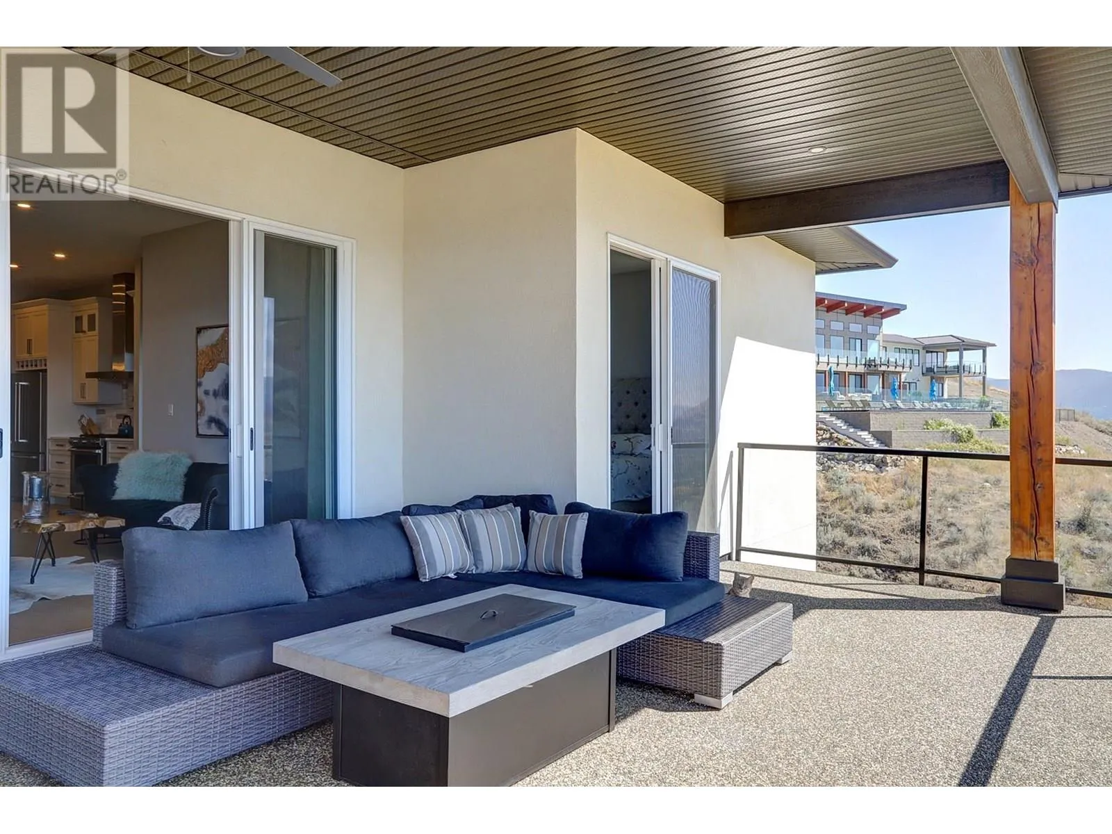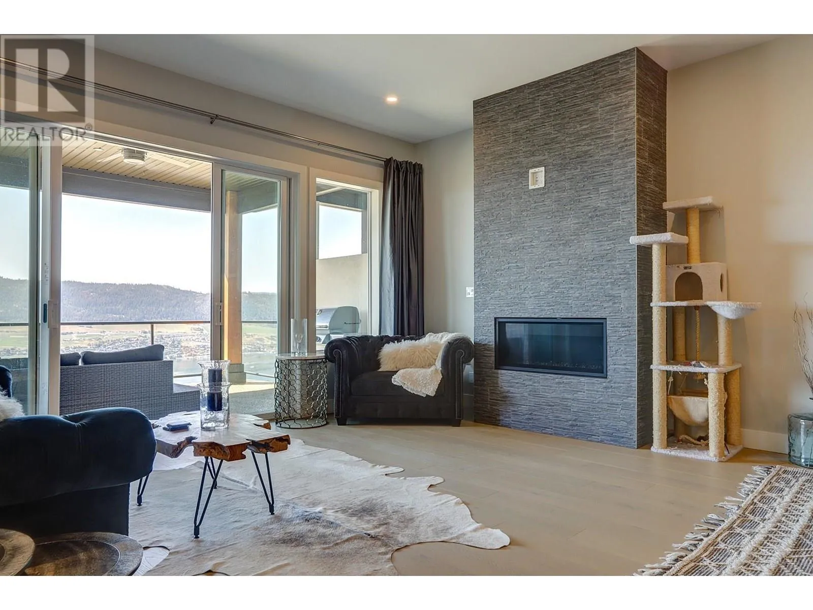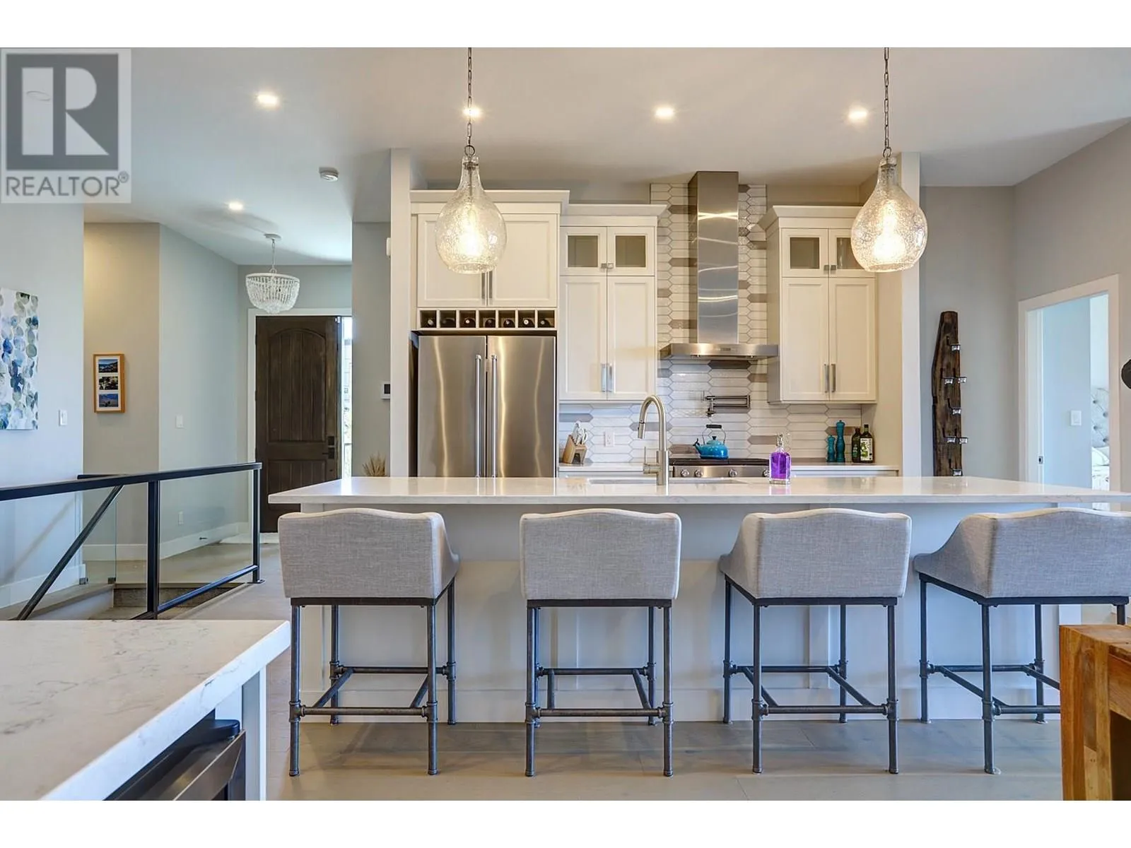 Top of the Okanagan views from this stunning home perched high on the hills of The Rise development. This 4 bedroom, 3 bath residence is full of extras and the thoughtful layout provides priceless views of the lake, valley and mountains. Primary bedroom has lake views from the comfort of your bed. The spacious ensuite contains a fully tiled walk-in shower, free-standing soaker tub, massive double vanity with tons of storage and in-floor heat! The walk-in closet is very spacious with double banks of custom drawers. The fully stocked kitchen opens up to the dining and living areas. High-end appliances, gas stove with pot filler faucet, butlerâs pantry with granite counters and plug-ins for your extra kitchen appliances. Custom wine rack and beverage station in dining area. A huge gym in the basement plus a hot tub on the lower patio to soak in after your workout. The basement is suitable if you would like to create a rental space in the home. Enjoy next level golf at the Signature Course at The Rise or head up to the new EDGE restaurant, cocktail bar and event center to enjoy a truly elevated culinary experience. (id:27476)