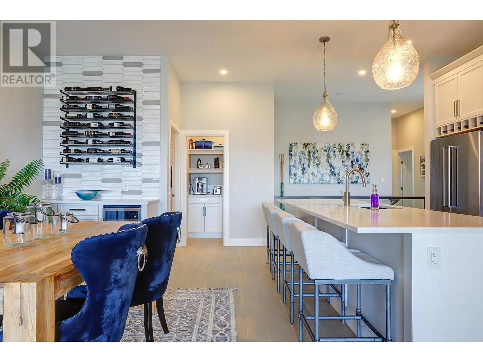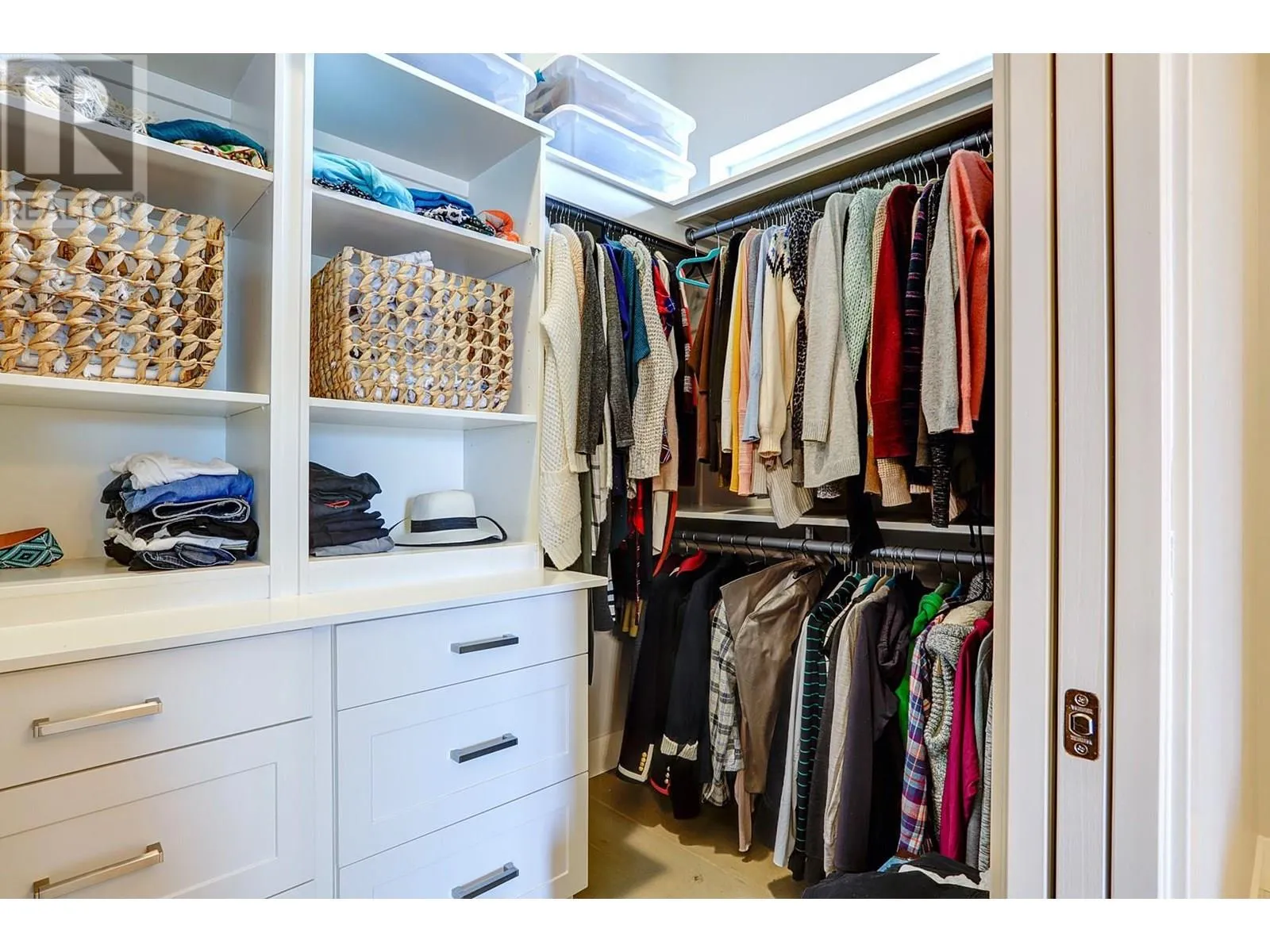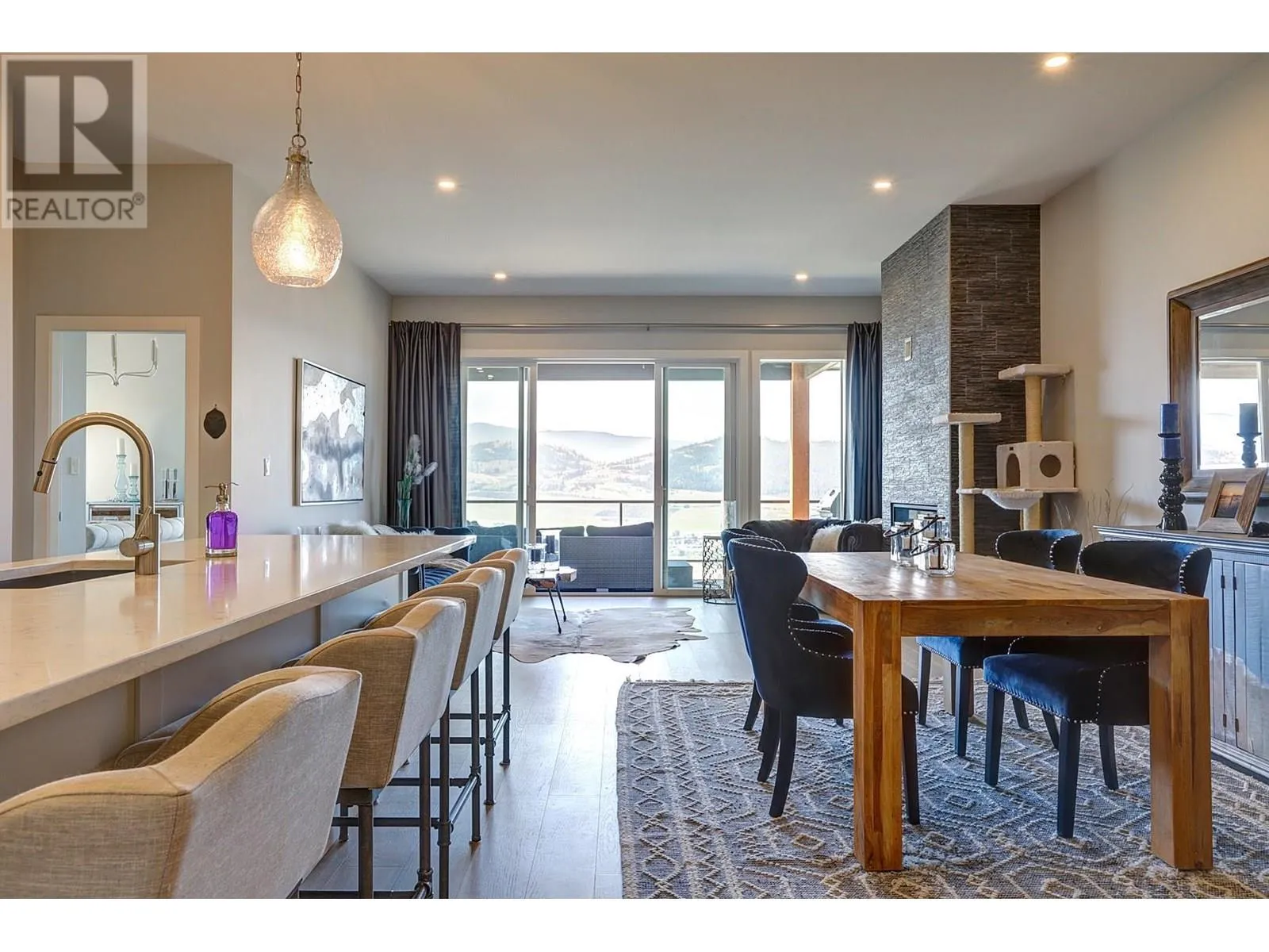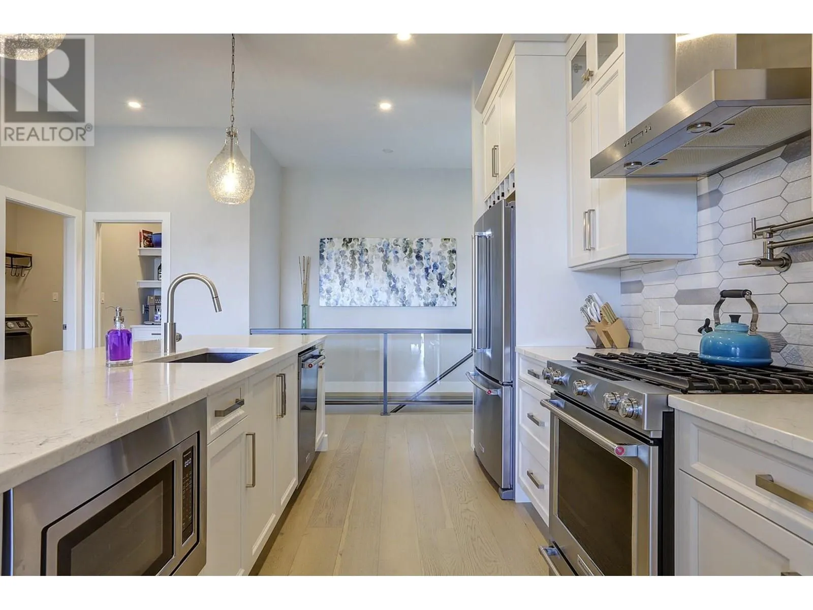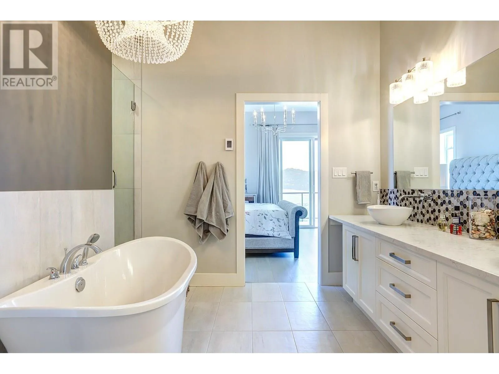 Top of the Okanagan views from this stunning home perched high on the hills of The Rise development. This 4 bedroom, 3 bath residence is full of extras and the thoughtful layout provides priceless views of the lake, valley and mountains. Primary bedroom has lake views from the comfort of your bed. The spacious ensuite contains a fully tiled walk-in shower, free-standing soaker tub, massive double vanity with tons of storage and in-floor heat! The walk-in closet is very spacious with double banks of custom drawers. The fully stocked kitchen opens up to the dining and living areas. High-end appliances, gas stove with pot filler faucet, butlerâs pantry with granite counters and plug-ins for your extra kitchen appliances. Custom wine rack and beverage station in dining area. A huge gym in the basement plus a hot tub on the lower patio to soak in after your workout. The basement is suitable if you would like to create a rental space in the home. Enjoy next level golf at the Signature Course at The Rise or head up to the new EDGE restaurant, cocktail bar and event center to enjoy a truly elevated culinary experience. (id:27476)