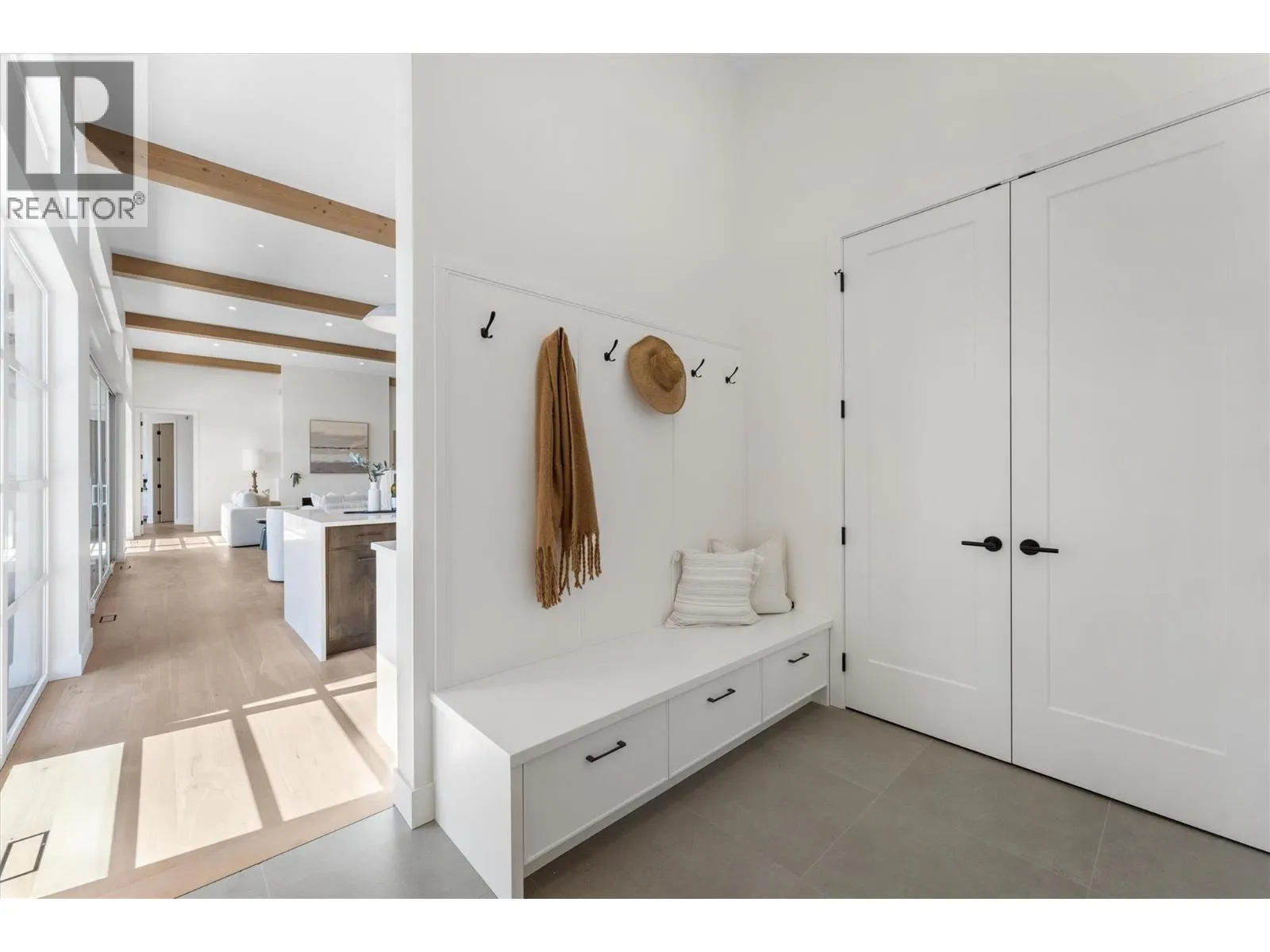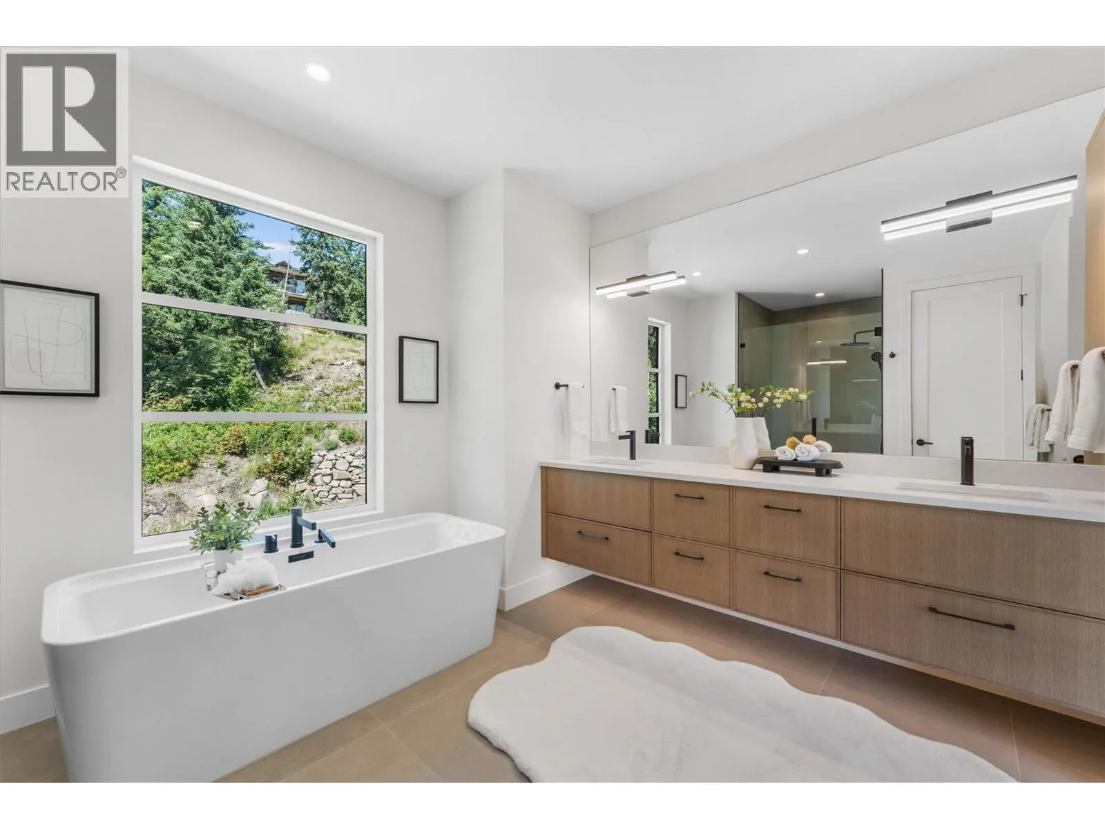 NO SPEC/VACANCY TAX. Modern luxury meets resort-style living in this brand-new residence at Predator Ridgeâs prestigious Falcon Point. With over 4,000 sq. ft. of refined design, this 5 bed, 4 bath home is perfectly positioned to capture golf course and mountain views. Expansive windows and 12 ft. ceilings with exposed beams set the tone in the main living space, where a sleek fireplace and engineered hardwood floors create an elegant yet inviting atmosphere. The chefâs kitchen is a true centerpiece, featuring a Fisher & Paykel appliance package, entertainment-sized waterfall island, and seamless access to a covered patio complete with an outdoor kitchen. The main floor offers a serene primary retreat with spa-inspired 5-piece ensuite and a second bedroom or use as an office. The lower level is designed for entertaining with a spacious rec room, wet bar, and patio ready for a hot tub. A secondary primary suite with ensuite and walk-in closet, plus two additional bedrooms and a den/gym, provide excellent space for family and guests. An amazing 4-car garage, fully landscaped grounds, and thoughtful finishes throughout reflect exceptional attention to detail. Enjoy the unparalleled lifestyle of Predator Ridge, Canadaâs premier four-season resort community, offering 36 holes of championship golf, a racquet club, miles of trails, Sparkling Hill Resort nearby, and world-class wineries just minutes away. GST applicable. (id:27476)