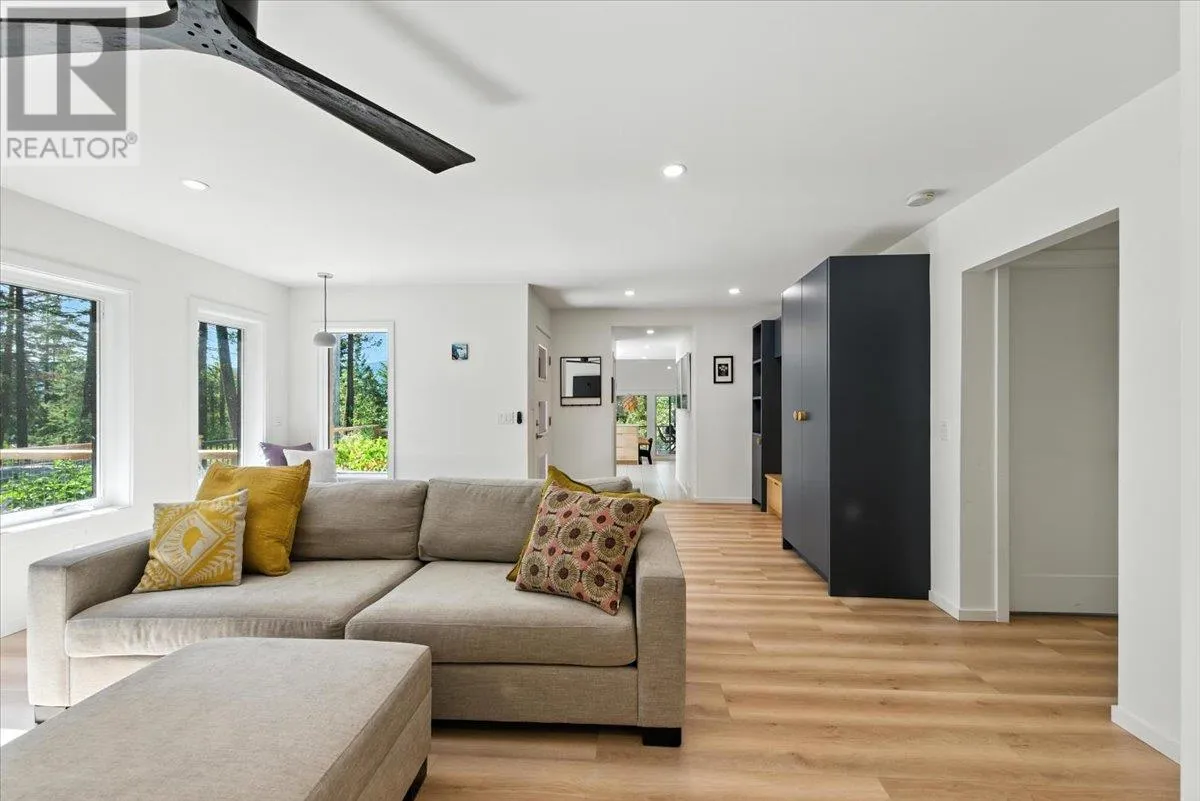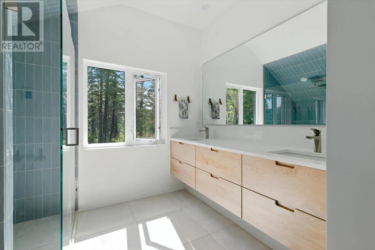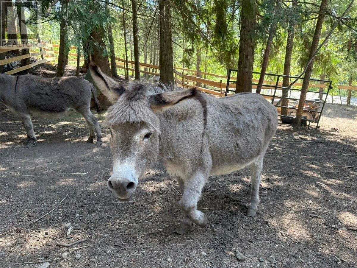 This charming 3-bed, 2-bath home sits on 4.55 acres and offers thoughtfully designed living space across 1.5 floors. The main level features an open-concept layout that seamlessly blends the kitchen, living, and dining areas. The kitchen showcases custom light wood cabinetry, stainless steel appliances, and a large window that frames peaceful forest views. Adjacent to the kitchen, the spacious living room boasts vaulted ceilings, expansive windows, and sliding glass doors that open to a generous outdoor deck perfect for enjoying the natural surroundings. Two bedrooms, a stylish 3-piece bath, and a large laundry room with custom storage cabinets complete the main floor. Upstairs, the primary suite offers a tranquil retreat with a sleek ensuite featuring glass shower enclosures and floating vanities. A dedicated office space provides an ideal setup for remote work, and the primary bed opens onto a private deck for peaceful moments. Throughout the home, two gas stoves add warmth and character. Enjoy stunning forest views from nearly every room.f This warm and inviting home blends rural charm with modern convenience, located just minutes from the ski hill and local shops.Ideal for horse lovers or hobby farmers, the property is approximately 25% cleared and 75% forested, offering a balance of open space and privacy. Features include: A riding arena, Tack room, Hay storage, 2 livestock shelters. A rare combination of comfort, privacy, and accessibility it's truly a gem. (id:27476)