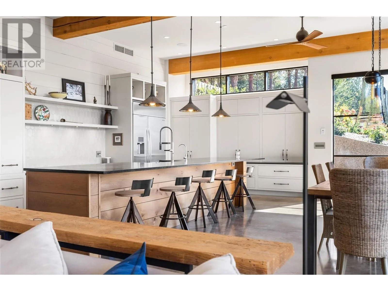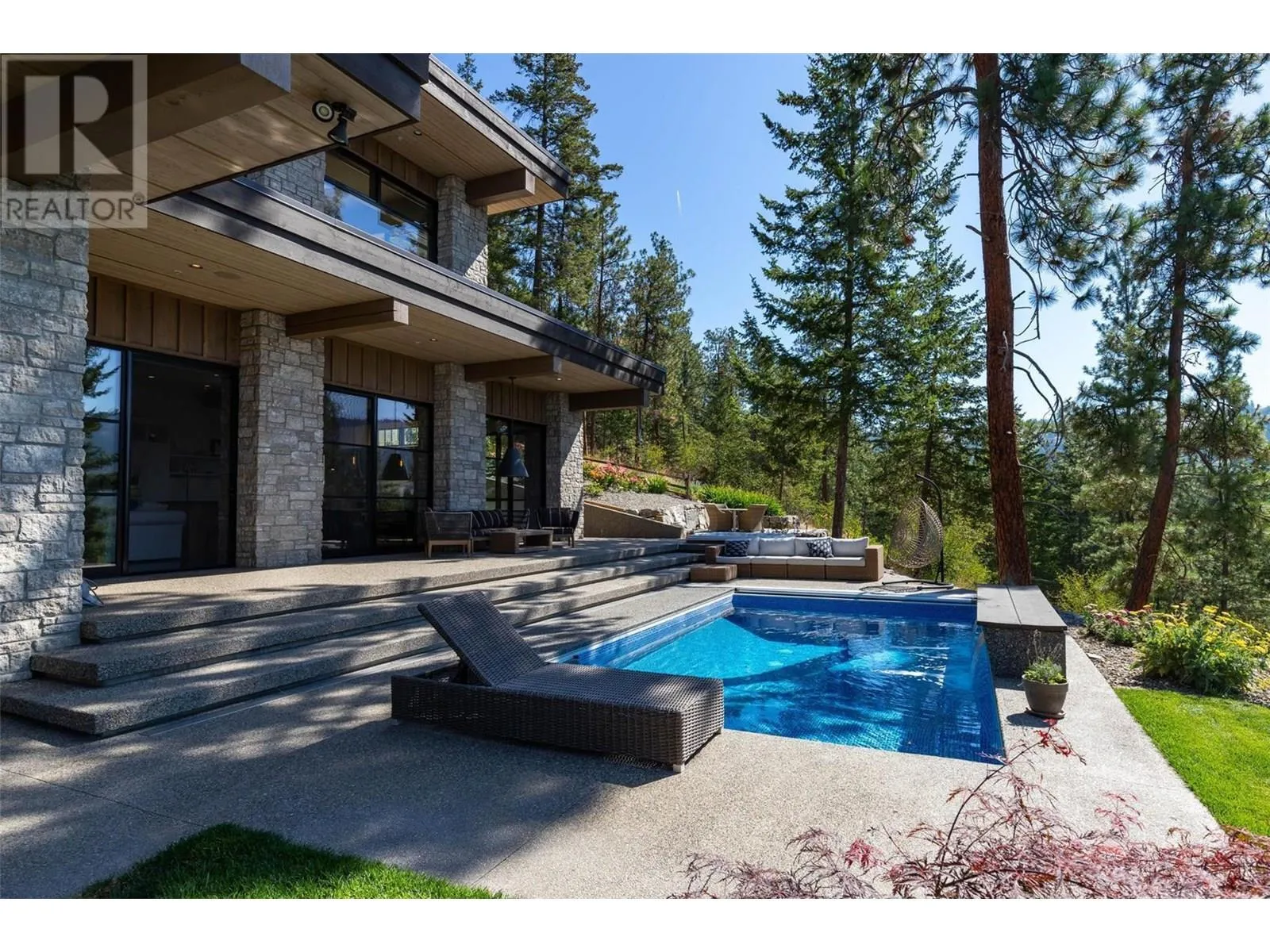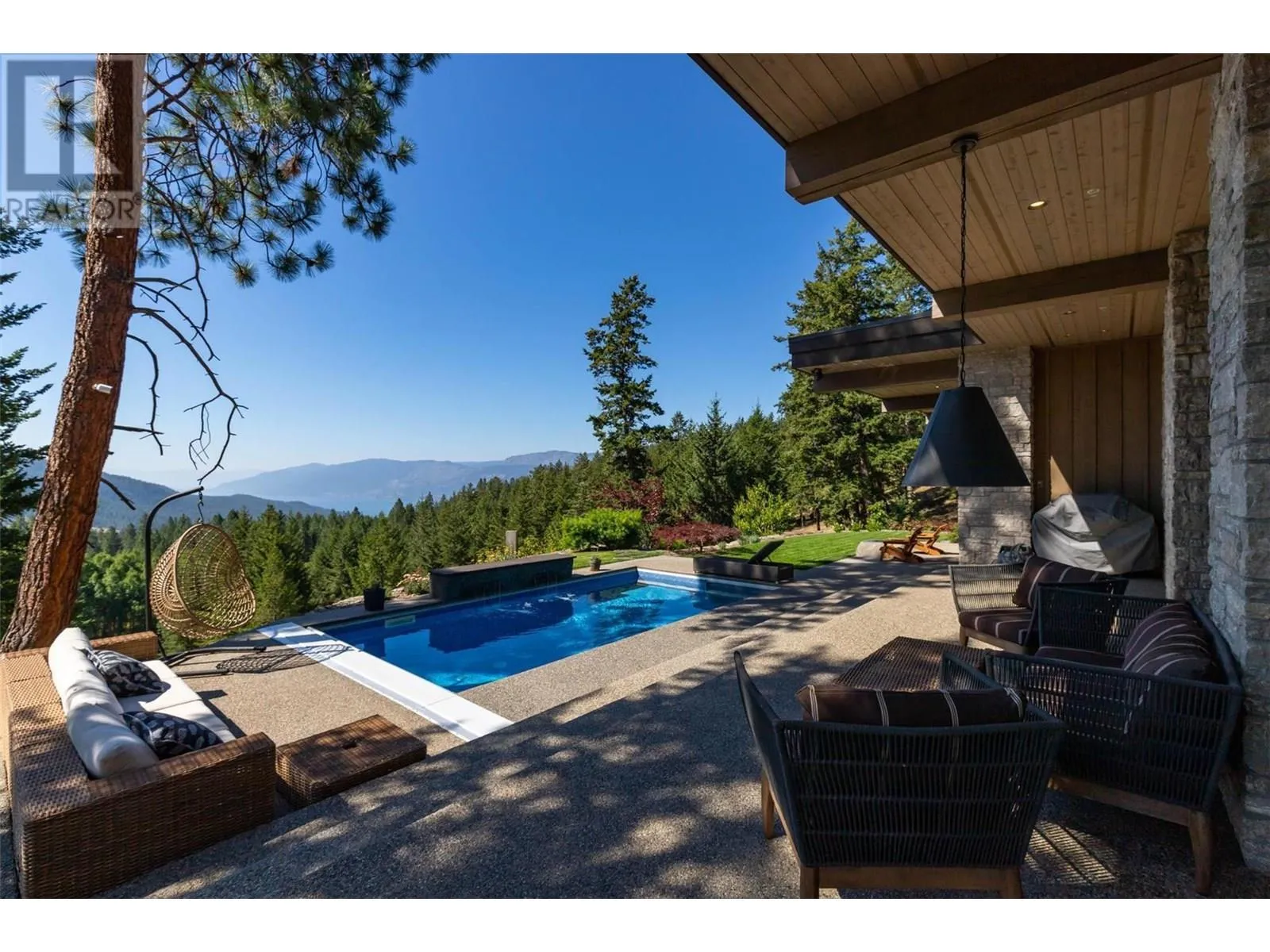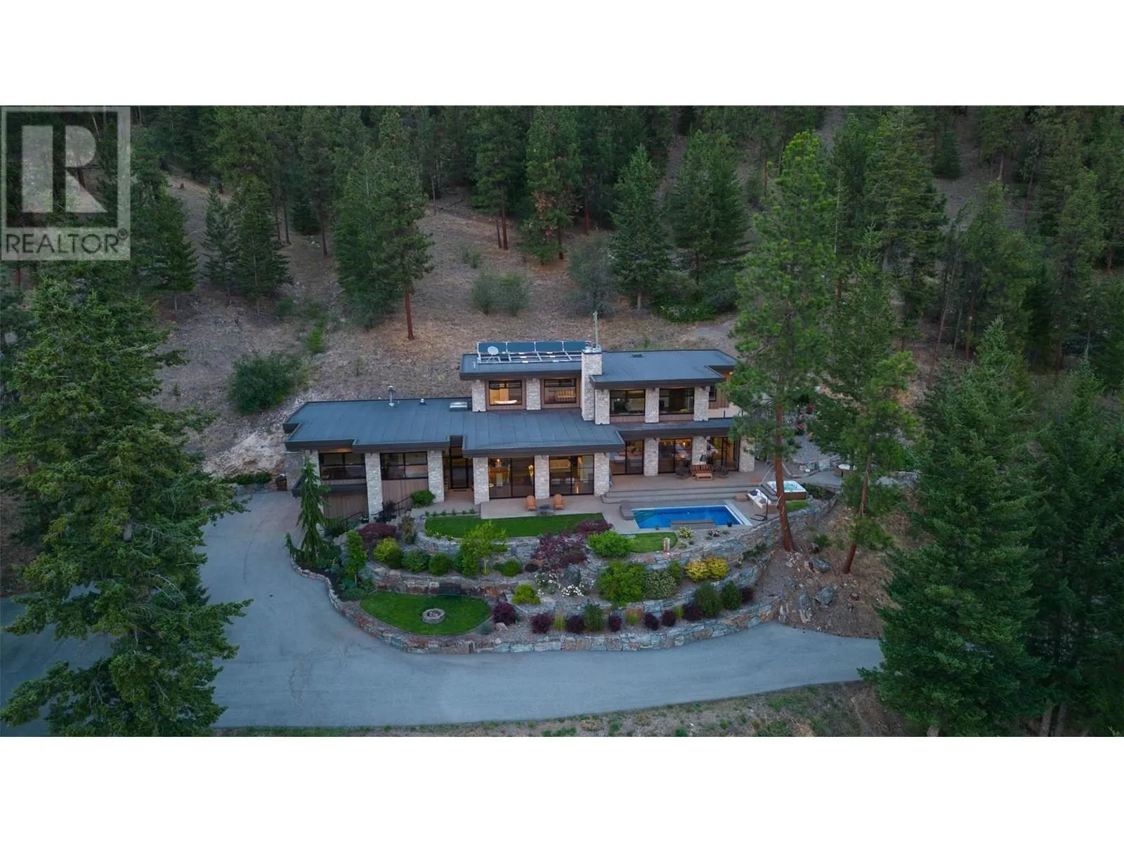 144.92 acre estate in Vernon city limits, with only +/- 9.6 acres within the ALR. 5200 plus square foot modern residence, completed in 2016, with five bedrooms and three bathrooms, a stunning pool, and top-of-the-line cosmetics and mechanical systems. Current AGRL zoning permits 12 hectare (30 acre) lots, creating immediate subdivision potential and long-term development potential. The land has significant pasture/grazing land (+/- 21 acres) which has been used for an organic lamb farm, and cattle. There is a small pond, an aspen grove, and significant cross-fencing (electric). Water is via a four gallon per minute well with a cistern system. The home is accessed via a one kilometer private paved driveway. Finishings include polished heated concrete floors, cedar beams, wood burning fireplace plus stove, and grand windows and sliding doors that access the saltwater pool. Outdoor space also has a firepit and hot tub, looking south towards the expansive lake and valley views that span to see the Bennett Bridge in Kelowna. High-efficiency GARN mechanical uses wood, thermal solar, and an electric heat pump. The property is just a few minutes drive to Predator Ridge Golf, Sparkling Hills, the new O'Rourke Winery, and is close to both Lake Country and Vernon. Outbuildings include a barn, and a 60'x40' workshop, perfect for a potential tack room if a buyer wishes to convert the lands to equestrian use. This shop also has a caretaker's suite. The property is adjacent to Ellison Provincial Park, making for a private location. (id:27476)