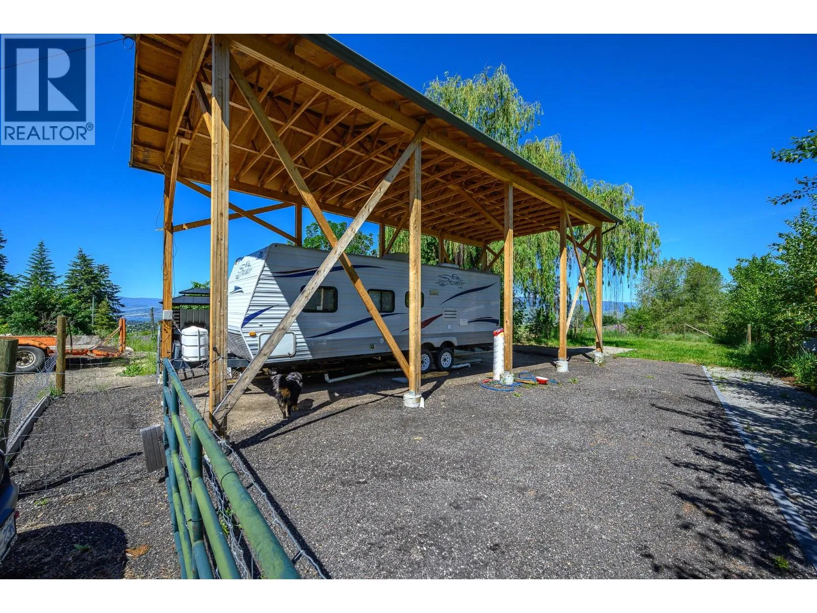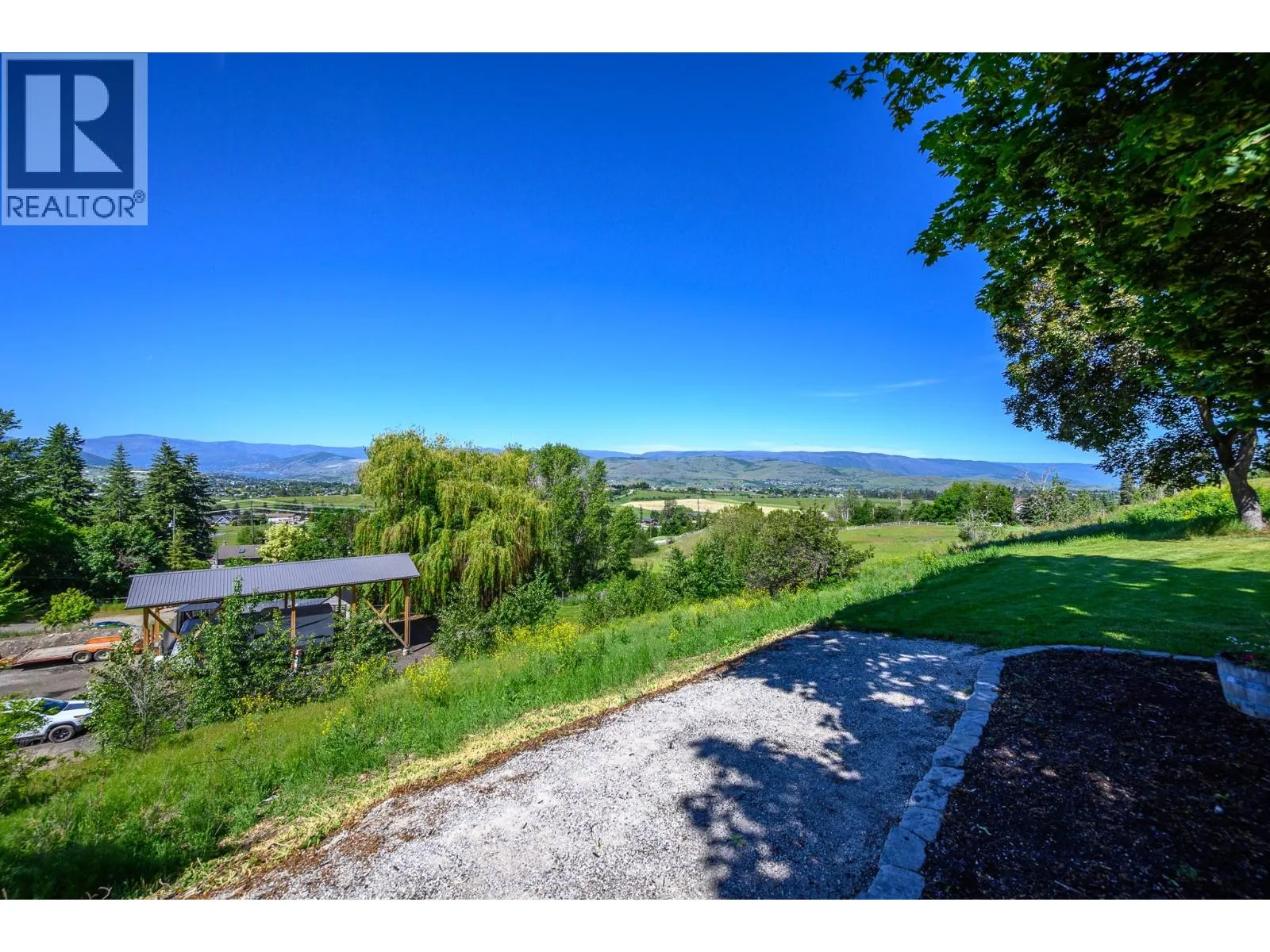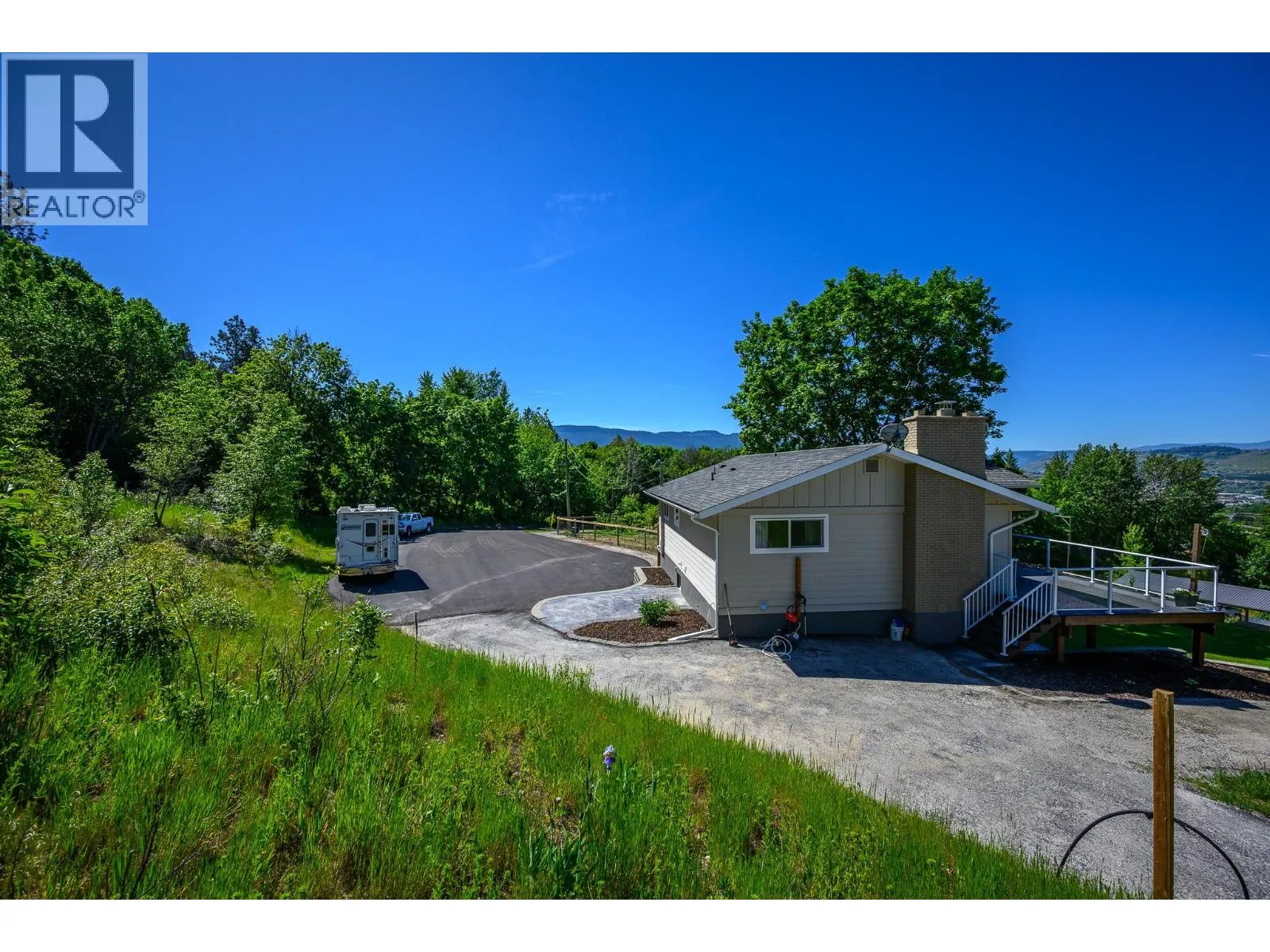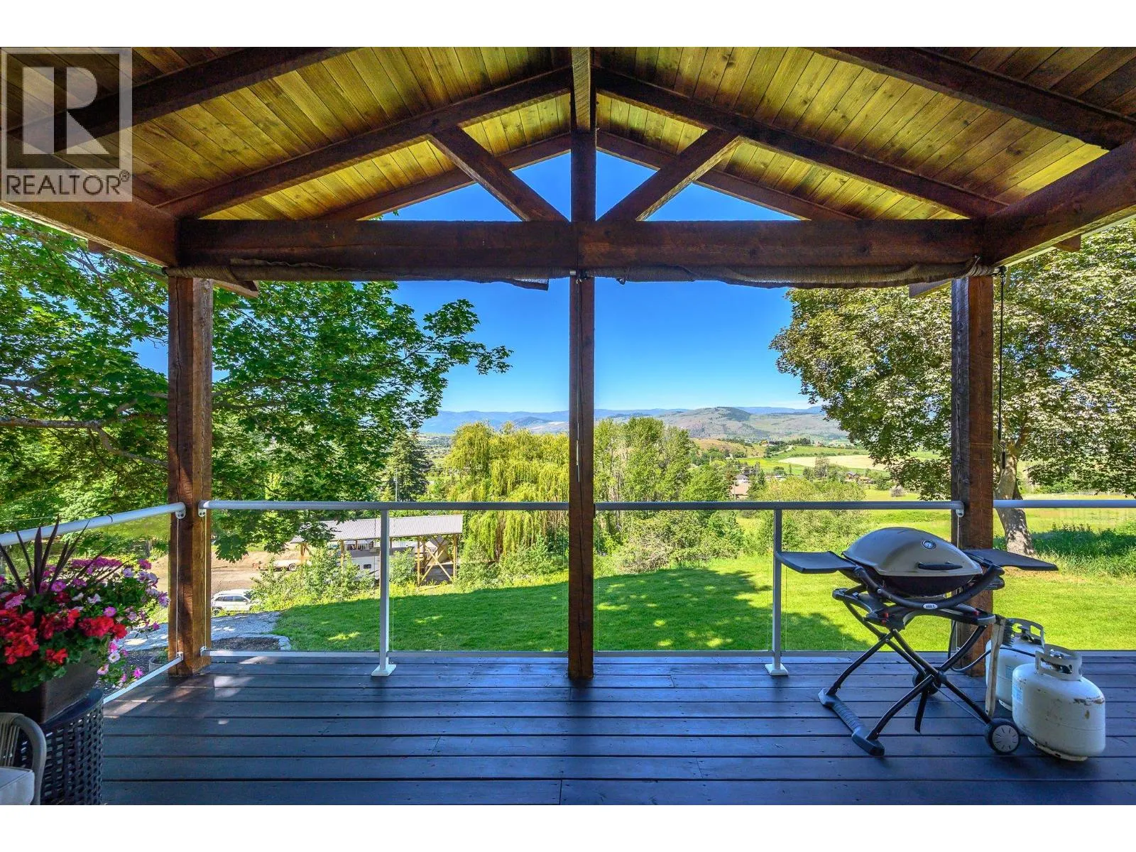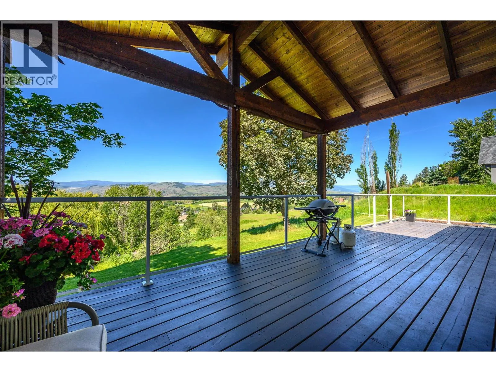 Experience the best of both worlds with this exceptional 2.68-acre view property in Vernon's South BX. Enjoy the peace of country living combined with easy access to schools (Hillview & VSS catchment), recreation, and downtown Vernon, all just minutes away. This fully fenced, gated, and low-maintenance property boasts a newly-paved, tree-lined driveway leading to an oversized parking area and stunning panoramic valley views stretching from Okanagan Lake to Swan Lake. The updated 4-bedroom, 2-bathroom family home is meticulously kept. The upper level features an open-concept layout with hardwood floors and a new kitchen with quartz countertops, an island, and newer appliances. A cozy living room with a wood-burning fireplace, 2 bedrooms, and a bathroom complete this level. Downstairs, find the primary bedroom with walk-out access to a covered patio, an additional bedroom, a full bathroom, and laundry room. The impressive post and beam deck is an incredible covered space perfect for entertaining and enjoying the spectacular views, relaxation and Okanagan sunsets. Outside, a large, fenced garden with fruit trees, a firepit, and ample privacy create your personal sanctuary. Extra storage can be found in the two-leveled shop with power, a Sea Can, and covered RV storage with power and water. The zoning allows for a detached secondary dwelling OR a secondary suite, offering incredible flexibility for your future needs. Don't miss this opportunity to own a piece of Vernon paradise! (id:27476)