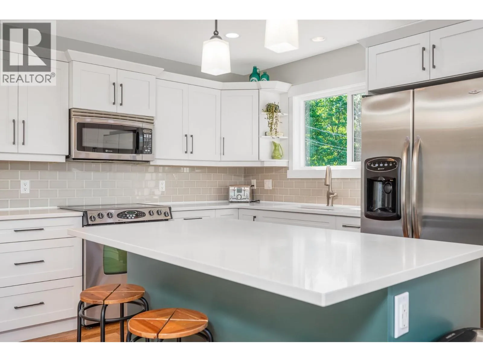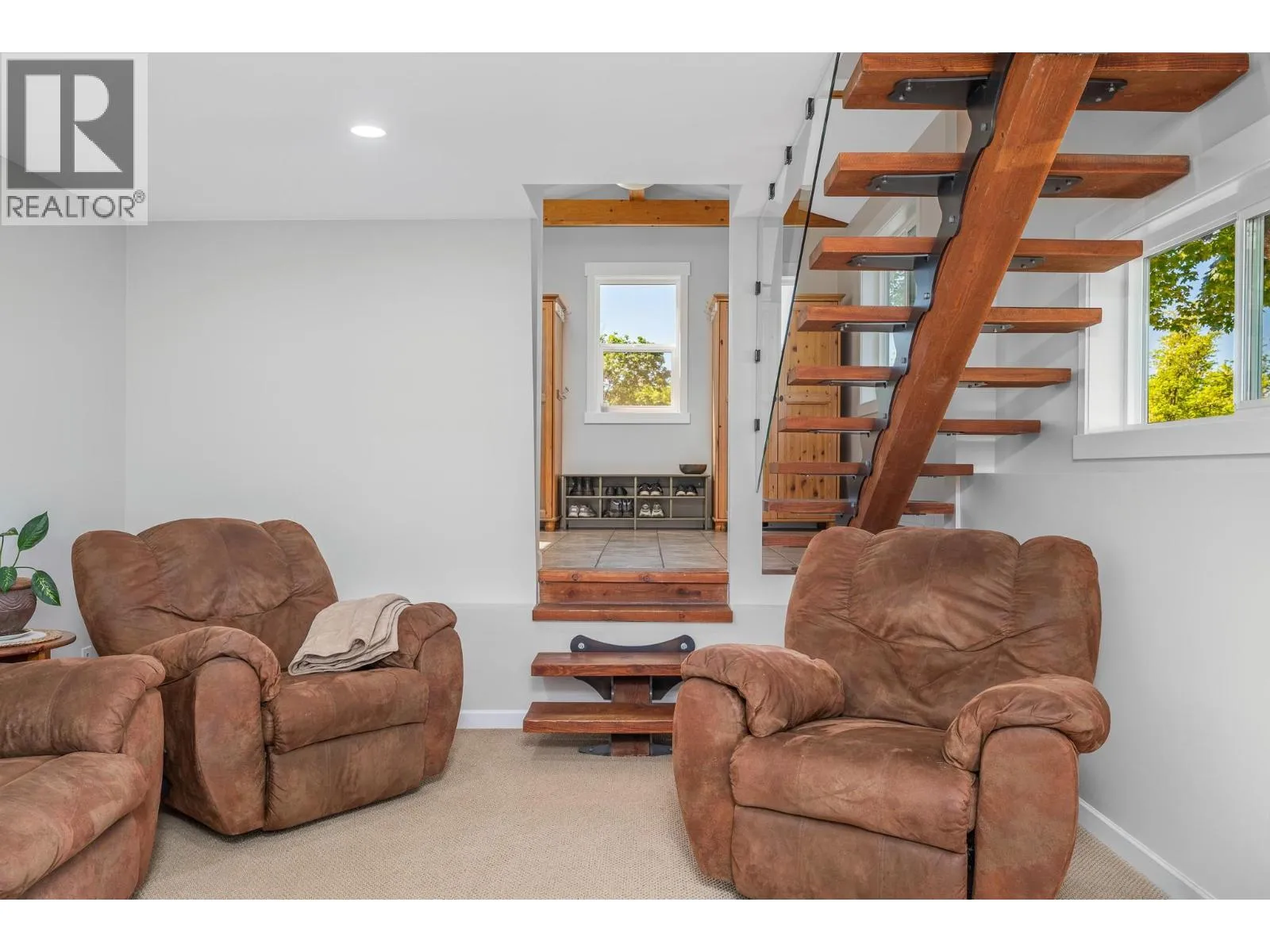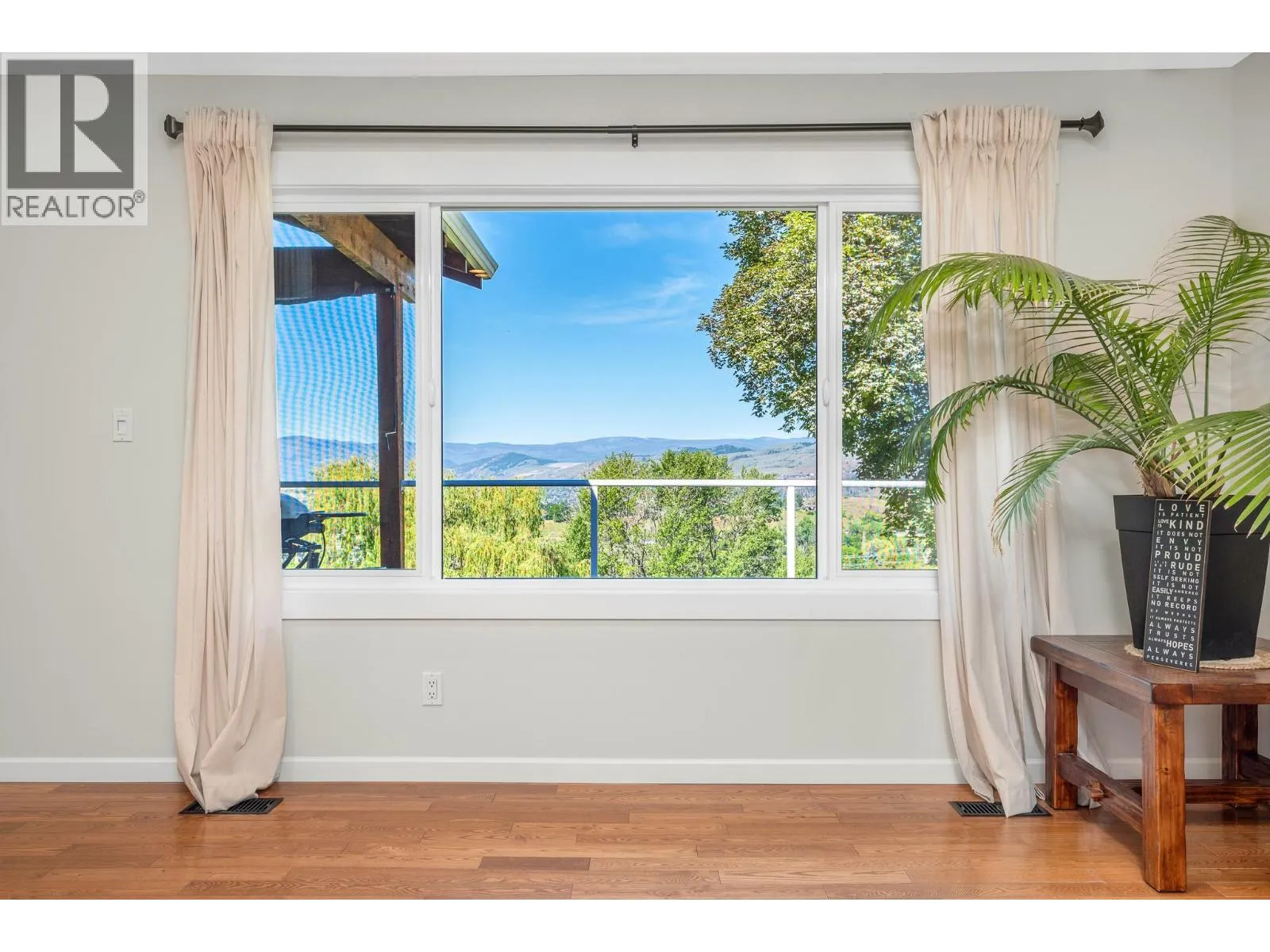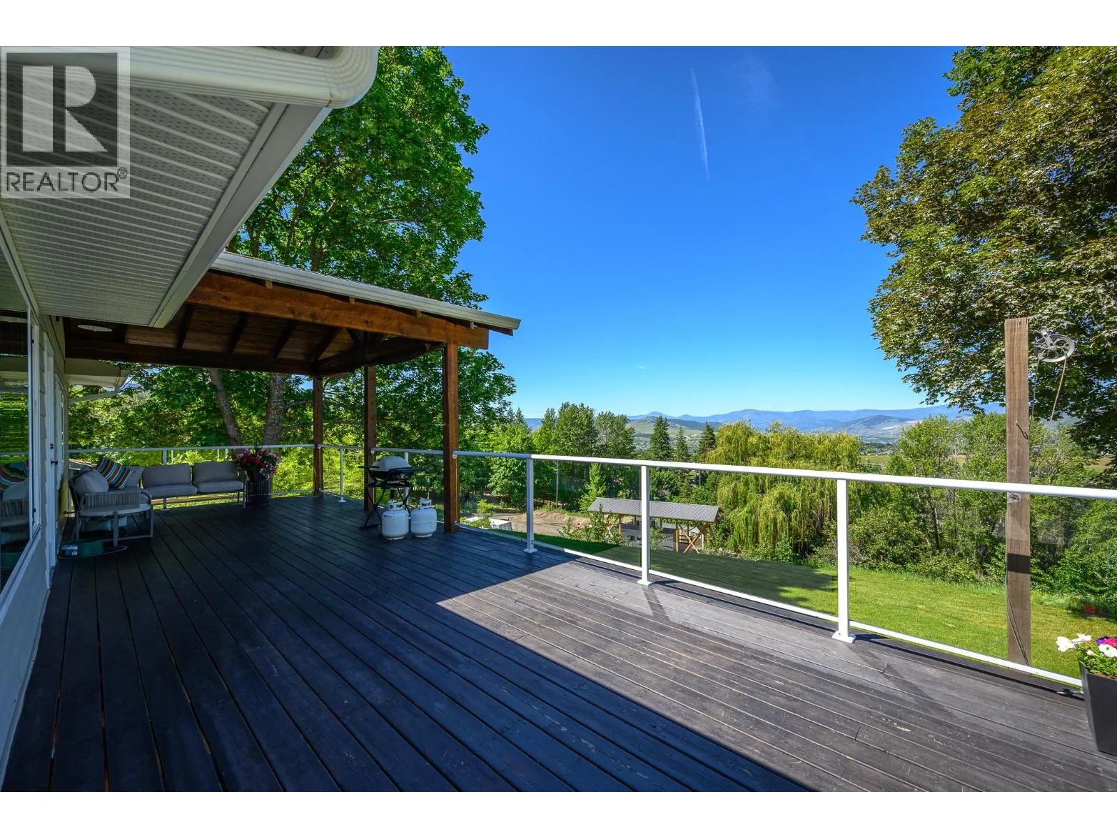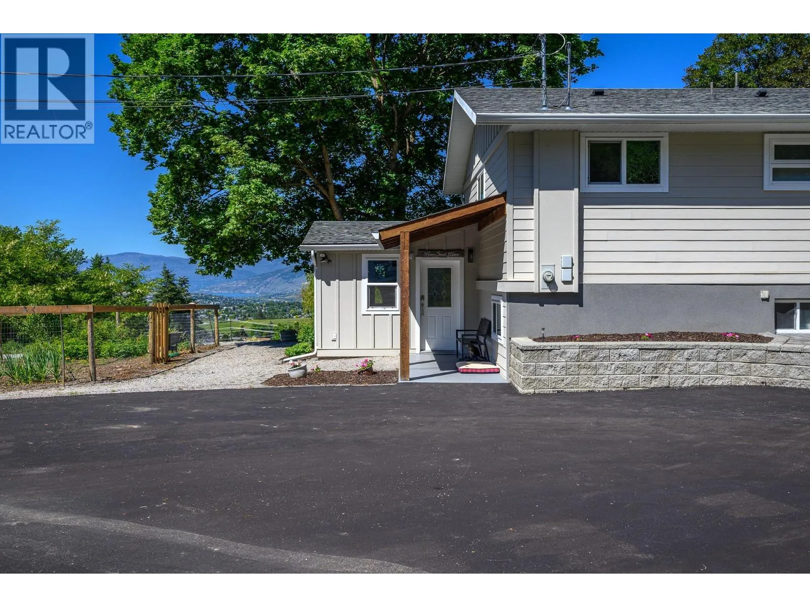 Experience the best of both worlds with this exceptional 2.68-acre view property in Vernon's South BX. Enjoy the peace of country living combined with easy access to schools (Hillview & VSS catchment), recreation, and downtown Vernon, all just minutes away. This fully fenced, gated, and low-maintenance property boasts a newly-paved, tree-lined driveway leading to an oversized parking area and stunning panoramic valley views stretching from Okanagan Lake to Swan Lake. The updated 4-bedroom, 2-bathroom family home is meticulously kept. The upper level features an open-concept layout with hardwood floors and a new kitchen with quartz countertops, an island, and newer appliances. A cozy living room with a wood-burning fireplace, 2 bedrooms, and a bathroom complete this level. Downstairs, find the primary bedroom with walk-out access to a covered patio, an additional bedroom, a full bathroom, and laundry room. The impressive post and beam deck is an incredible covered space perfect for entertaining and enjoying the spectacular views, relaxation and Okanagan sunsets. Outside, a large, fenced garden with fruit trees, a firepit, and ample privacy create your personal sanctuary. Extra storage can be found in the two-leveled shop with power, a Sea Can, and covered RV storage with power and water. The zoning allows for a detached secondary dwelling OR a secondary suite, offering incredible flexibility for your future needs. Don't miss this opportunity to own a piece of Vernon paradise! (id:27476)