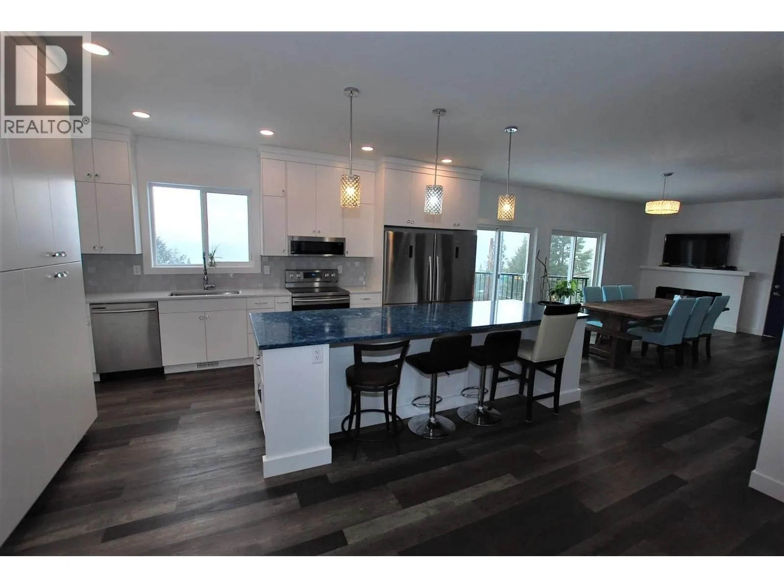 Welcome to Westshore Estates nestled away overlooking the Spectacular Okanagan Lake with Breathtaking views. This Stunning home which is 4600+ sq ft features an open concept contemporary home in a beautiful quiet setting. $25,000+ in landscaping. The home features 6 bedrooms each with their own walk-in closets, 5 bathrooms, a large open kitchen space, great for entertaining family and friends. Boasts a total of 2265 sq ft rooftop patio on 2 levels with a stunning 180 view of the lake & mountains. The kitchen comes equipped with a 10' island, plenty of cupboard space with a walk in pantry. Includes stainless steel appliance package with double SS fridge. The master room shows stunning views of the lake from your bed and patio rooftop with Large spacious ensuite with soaker tub and large shower with frameless glass doors. Fully self contained area with its own laundry and separate entrance for your holiday guests. The home has everything you need:2 fridges,2 dishwashers, 2 microwaves, 3 laundry sets, 1 stove as well as 2 furnaces and 2 hot water tanks , 2 wood stoves and 1 electric fireplace. the oversized garage has high ceilings to accommodate a lift & pad for parking of 6 cars or toys. Home can easily have 3 Airbnb's or Mother-in-law suites. NO SPECULATION TAX! Community has school buses to both Vernon & West Kelowna. 20 minutes to Vernon 40 min to Kelowna. large community park. 2 minutes to the beach. This home is being sold 'as is where is' (id:27476)