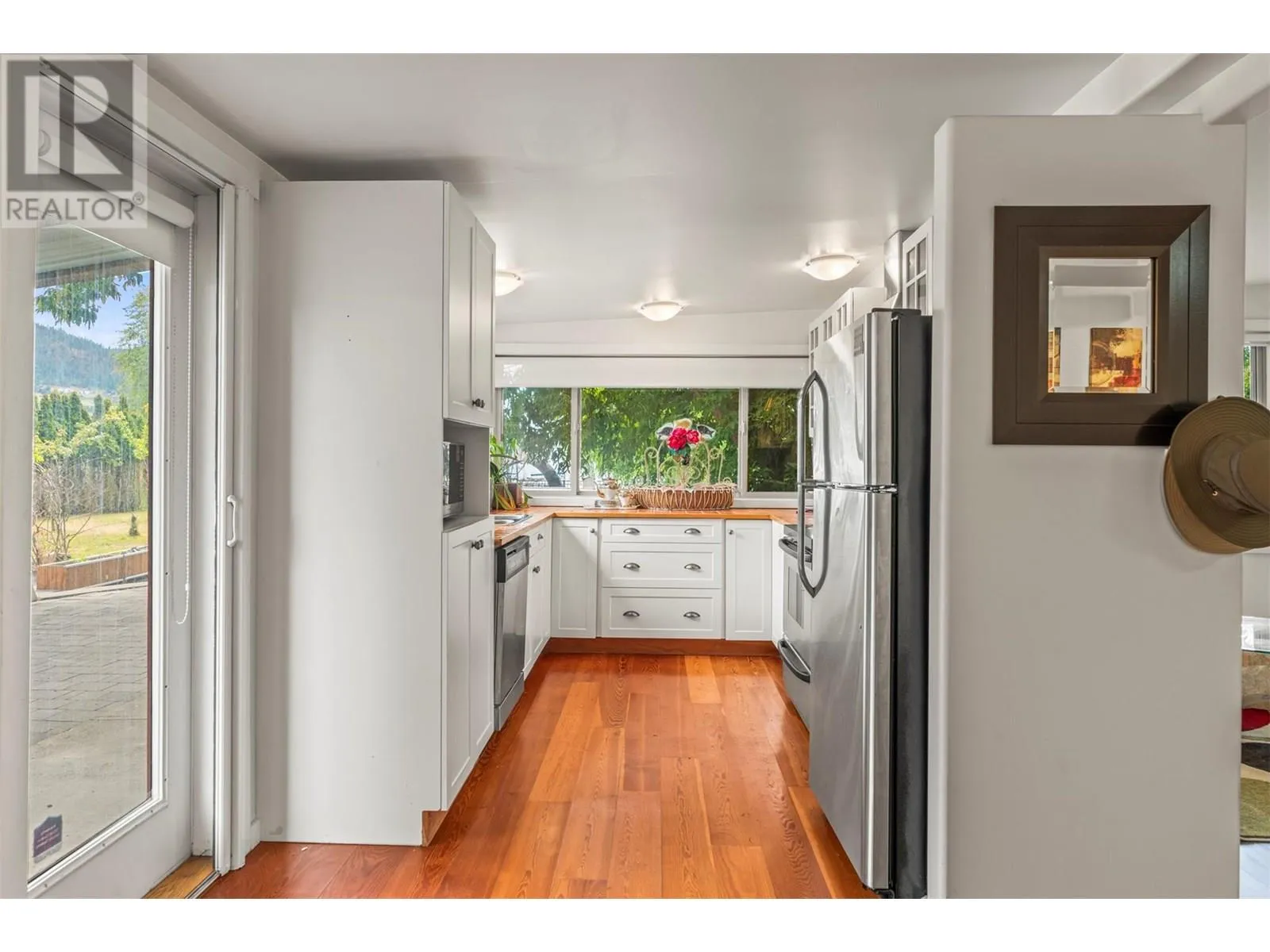 Discover exceptional waterfront living in the desirable area of Okanagan Landing, this rare double lot boasts 100 feet of pristine Okanagan Lake frontage on a spacious 0.36-acre landscape. Featuring a newly built dock, detached double garage, and ample space for redevelopment, the potential-filled property could serve as a serene retreat or future investment. Enjoy breathtaking lake and mountain views from your private yard, complete with a working hot tub for year-round relaxation.The charming 3-bedroom, 2-bathroom rancher has been updated with fresh paint, new flooring, and a hot water heater, combining vintage appeal with modern comfort. Inside, youâll find a bright, functional layout, baseboard heating, and essential appliances included. Whether you're boating off your new dock, relaxing in the fenced yard, or exploring redevelopment opportunities, this lakefront gem offers it all. With municipal water, irrigation, RV parking, and immediate possession available, your Okanagan dream lifestyle starts here. (id:27476)