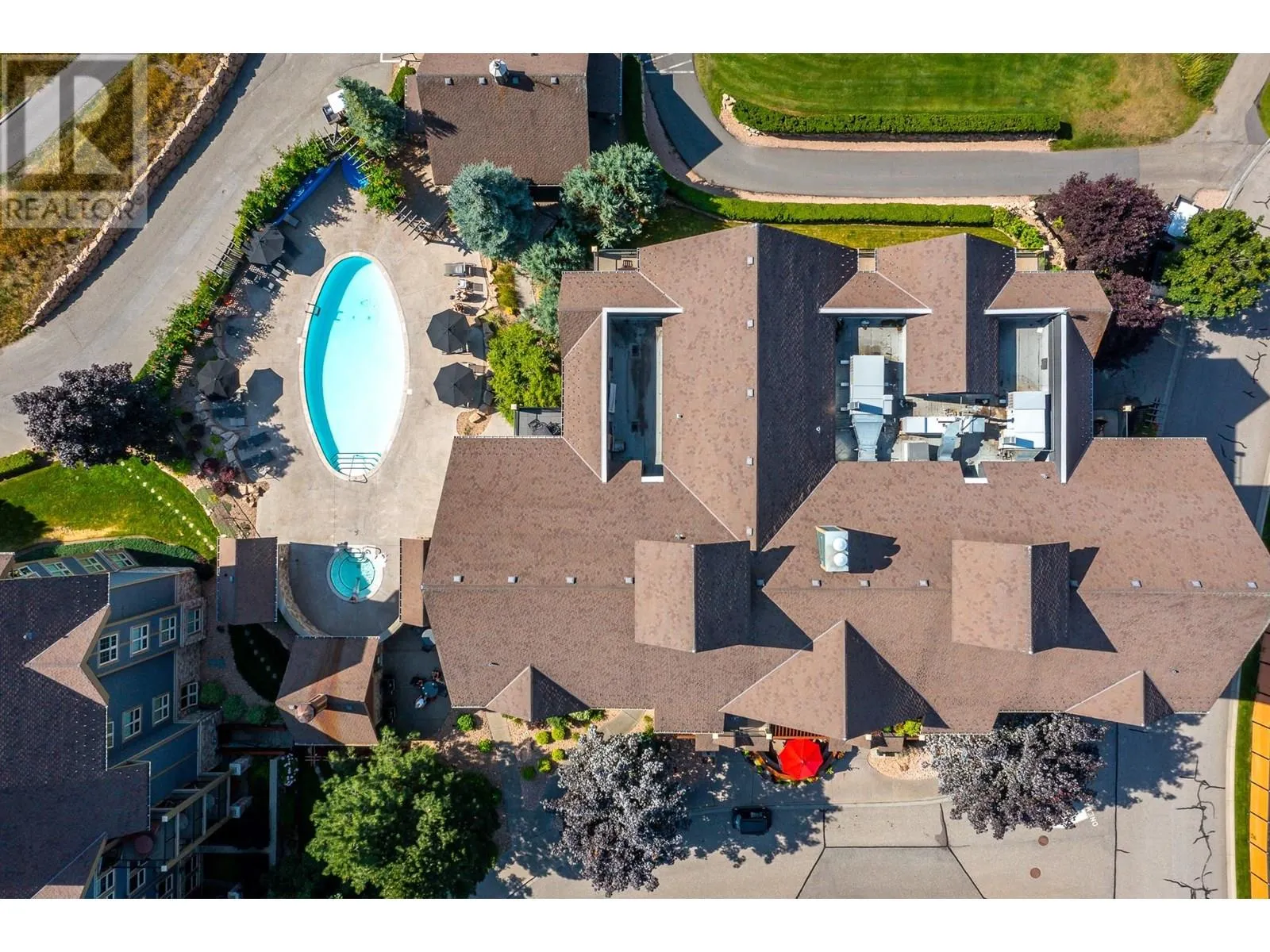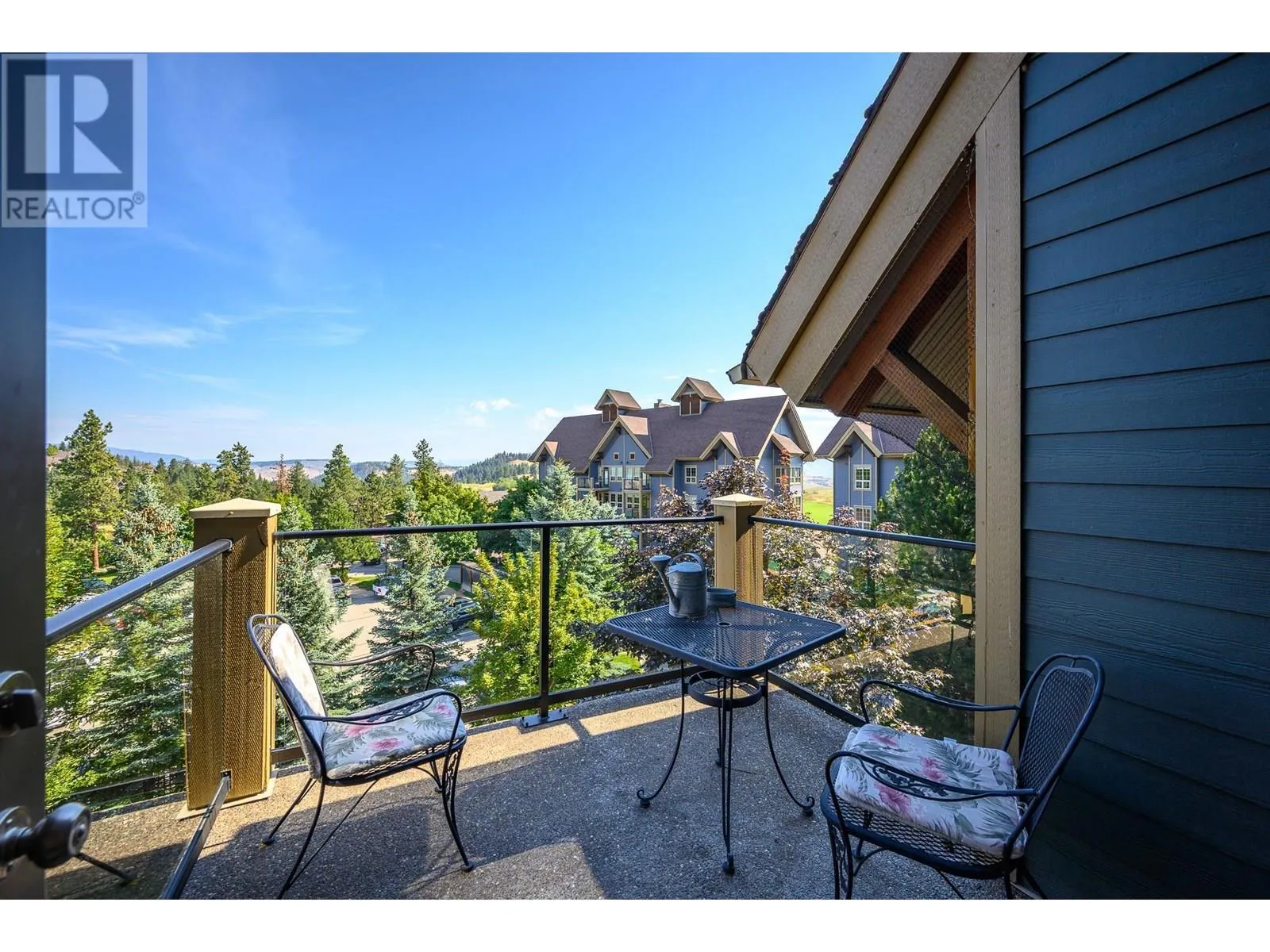 Move right in to this furnished, full time occupancy studio suite, in the heart of the World renowned Predator Ridge Golf Resort. Having not been in the rental pool, this top floor corner unit has a been very well maintained. With a lovely vaulted ceiling, huge windows and a nice sized deck, with views of the village, mountains and golf course it's an ideal getaway. Comes fully furnished and decorated with two single beds, 2 lounge chairs, TV, wardrobe, tables, appliances and more. Resort amenities include 36 hole Championship Golf course, fitness centre, swimming pools, BBQ area, clubhouse, hiking and biking trails. Enjoy the restaurant and coffee shop or get supplies at the grocery store right in the building. Also close to Sparkling Hills Resort and Kur-Spa, if you need some extra pampering. Affordable opportunity to own at Predator Ridge. This property is one of the few that are available, for full time occupancy or rent it through Predator Ridge Resort Accommodations. NO GST. (id:27476)