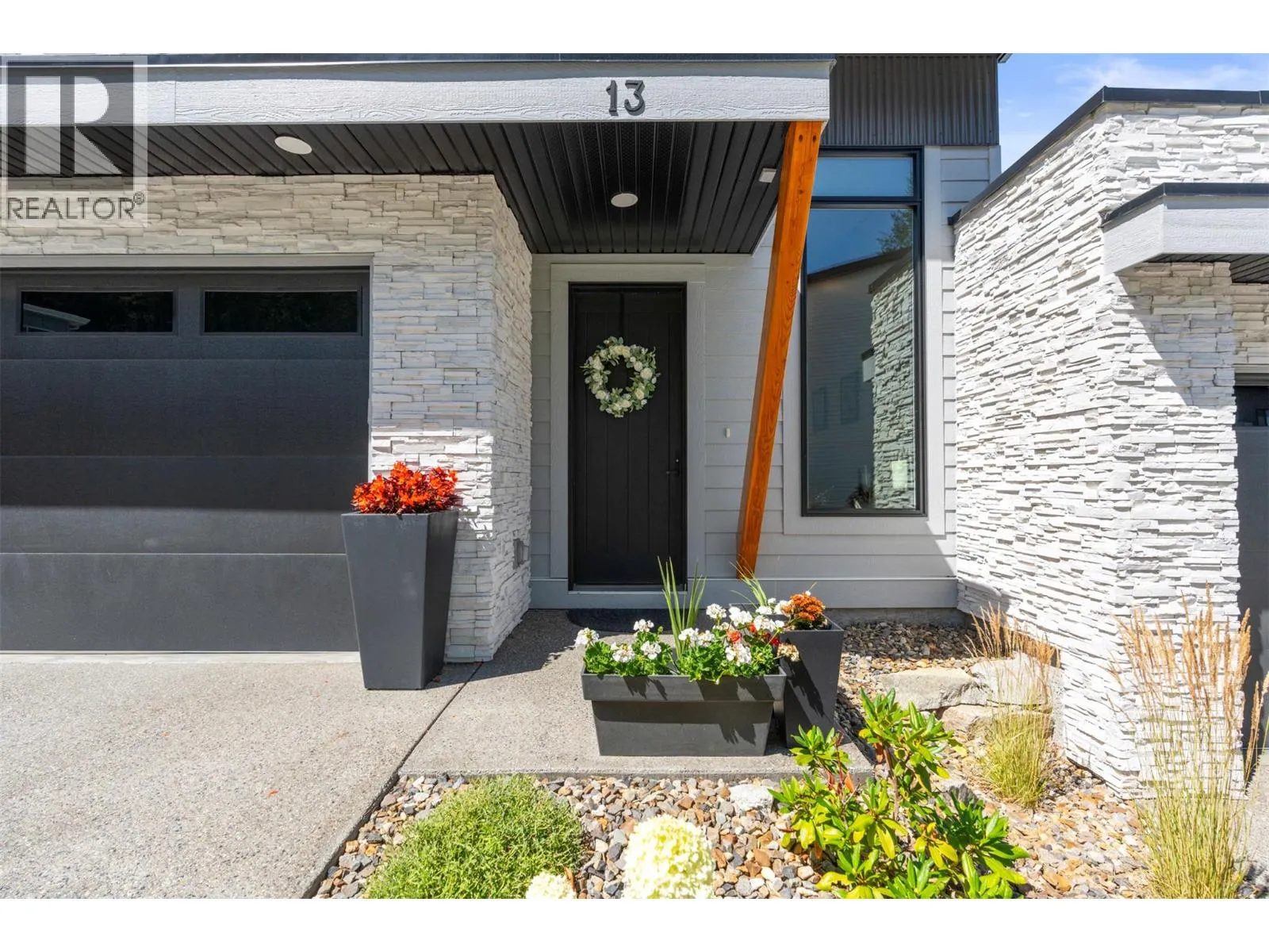 Resort-style living, elevated. Welcome to 13â269 Diamond Wayâan exceptional townhome tucked inside the iconic Predator Ridge community. With West Coast architecture, modern elegance, and panoramic views, this 3-bedroom, 3-bath home is your gateway to Okanagan luxury. Soaring vaulted ceilings and expansive windows flood the open-concept living space with natural light, while high-end finishes and a neutral palette set a refined tone throughout. The chefâs kitchen is a showstopperâquartz countertops, stainless steel appliances, and a generous island perfect for morning coffee or evening wine with friends. The primary suite is pure serenity with spa-inspired touches, double vanity, walk-in shower, and access to your private patio. Two additional bedrooms offer space for guests or a home office. Step outside to your covered outdoor living area, where views and quiet evenings await. Enjoy access to two championship golf courses, a state-of-the-art fitness centre, tennis courts, pools, restaurants, and an award-winning spaâall within walking distance. Miles of nature trails and a strong sense of community make this more than a homeâitâs a lifestyle. Whether youâre searching for a year-round residence or the ultimate seasonal escape, this rare opportunity in Predator Ridge delivers. Live where others vacation. Every day. (id:27476)