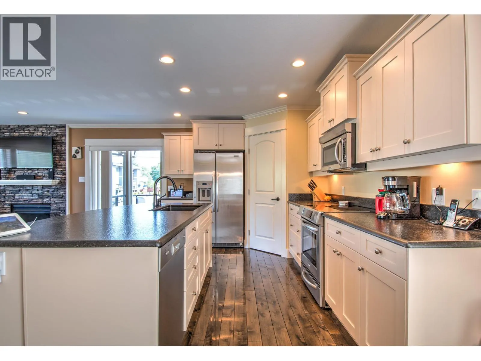 Check out this beautiful single-family home offering quality, comfort, and a fantastic location on Okanagan Landing near Okanagan Lake. Rebuilt from the foundation up in 2010 with exceptional workmanship and materials, this home features an open-concept main floor with hardwood flooring, crown moulding, and a stunning floor-to-ceiling stone surround on the gas fireplace! The spacious kitchen has granite countertops, a walk-in pantry, and a smooth flow out onto the east-facing covered deckâperfect for a sunny morning coffee or shaded evening BBQs! Downstairs is a guest bedroom (or private office) and a nice-sized but cozy family room with a wood stove, plus a luxurious steam shower for your own at-home spa experience! The large, family-friendly lot has RV parking and is a short commute to both Ellison Elementary and Fulton High School. not too far down the road are the Marshall Fields sports fields and recreation facilities, a dog park, various beaches, and hiking trails. Additional features include on-demand hot water, central heating and air conditioning, and plenty of space for the whole family to enjoy. This place is move-in-ready with no renovations needing to be done! A Vernon home that blends quality, comfort, and convenience, this is one you wonât want to miss. (id:27476)