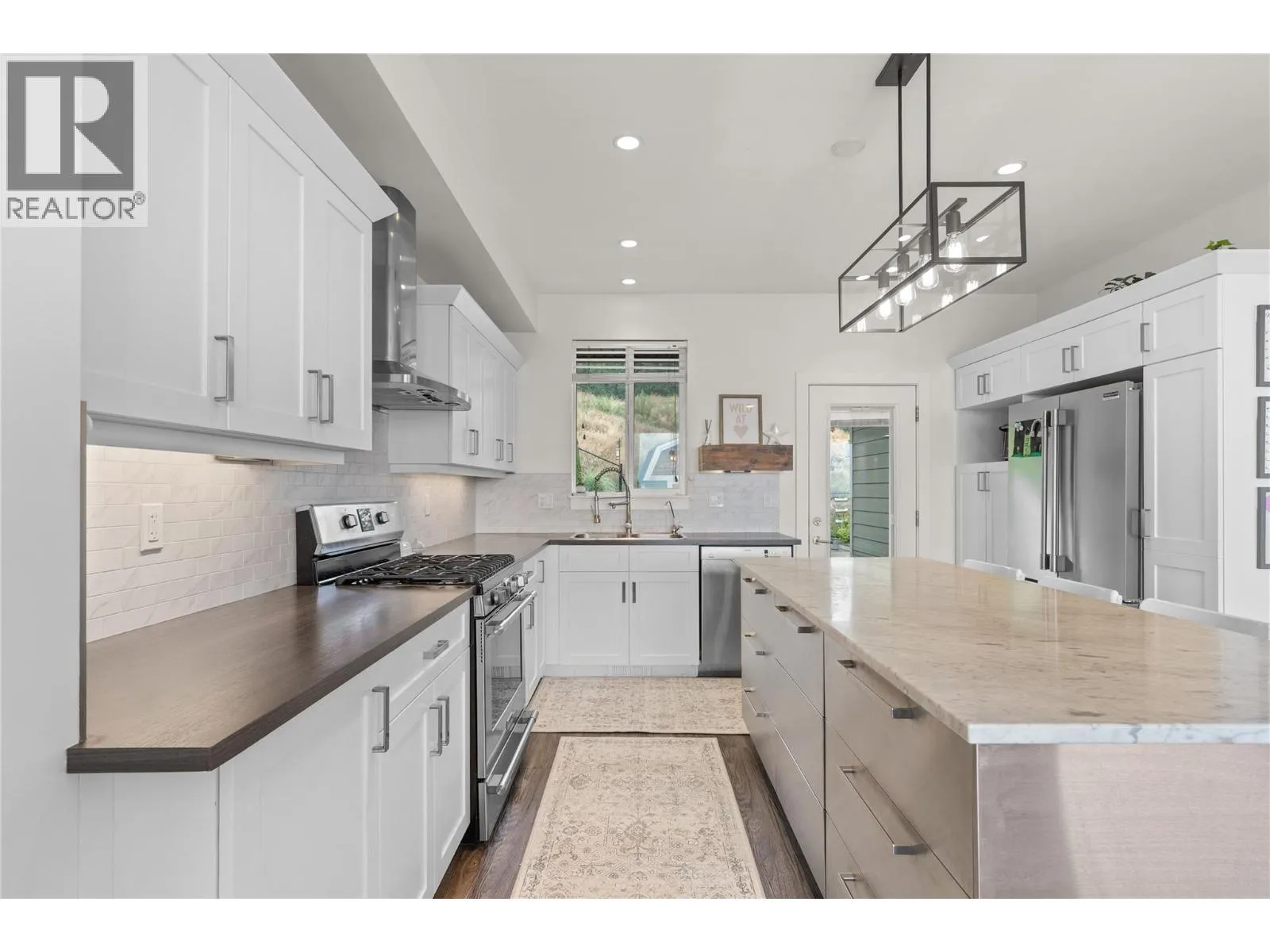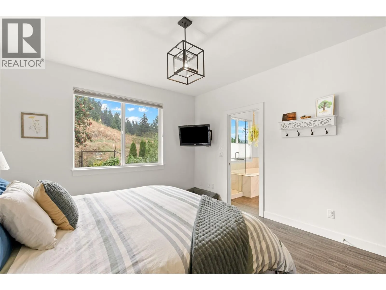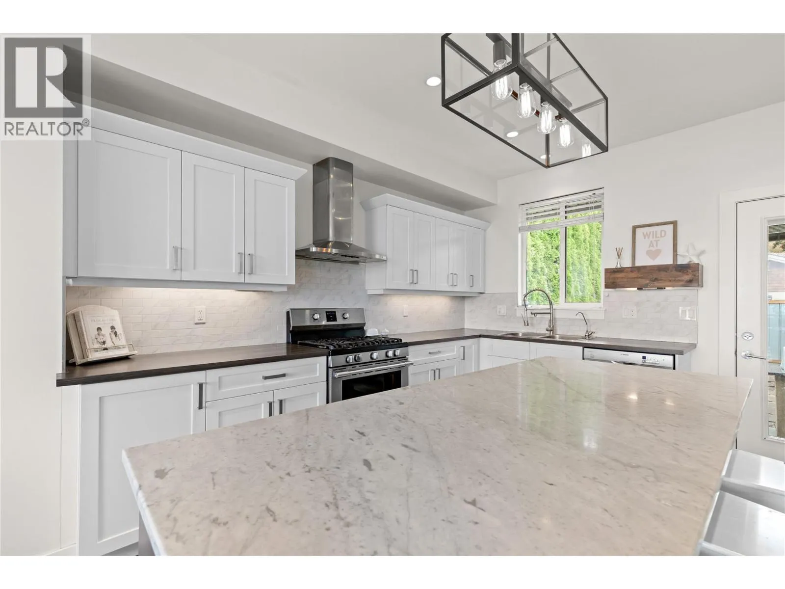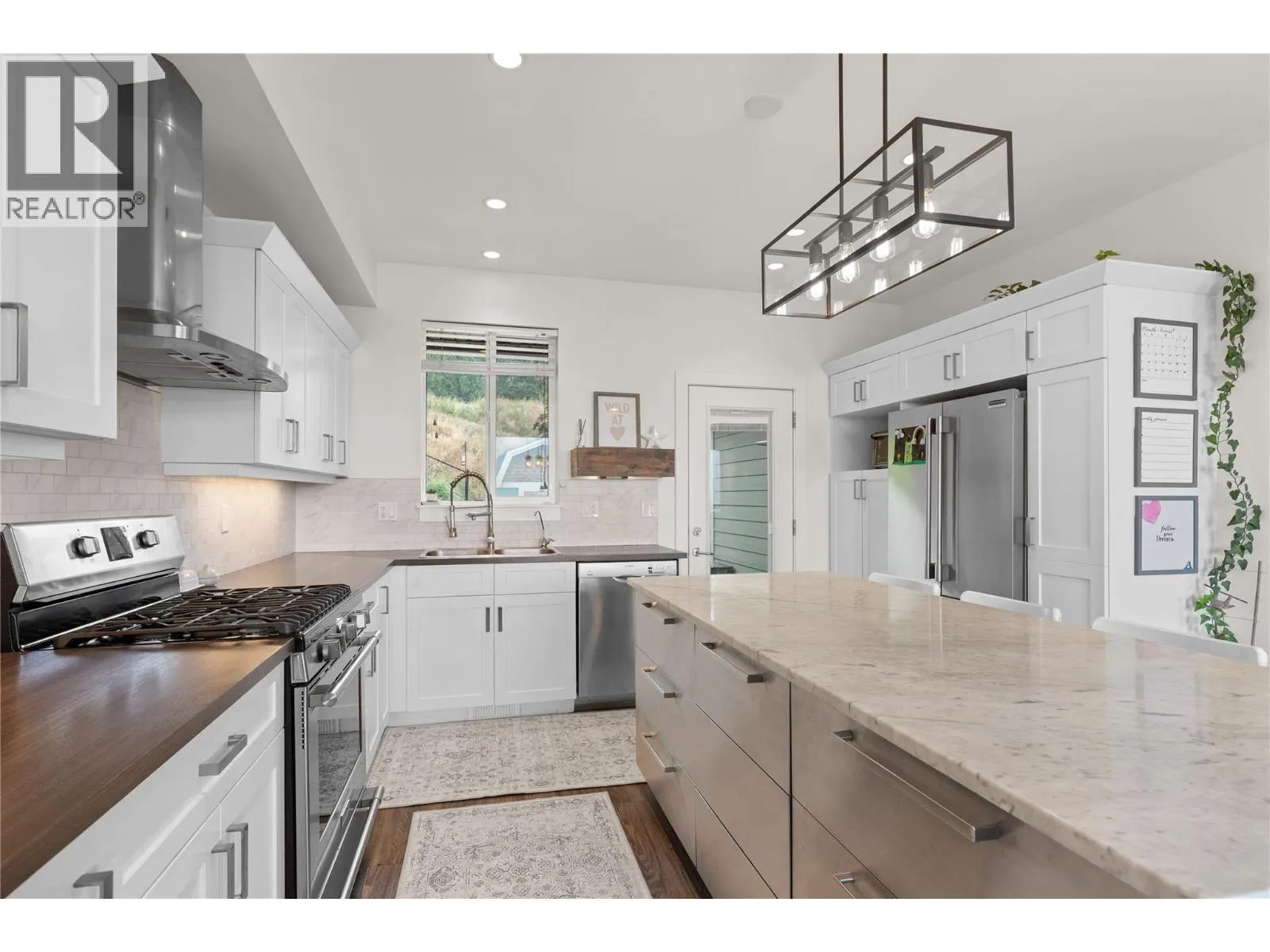 Welcome to this immaculate executive home in Vernonâs desirable Foothills, perfectly blending modern country design with functionality & breathtaking Okanagan views. This spacious 3-bed, 2-bath home offers an open-concept layout with 9-ft ceilings, a chef-inspired kitchen featuring a 7-ft granite island, high-end SS appliances, the spacious living & dining areas flow seamlessly toward a view-filled balcony, perfect for morning coffee or evening glass of wine. Expansive windows showcase stunning views of the mountains & the valley beyond. The main floor includes 2 beds, a 4 pc bath & the luxurious primary suite with a spa-like 5pc ensuite boasting a soaker tub, glass shower, & w/i closet. On the entry level, an office (or optional 4th bedroom) sits alongside a fully self-contained 1-bedroom, 1-bath in-law suite with its own entranceâideal for extended family, guests, or extra income. Step outside to your private, fully fenced yard backing onto green space. Designed for relaxation & entertaining, it features a hot tub, & a natural gas BBQ station.Additional highlights include attached garage, built-in vacuum, ample storage, & a quiet, safe, no-through street location.Just minutes to downtown Vernon & a short drive to Silver Star Ski Resort, this property delivers year-round enjoyment of the Okanagan lifestyle. Whether youâre seeking a sophisticated family home, a revenue property, or both, this Foothills gem offers it allâstyle, comfort, & practicality with unforgettable views. (id:27476)