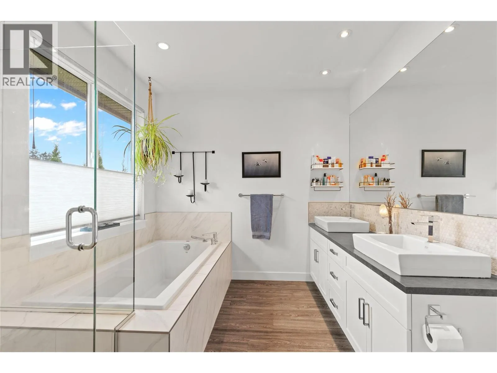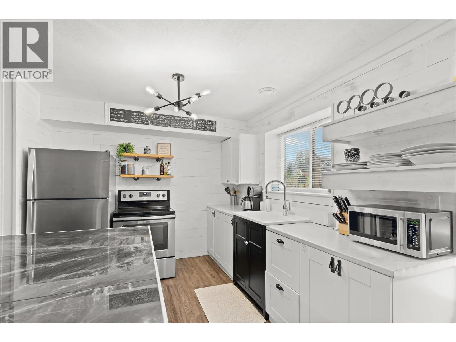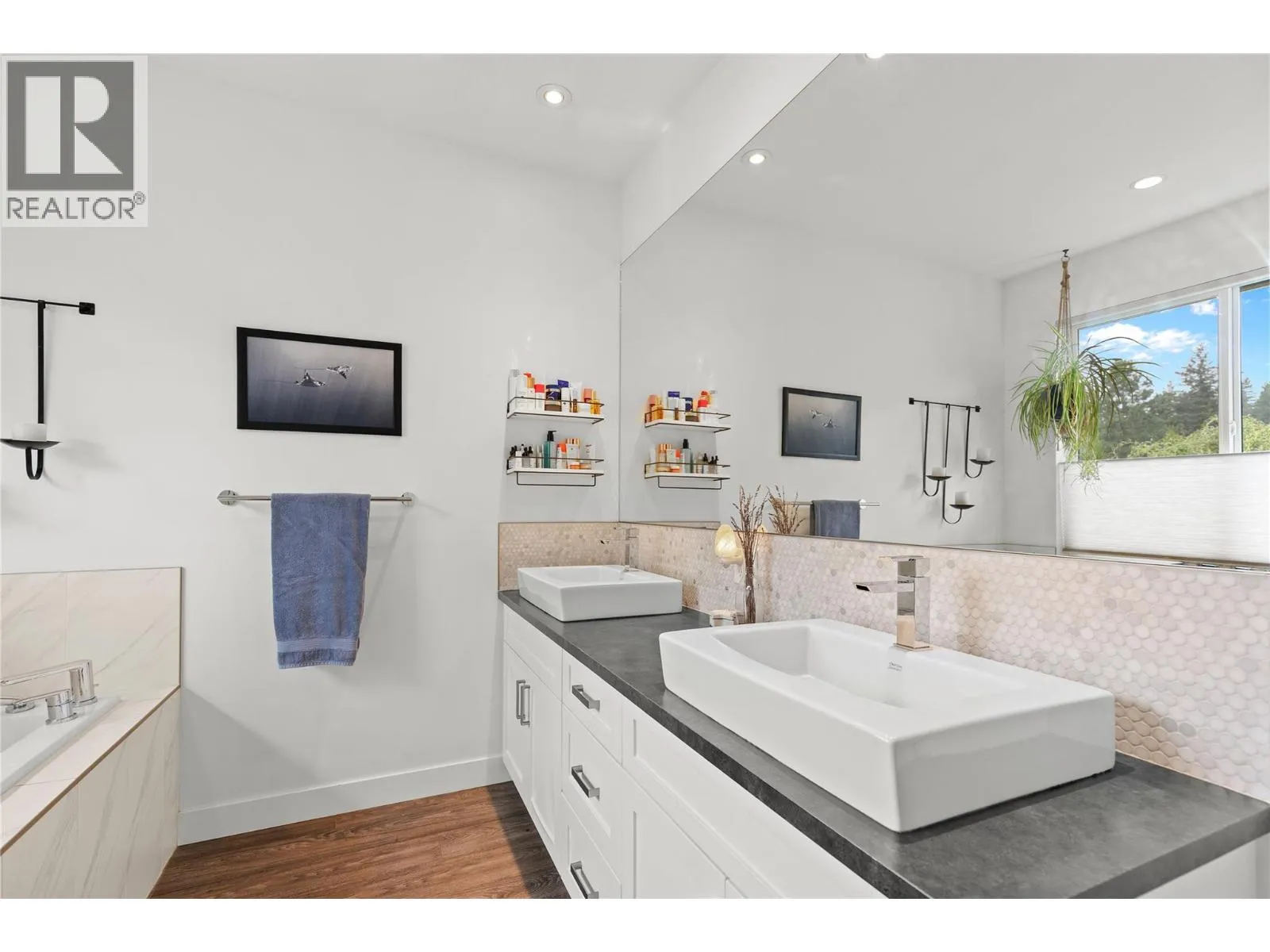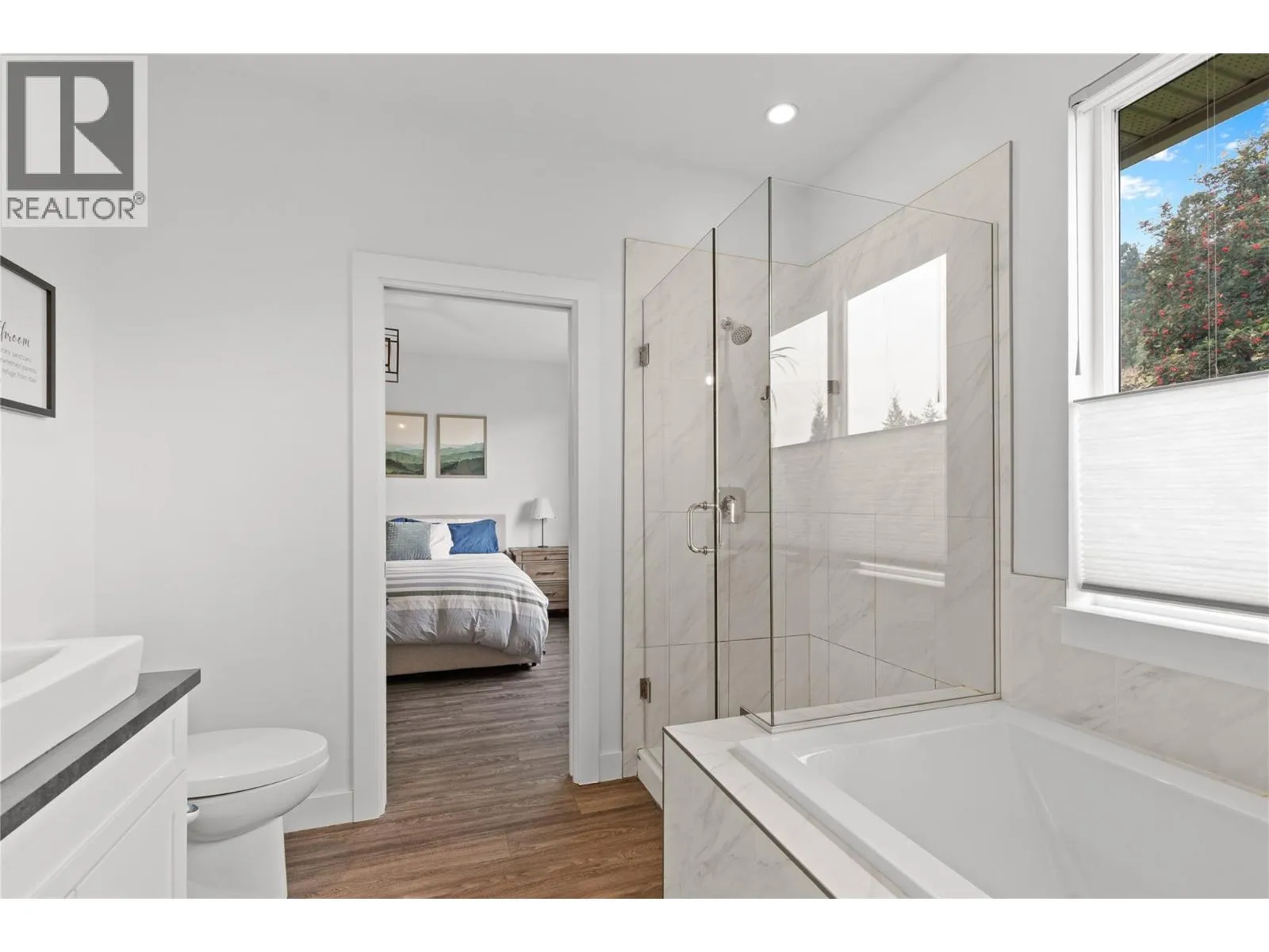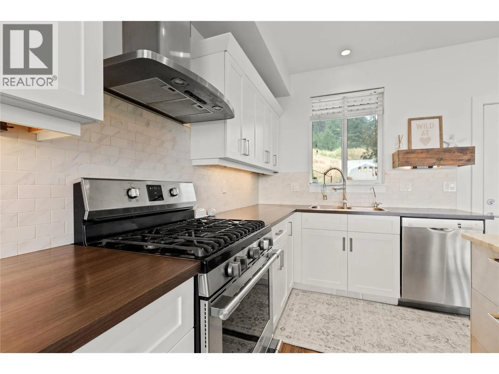 Welcome to this immaculate executive home in Vernonâs desirable Foothills, perfectly blending modern country design with functionality & breathtaking Okanagan views. This spacious 3-bed, 2-bath home offers an open-concept layout with 9-ft ceilings, a chef-inspired kitchen featuring a 7-ft granite island, high-end SS appliances, the spacious living & dining areas flow seamlessly toward a view-filled balcony, perfect for morning coffee or evening glass of wine. Expansive windows showcase stunning views of the mountains & the valley beyond. The main floor includes 2 beds, a 4 pc bath & the luxurious primary suite with a spa-like 5pc ensuite boasting a soaker tub, glass shower, & w/i closet. On the entry level, an office (or optional 4th bedroom) sits alongside a fully self-contained 1-bedroom, 1-bath in-law suite with its own entranceâideal for extended family, guests, or extra income. Step outside to your private, fully fenced yard backing onto green space. Designed for relaxation & entertaining, it features a hot tub, & a natural gas BBQ station.Additional highlights include attached garage, built-in vacuum, ample storage, & a quiet, safe, no-through street location.Just minutes to downtown Vernon & a short drive to Silver Star Ski Resort, this property delivers year-round enjoyment of the Okanagan lifestyle. Whether youâre seeking a sophisticated family home, a revenue property, or both, this Foothills gem offers it allâstyle, comfort, & practicality with unforgettable views. (id:27476)
