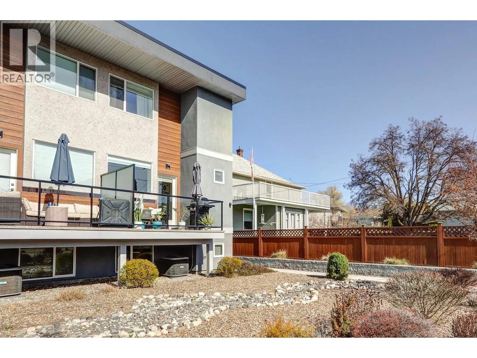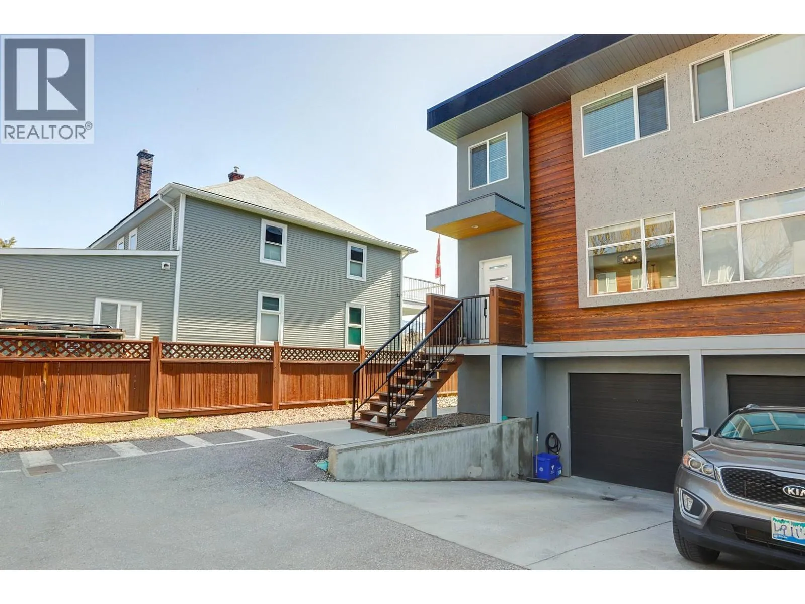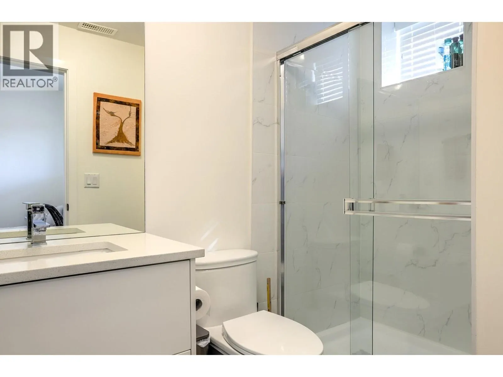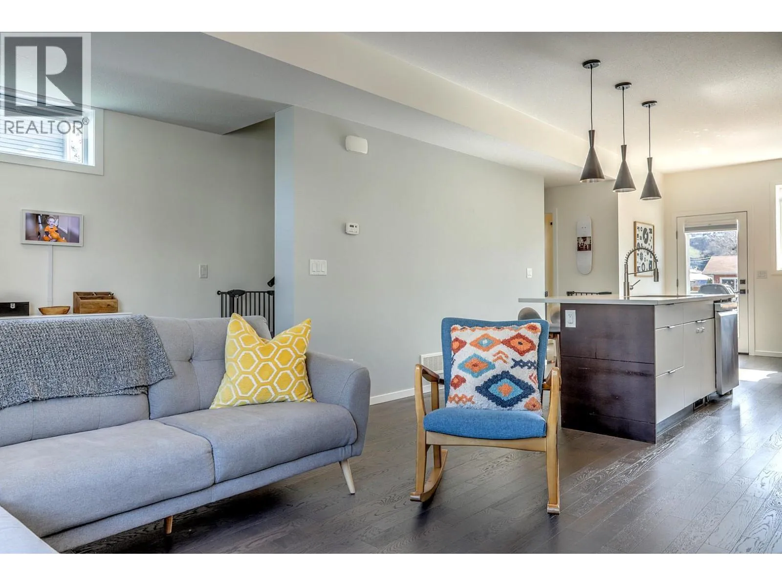 Stylish and spacious 2018-built end-unit townhouse in a quiet 11-unit complex with lovely hillside views and abundant natural light. Thoughtfully designed with engineered hardwood flooring, quartz countertops, modern cabinetry, tasteful wood accents, transom windows, tiled backsplash, quality fixtures, and newer, high-quality blinds on the main floor and natural gas hook up on the deck. The upper level offers two generous primary bedrooms, each with their own ensuite and walk-in closetâproviding ample space and comfort. The lower level includes a single-car garage, a storage room, and a versatile third bedroom with ensuite, which also works beautifully as a family room or office. Enjoy south-facing light and a great sense of privacy. Located just minutes from Okanagan Lake beaches and parks, Vernonâs popular pickleball courts, scenic hiking trails, and top-rated golf at The Rise. An excellent location for anyone who loves both nature and convenience. Pet friendly: one dog or one cat allowed. All measurements taken from iGuide. (id:27476)