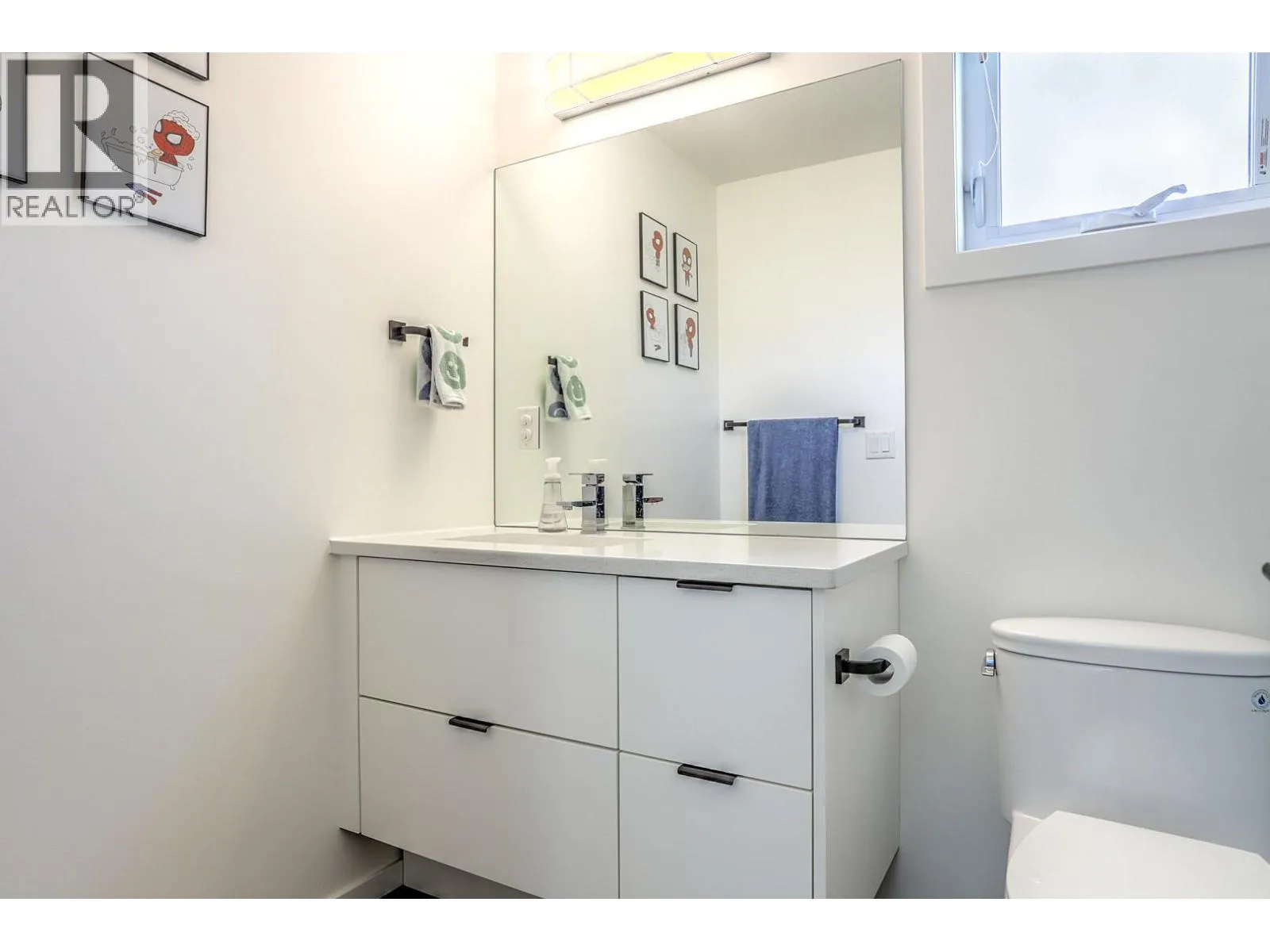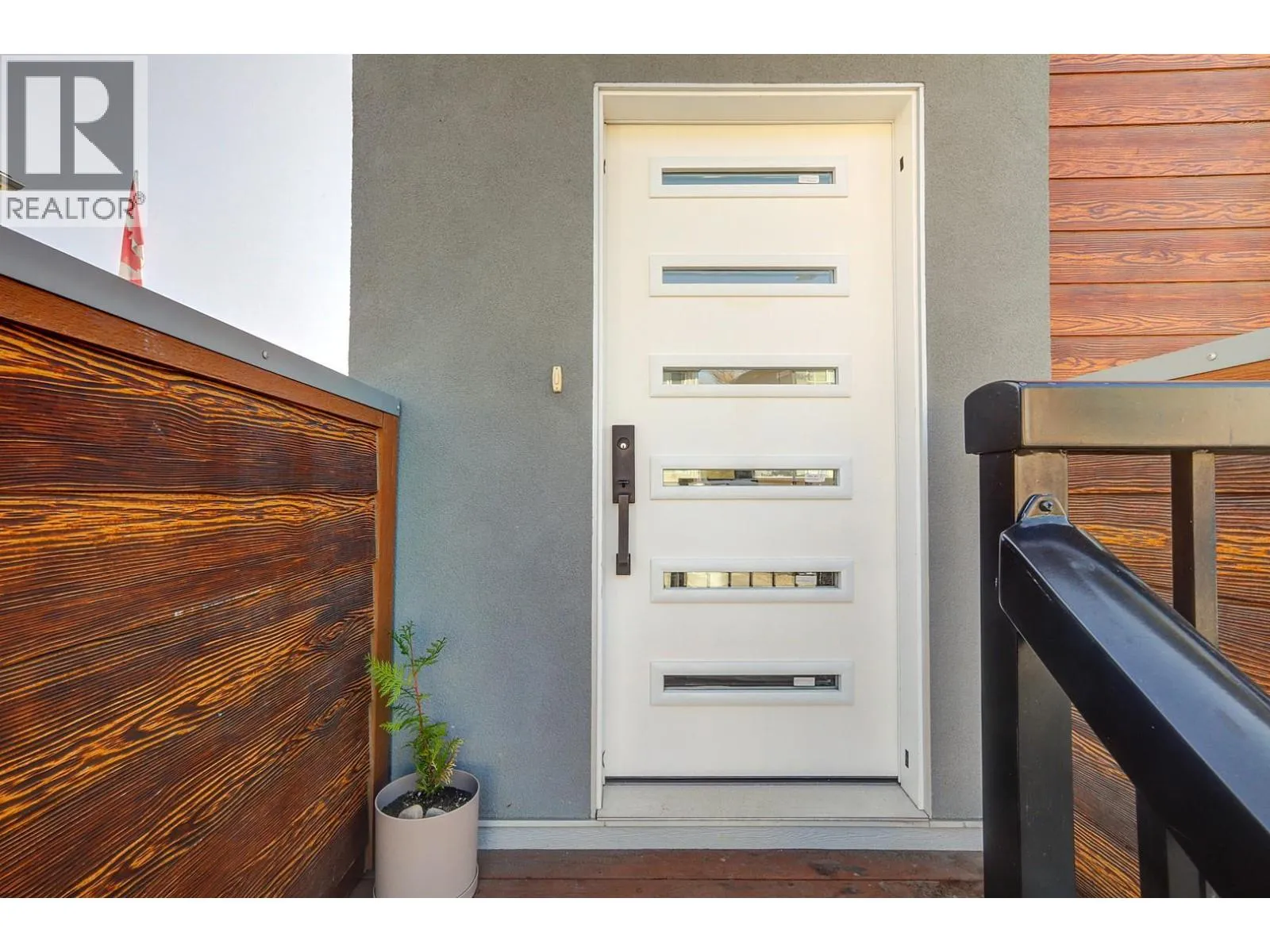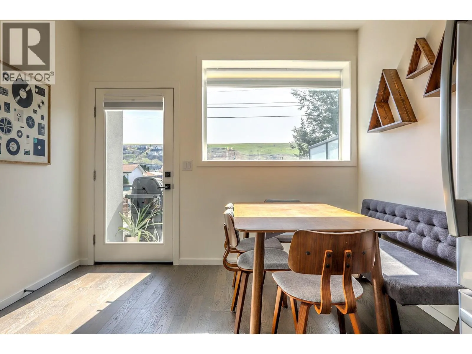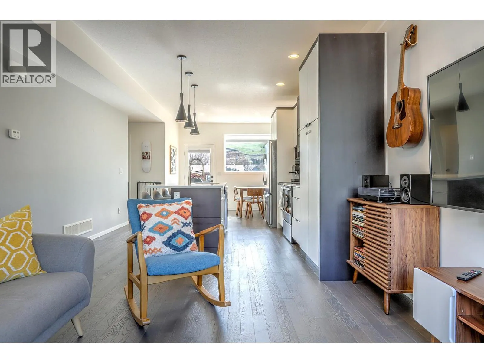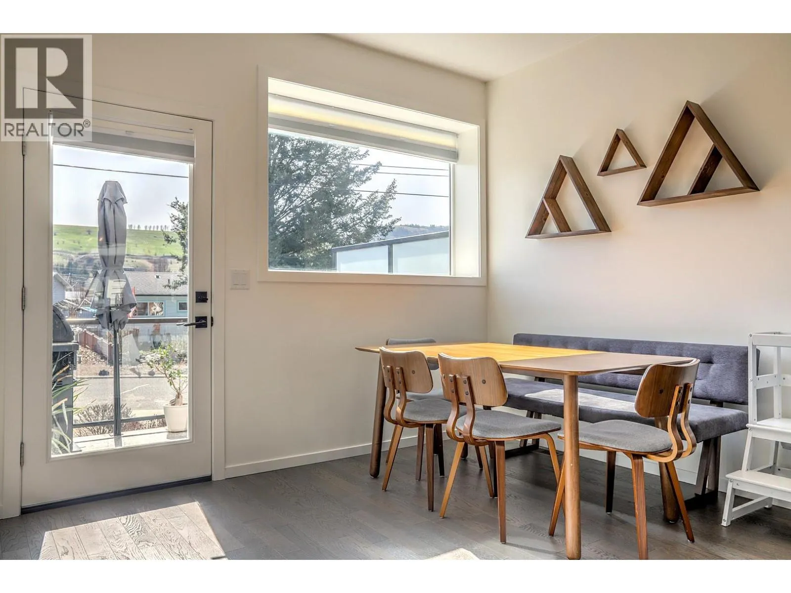 Stylish and spacious 2018-built end-unit townhouse in a quiet 11-unit complex with lovely hillside views and abundant natural light. Thoughtfully designed with engineered hardwood flooring, quartz countertops, modern cabinetry, tasteful wood accents, transom windows, tiled backsplash, quality fixtures, and newer, high-quality blinds on the main floor and natural gas hook up on the deck. The upper level offers two generous primary bedrooms, each with their own ensuite and walk-in closetâproviding ample space and comfort. The lower level includes a single-car garage, a storage room, and a versatile third bedroom with ensuite, which also works beautifully as a family room or office. Enjoy south-facing light and a great sense of privacy. Located just minutes from Okanagan Lake beaches and parks, Vernonâs popular pickleball courts, scenic hiking trails, and top-rated golf at The Rise. An excellent location for anyone who loves both nature and convenience. Pet friendly: one dog or one cat allowed. All measurements taken from iGuide. (id:27476)