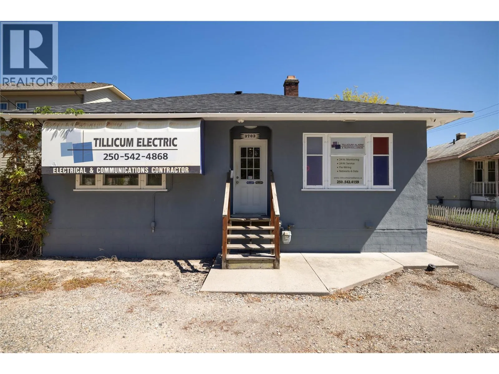 Outstanding redevelopment opportunity in Vernonâs downtown-adjacent area. This property is zoned CMUB (Commercial Mixed Use: Business), allowing for a wide variety of uses including multi-unit housing, mixed-use residential, office, retail, food and beverage, health services, and more. Notably, the zoning permits Small Scale Multi-Unit Housing on lots under 1,000 m² in this area, providing added flexibility for residential development. With density up to 3.5 FAR and height permitted to 6 storeys, the site offers excellent potential for a medium-scale mixed-use or residential project. The existing structure, approximately 842 sq ft on the main level with 2 bedrooms, 1 bathroom, and a kitchen, is currently used as office space. A full unfinished basement (764 sq ft) provides additional storage, offering holding income or interim usability while development plans are advanced. Positioned in a high-visibility location close to Vernonâs downtown core, this property is ideally situated to take advantage of the cityâs ongoing growth and revitalization. A rare chance to secure a commercially zoned site with strong development upside. Note: Business occupying the property is not for sale. (id:27476)