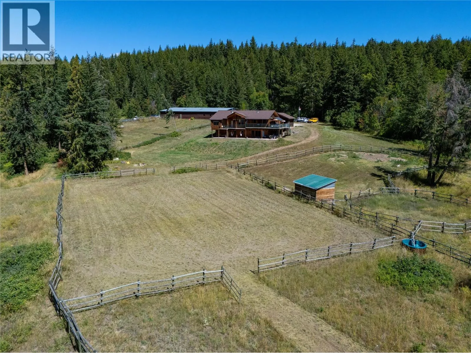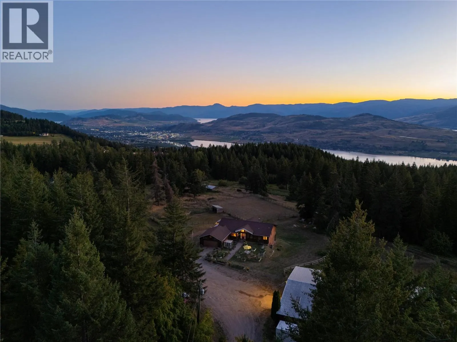 A once-in-a-lifetime estate with sweeping lake and mountain views, this 62-acre property captures the very best of Okanagan living. Perfectly suited for horses or ranching, it features a 96’ x 63’ barn with 10 stalls, tack room, office area, fully wired workshop, abundant storage, and a brand-new roof. The acreage has been thoughtfully cleared with wide trails weaving to the edge of the property, offering endless opportunities for horseback riding, off-roading, or peaceful walks through nature. Out of the ALR and with subdivision potential, the land itself is as versatile as it is beautiful. The custom-built home provides room for the entire family with 4 bedrooms and Office (or 5th Bedroom), 3 bathrooms, a double garage, and a host of upgrades including a new kitchen with appliances, new flooring, remodelled bathrooms, updated internal doors, trim, gutters (2025), hot tub pump, and well pump (2022). Additional comforts include built-in vacuum, heat pump with air, fireplace, and a top-floor remodel completed in 2021. Outdoors, the front English Garden creates a stunning welcome while the new deck pergola is perfect for soaking in the serene surroundings. Offering the ultimate balance of privacy, recreation, and potential, this remarkable estate is more than a home—it’s a lifestyle. (id:27476)