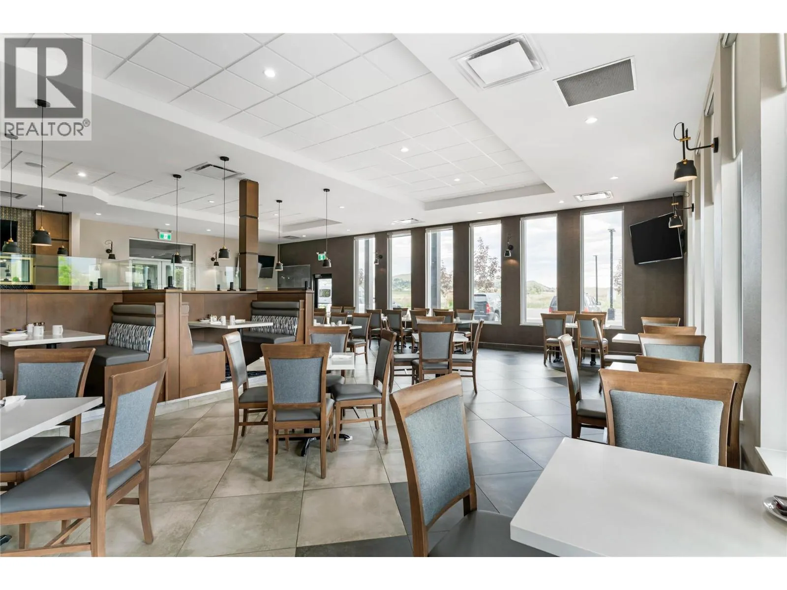 This exceptional restaurant space, located within a newly constructed luxury hotel in Vernon, offers 4876 sq. ft. of fully equipped space, ideal for a variety of dining and event services. The space includes a 96-seat dining area, two bars, and a 1,500 sq. ft. commercial kitchen featuring a walk-in cooler, freezer, and oven. Additionally, the property boasts a 300-seat banquet hall with a separate bar and three sets of washrooms, a meeting room, a private dining area with 20 seats, and a covered patio with seating for 40. The restaurant benefits from high visibility and significant public exposure, providing an excellent opportunity for operators to capitalize on both casual dining and event catering. With one year of operation and immediate occupancy available, the space is turn-key and ready for use. There is also potential for collaboration with the hotel for banquet and meeting room services, subject to discussions with the hotel sales manager. This is a unique leasing opportunity in a high-traffic, high-visibility location. All appointments must be done through the listing realtor. All measurements are approximate and buyers to verify all the information if deemed important. (id:27476)