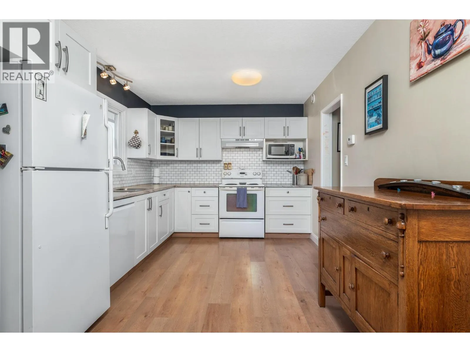 Welcome to this charming 4-bedroom family home in Vernonâs highly desirable East Hill neighborhood. Set on a generous 0.30-acre flat lot, this property offers space, comfort, and endless potential for todayâs lifestyle. The heart of the home features a bright kitchen with modern cabinetry, opening onto a covered deck that overlooks the extra-large fenced backyardâperfect for summer barbecues, kids, and pets. The homeâs thoughtful layout includes a welcoming living area, with three of the four bedrooms located on the main floor, plus a large storage that could easily be finished as an extra room. The lower level offers exciting possibilities: with its layout and access, itâs ideal for converting into a separate suiteâwhether for extended family or as a mortgage helper. Recent updates, including a newer roof & hot water tank add peace of mind. Located in family-friendly East Hill, this home is just steps from schools, parks, and local amenities, while downtown Vernon is only minutes away. With its mix of character, functionality, and future potential, this property is an excellent opportunity for families, investors, or anyone looking to enjoy one of the Okanaganâs most sought-after neighborhoods. (id:27476)